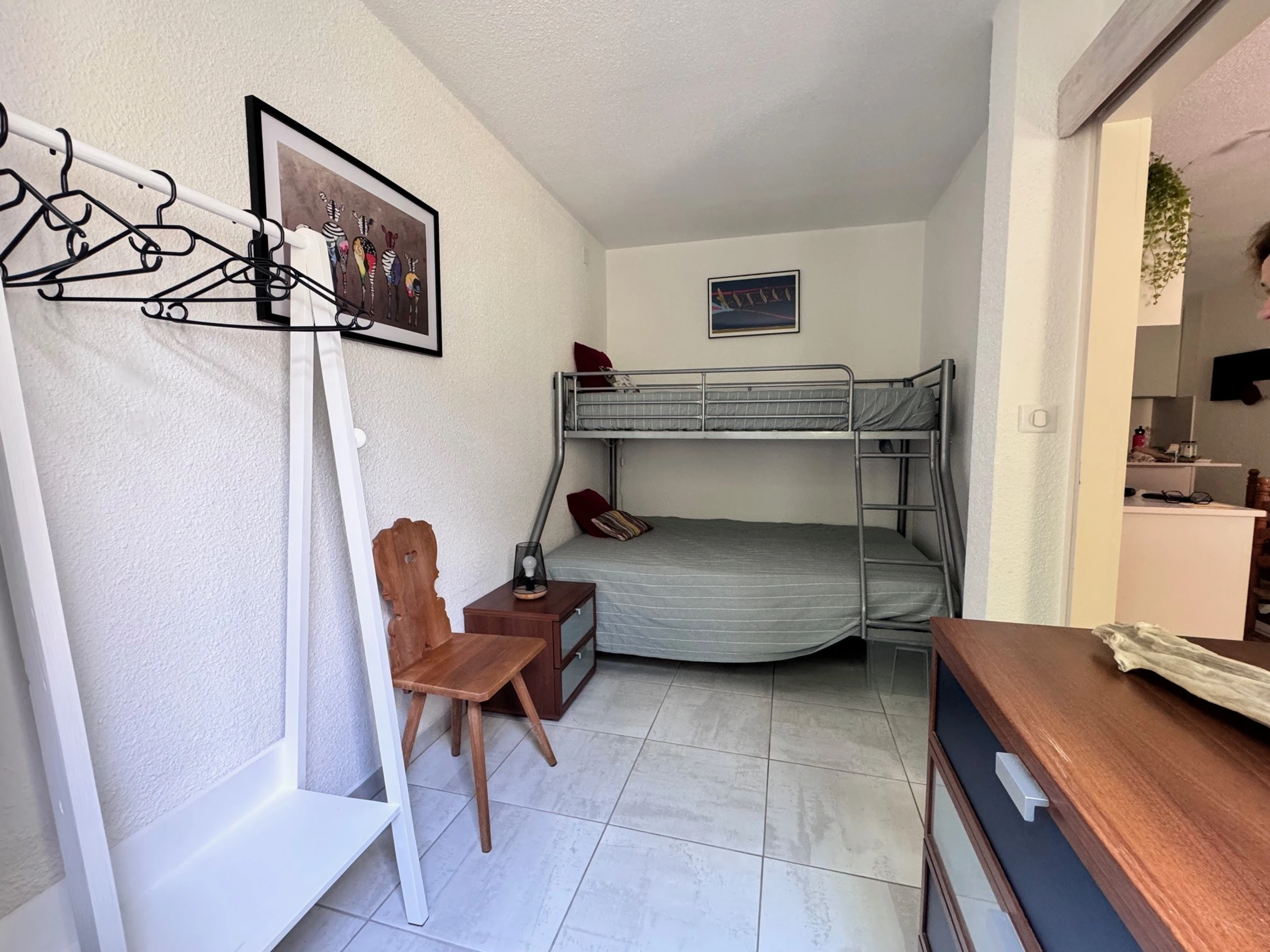 A Seignosse, appartement situé en rez-de-chaussée idéalement placé à 300 mètres des plages et des commerces.. Il se compose d'un séjour lumineux et spacieux avec un canapé ouvrant sur une terrasse aménagée orientée Est d'une cuisine ouverte équipée. La partie nuit dispose d'une chambre avec un grand lit mezzanine en 140 et 90, d'une chambre avec un grand lit en 140 et d'une salle d'eau.