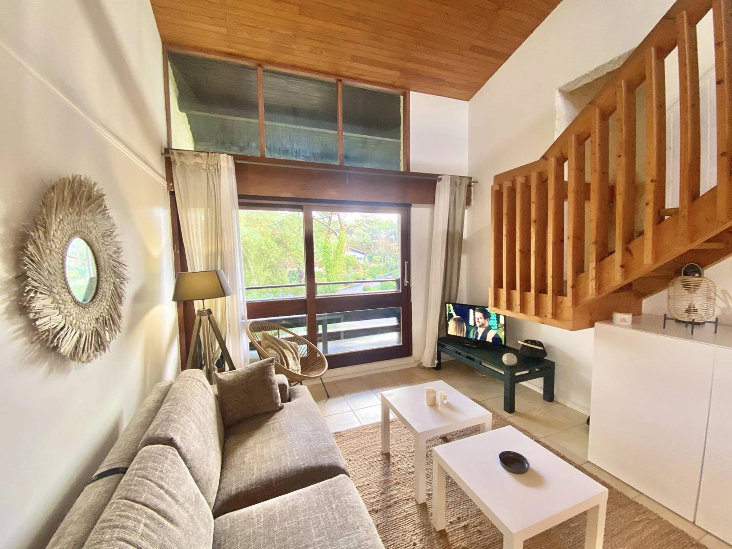 Cet appartement plaît beaucoup par ses volumes , de plus la proximité de la plage des commerces et le grand espace vert avec les pins et le tennis sont appréciables pour les vacances. Le linge de maison n'est pas inclus dans les locations. Possibilité de location à toutes les périodes de l 'année nous consulter. Logement non accessible aux personnes à mobilité réduite.