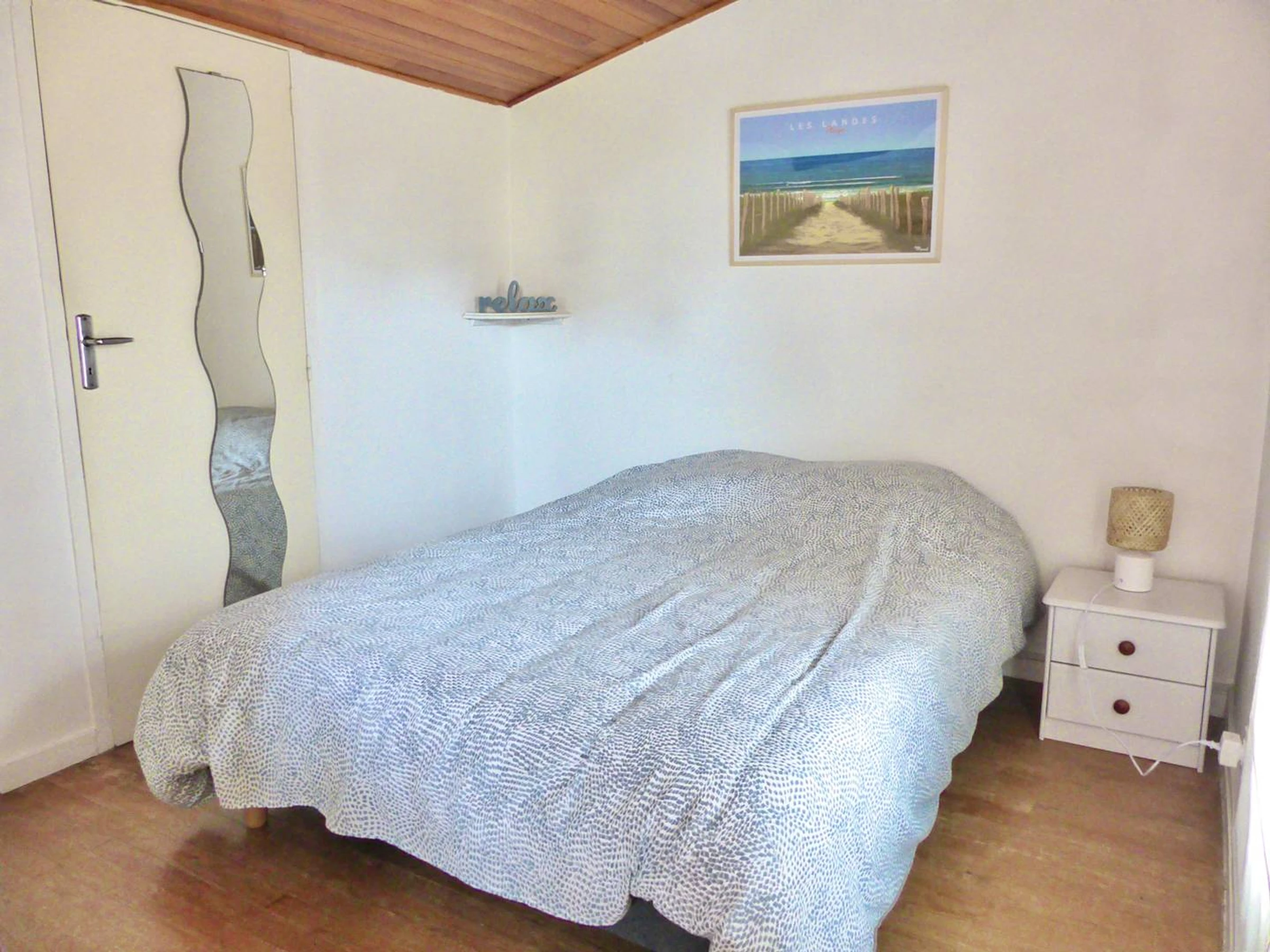 Chambre de 9.6m2 env ouvrant sur la terrasse: 1 lit en 140.