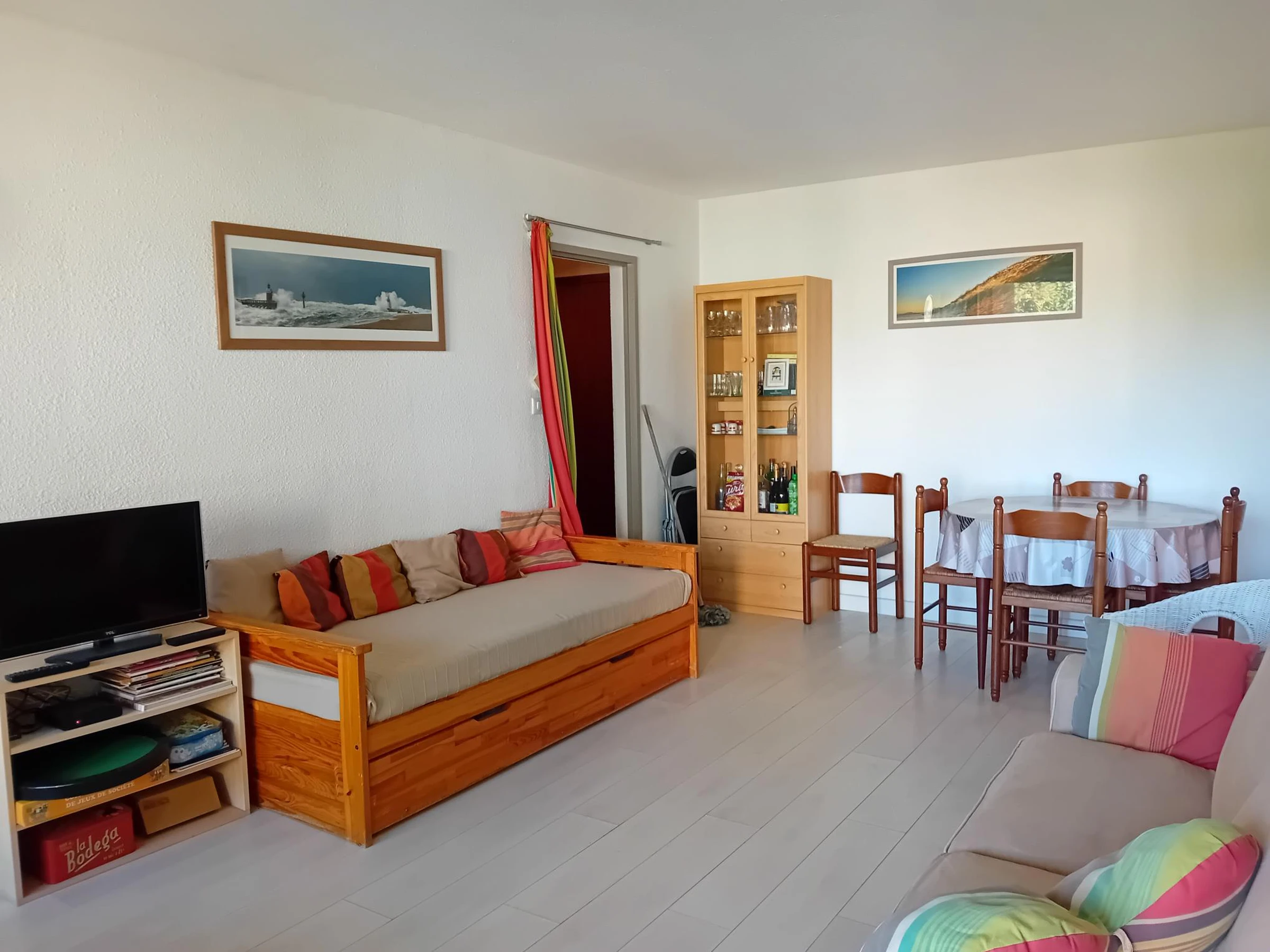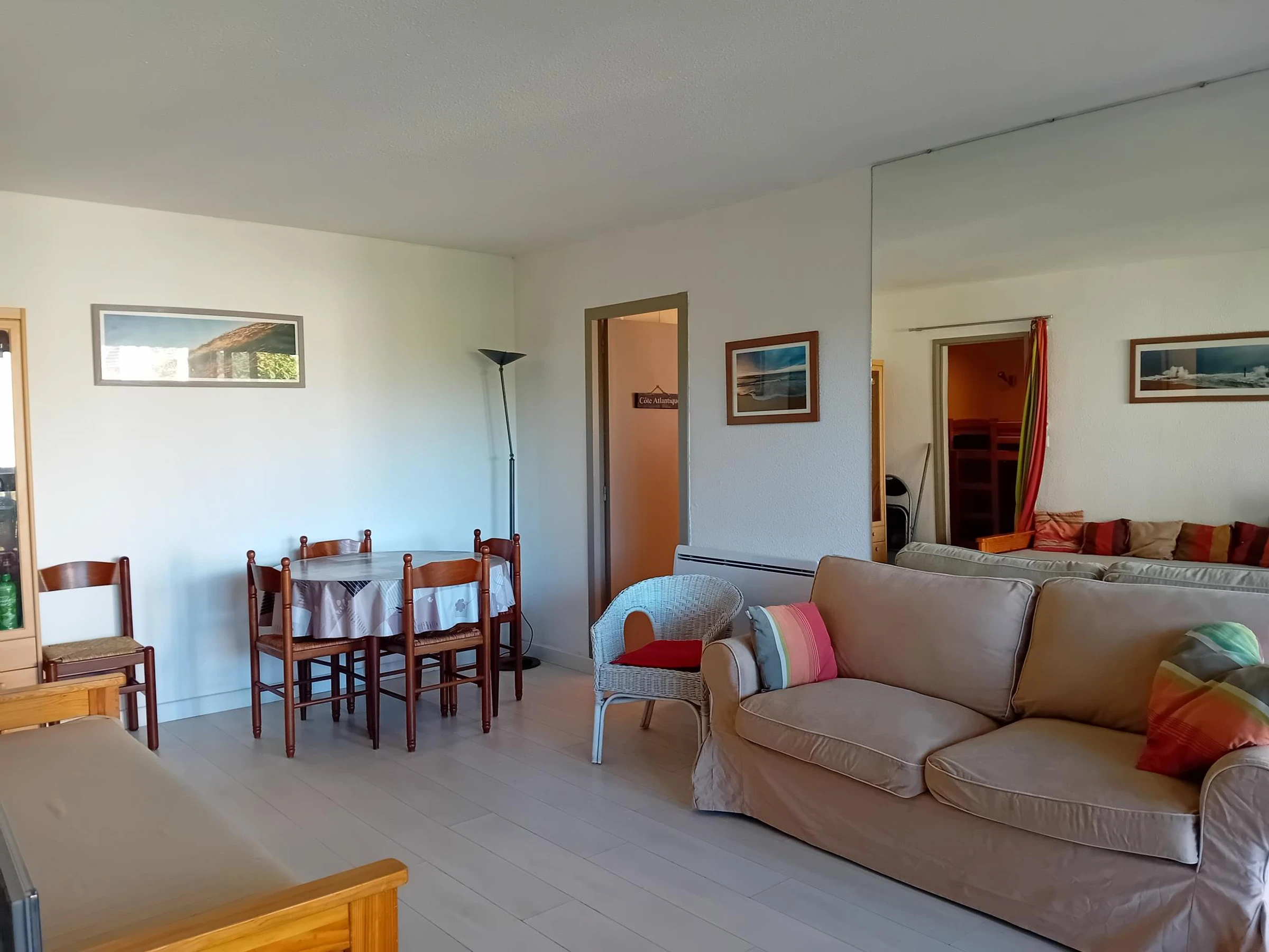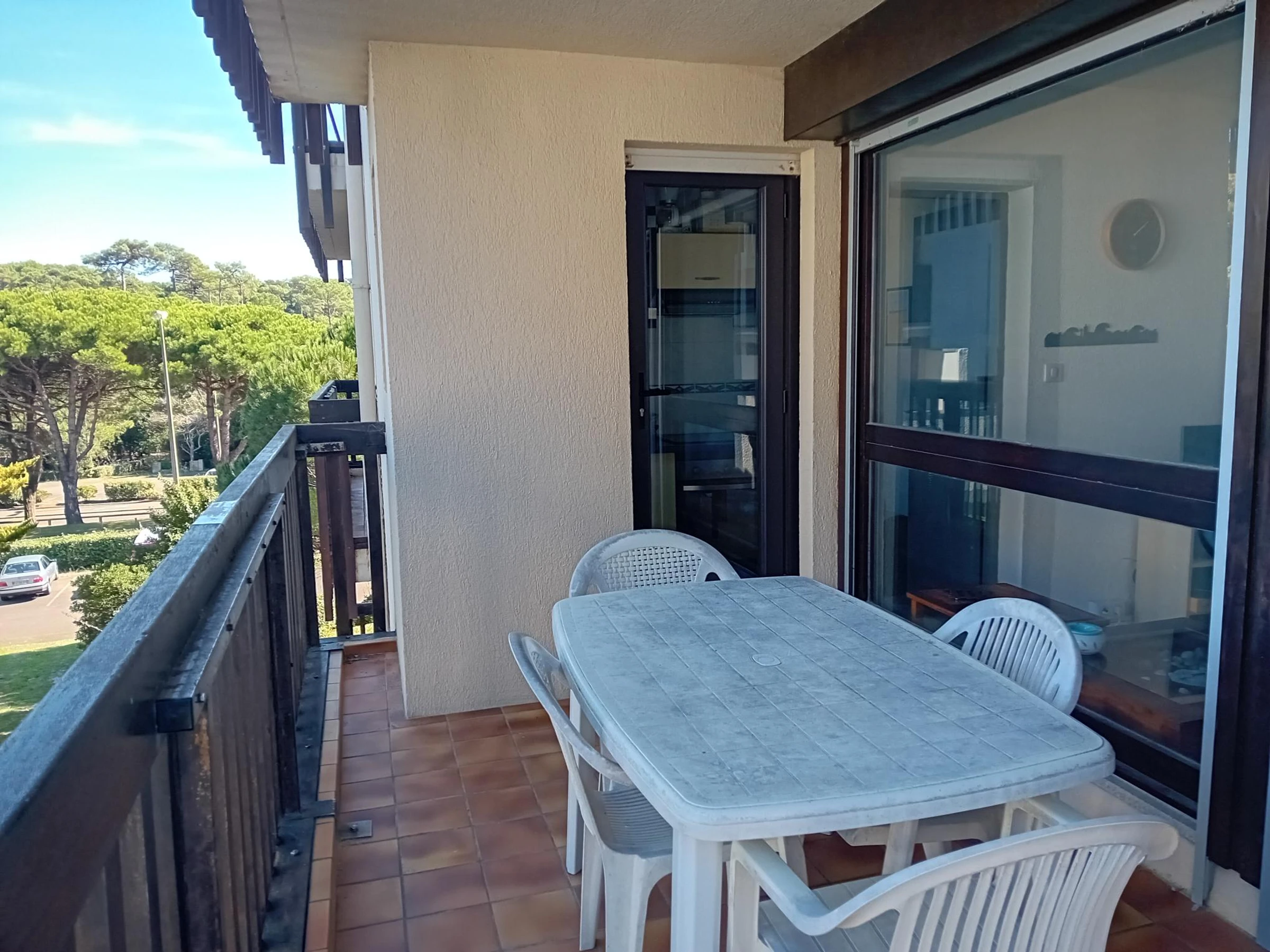 A Seignosse Penon, T2 fonctionnel situé au premier étage d'une résidence sans ascenseur à 500m de l'océan. Vous profiterez d'un lit superposé a l'entrée et d'un séjour avec un lit gigogne 90 ou 140. Balcon avec une vue dégagée . Cuisine fermée fonctionnelle et aménagée. La partie nuit dispose d'une chambre séparée ouvrantes sur le séjour avec un lit double 140x190, d'une salle de bain avec WC . Dans un environnement calme tout en étant proche des plages, des commerces et du marché, cet appartement est idéal pour des vacances avec un mode de vie tout à pied. Parking gratuit à proximité de la résidence.