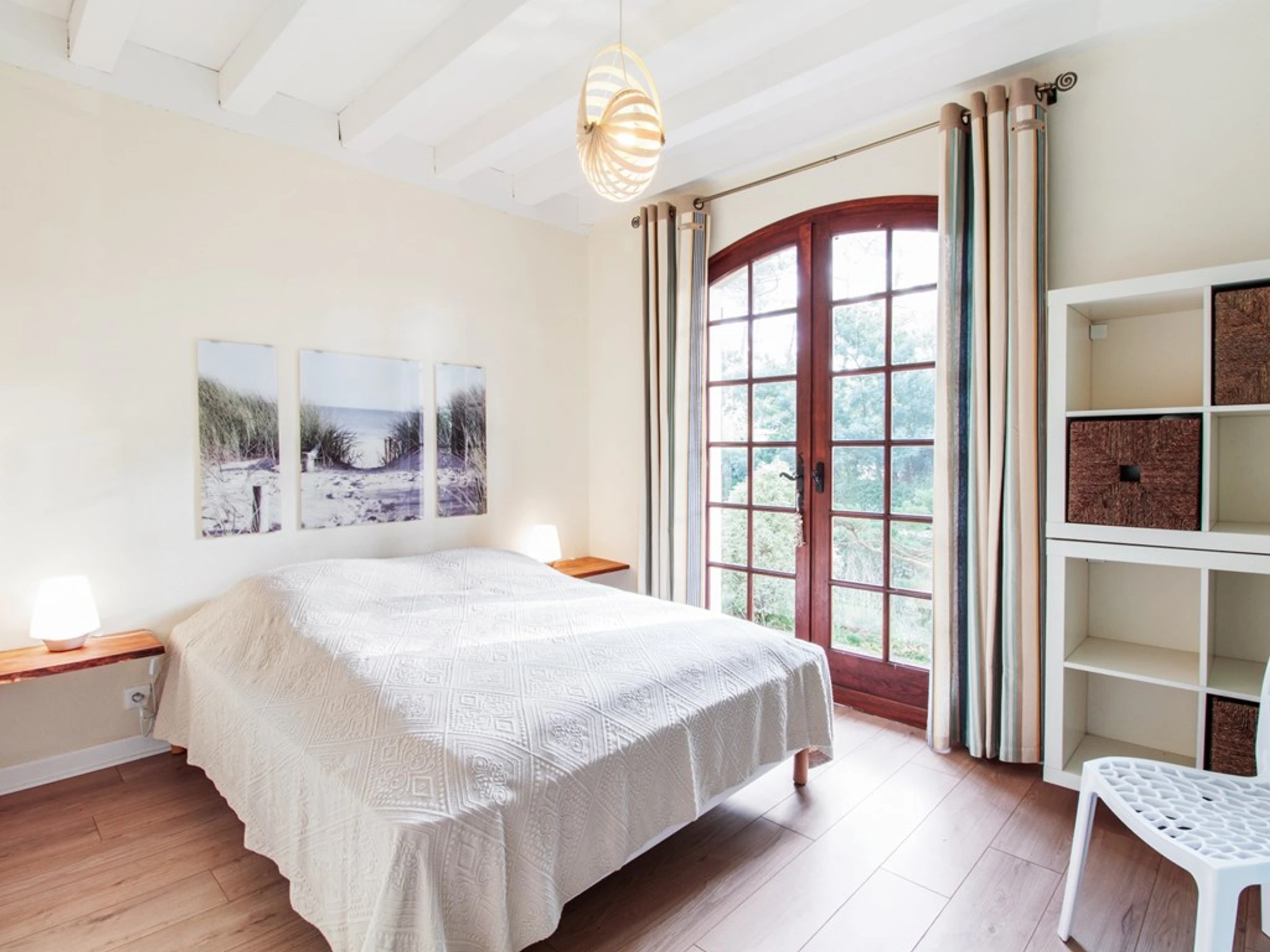 La villa dispose de deux salles de douche avec vasque, douche et WC. La chambre 1 est aménagée avec un lit en 160 et une porte-fenêtre offrant un accès direct à l'extérieur. La chambre 2 est idéale pour les enfants avec ses deux lits bateaux et deux lits tiroirs. La chambre 3 propose un lit en 160 et une porte-fenêtre donnant sur le jardin. Un abri garage complète les commodités de la maison.