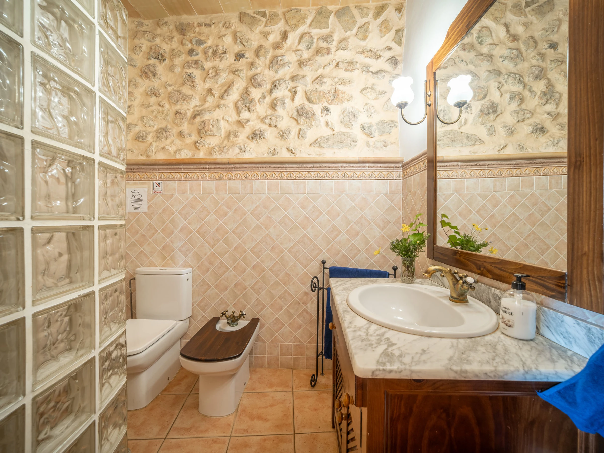 "Son Estaras", 3 pièces cottage 100 m2, sous-sol de plain-pied. Logement idéal pour 4 adultes. Spacieux et clair, aménagement fonctionnel et confortable: grand séjour/salle à manger avec cheminée, Télévision numérique, poêle à bois et ventilateur. Sortie sur le jardinet, sur la piscine. 1 grande chambre double avec 2 lits (90 cm, longueur 190 cm), chauffage électrique et ventilateur. 1 grande chambre double avec 1 grand-lit (150 cm, longueur 200 cm), chauffage électrique et ventilateur. Petite cuisine ouverte (3 plaques de cuisson, four, lave-vaisselle, grille-pain, bouilloire électrique, micro-ondes, congélateur, cafetière électrique) avec bar, table pour les repas. Douche/bidet/WC. Grand jardinet, pelouse, tonnelle. Meubles de terrasse, barbecue, chaises longues, loggia. Très belle vue sur les montagnes et les alentours. A disposition: lave-linge, sèche-linge, fer à repasser, chaise haute pour enfant, lit bébé jusqu'à 2 ans, sèche-cheveux. Internet (Connexion WIFI, gratuit). Place de parking près de la maison. La piscine mentionnée dans le descriptif est privative. [hidden] // Reg. Nr.: ESFCTU000007022000280216000000000000000000000[hidden]5
