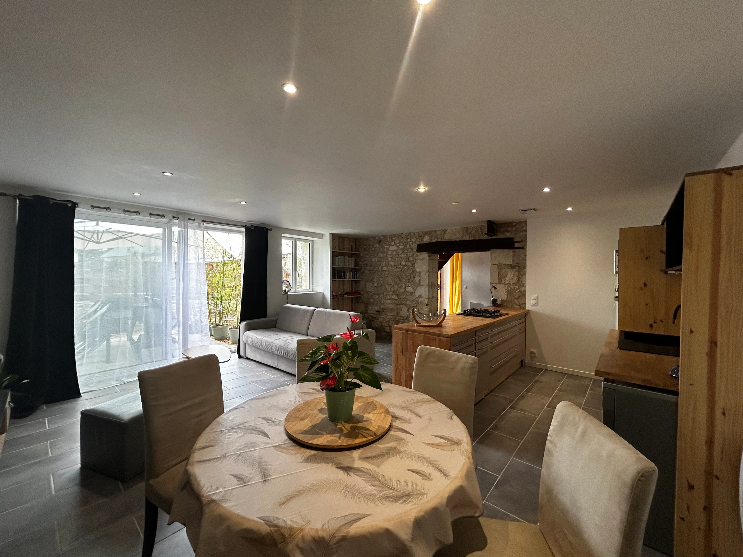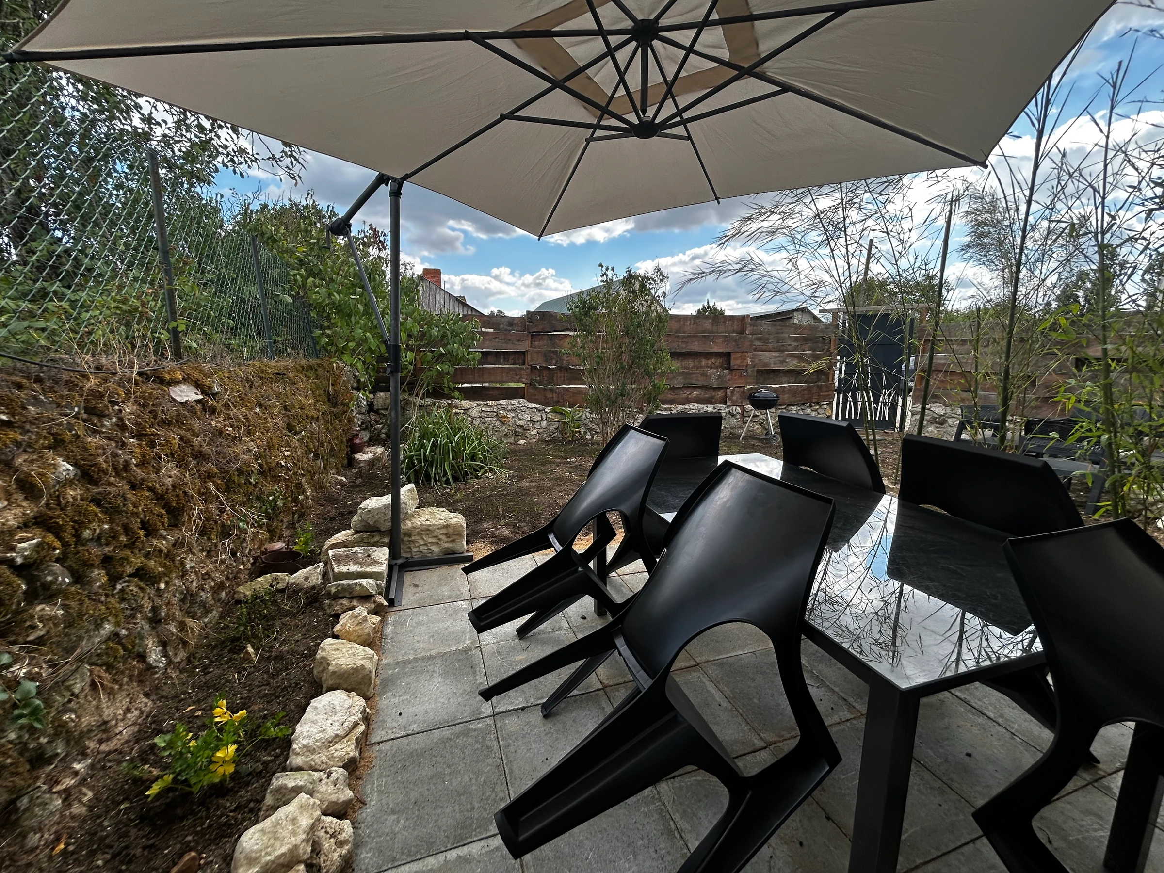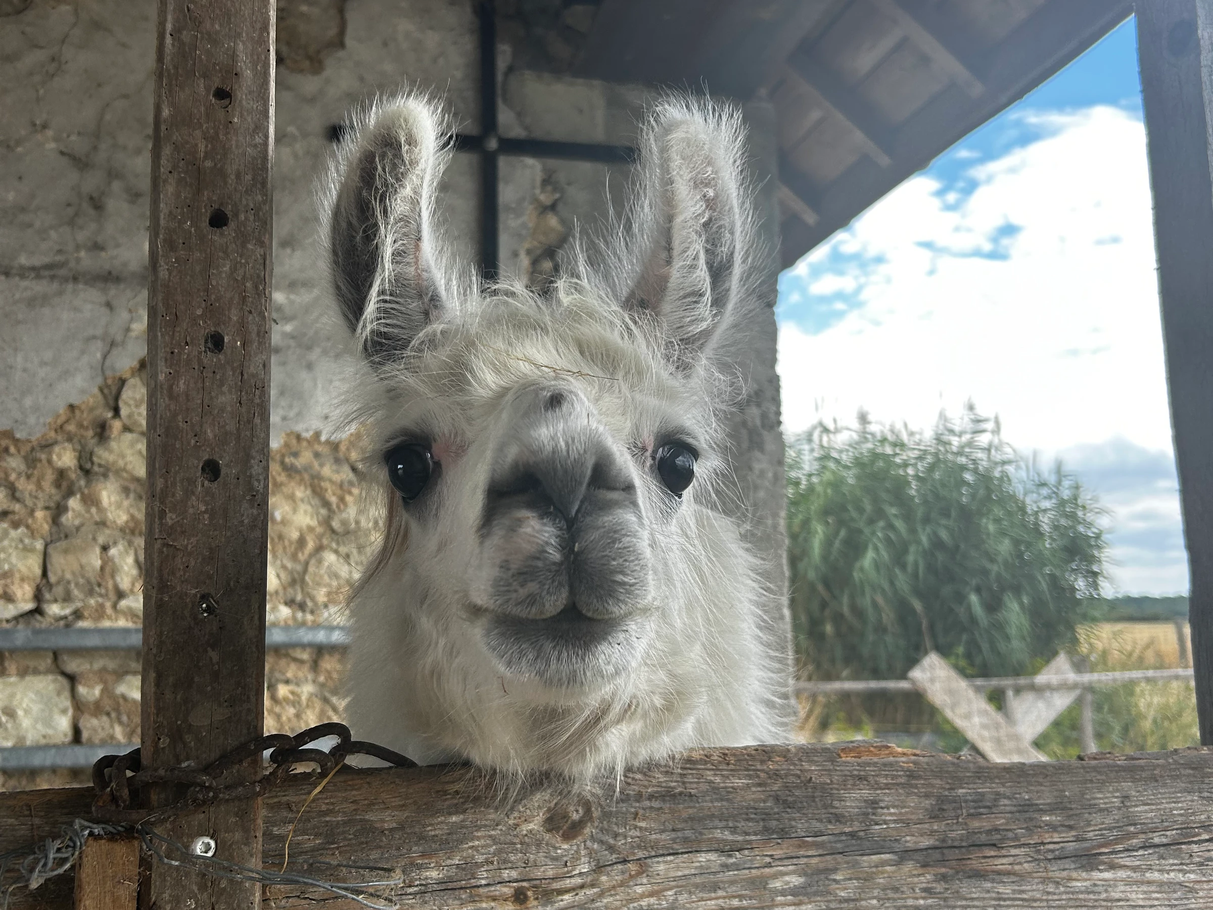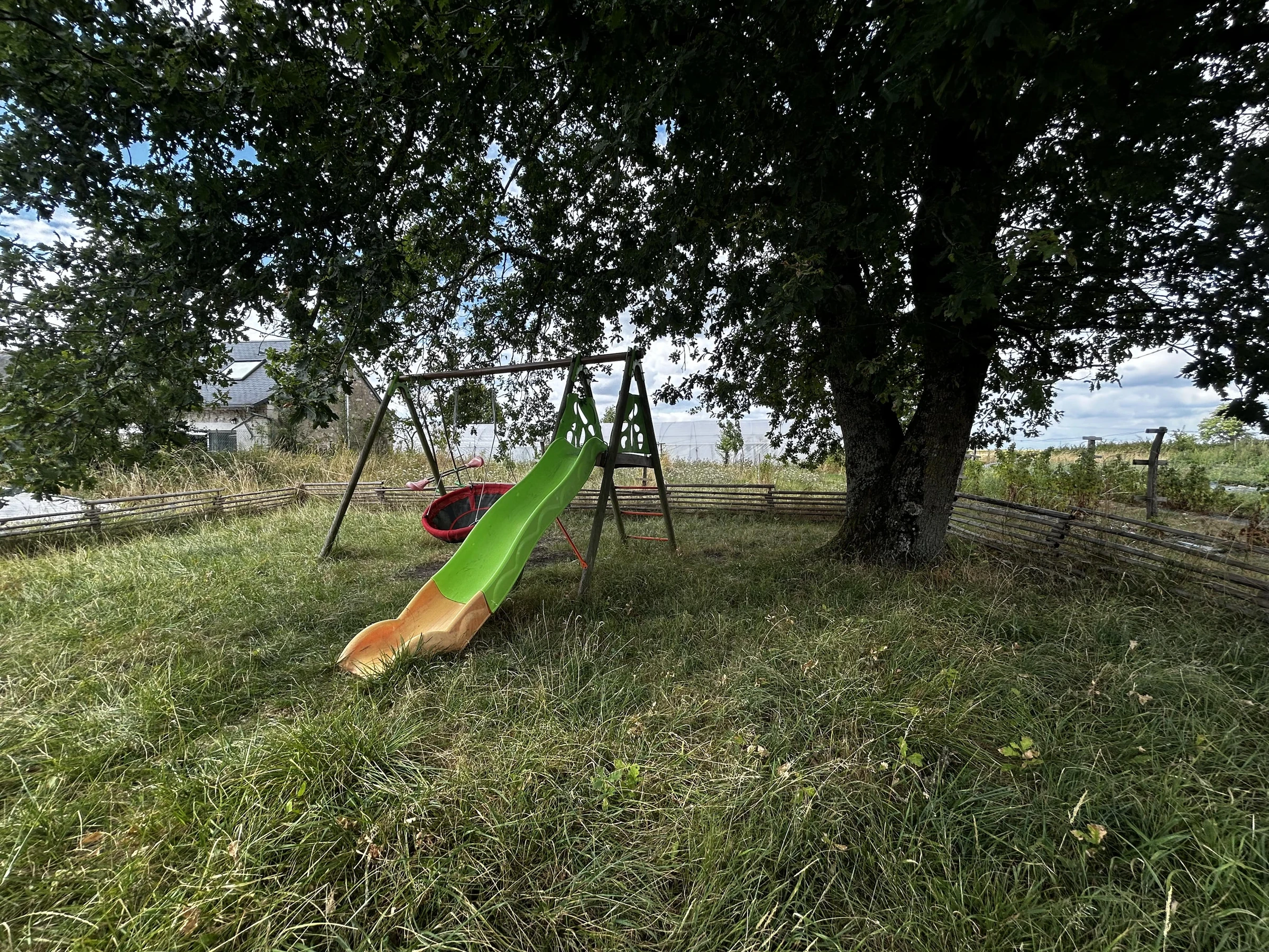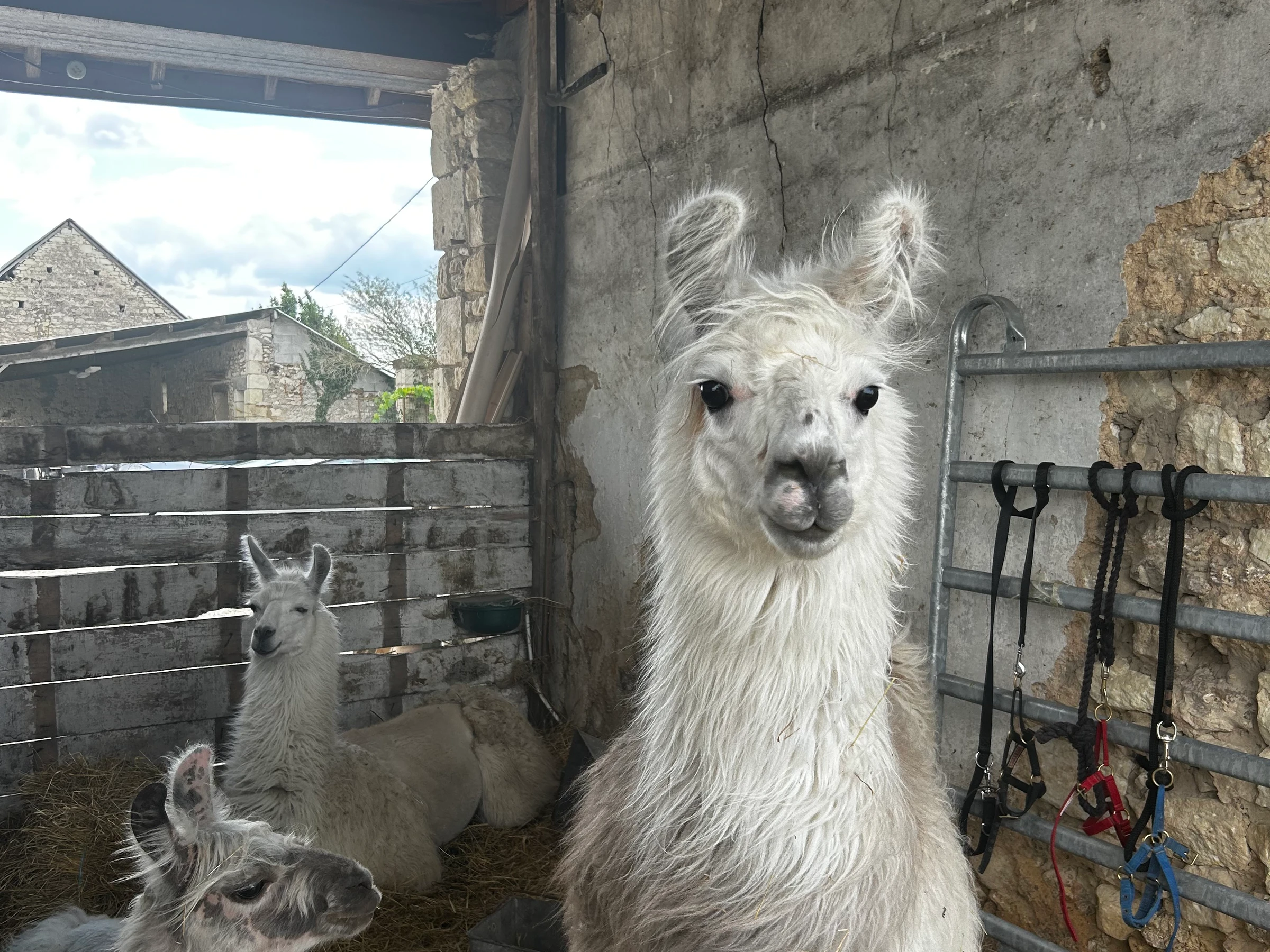 - Au rez-de-chaussée: Entrée, grande pièce à vivre conviviale avec cuisine aménagée et espace repas donnant sur une cour fermée avec salon de jardin, table, chaises et barbecue, WC indépendant et une chambre avec lit de 140x160, coin douche/ lavabo, dressing, le tout avec une vue directe sur l'enclos des lamas