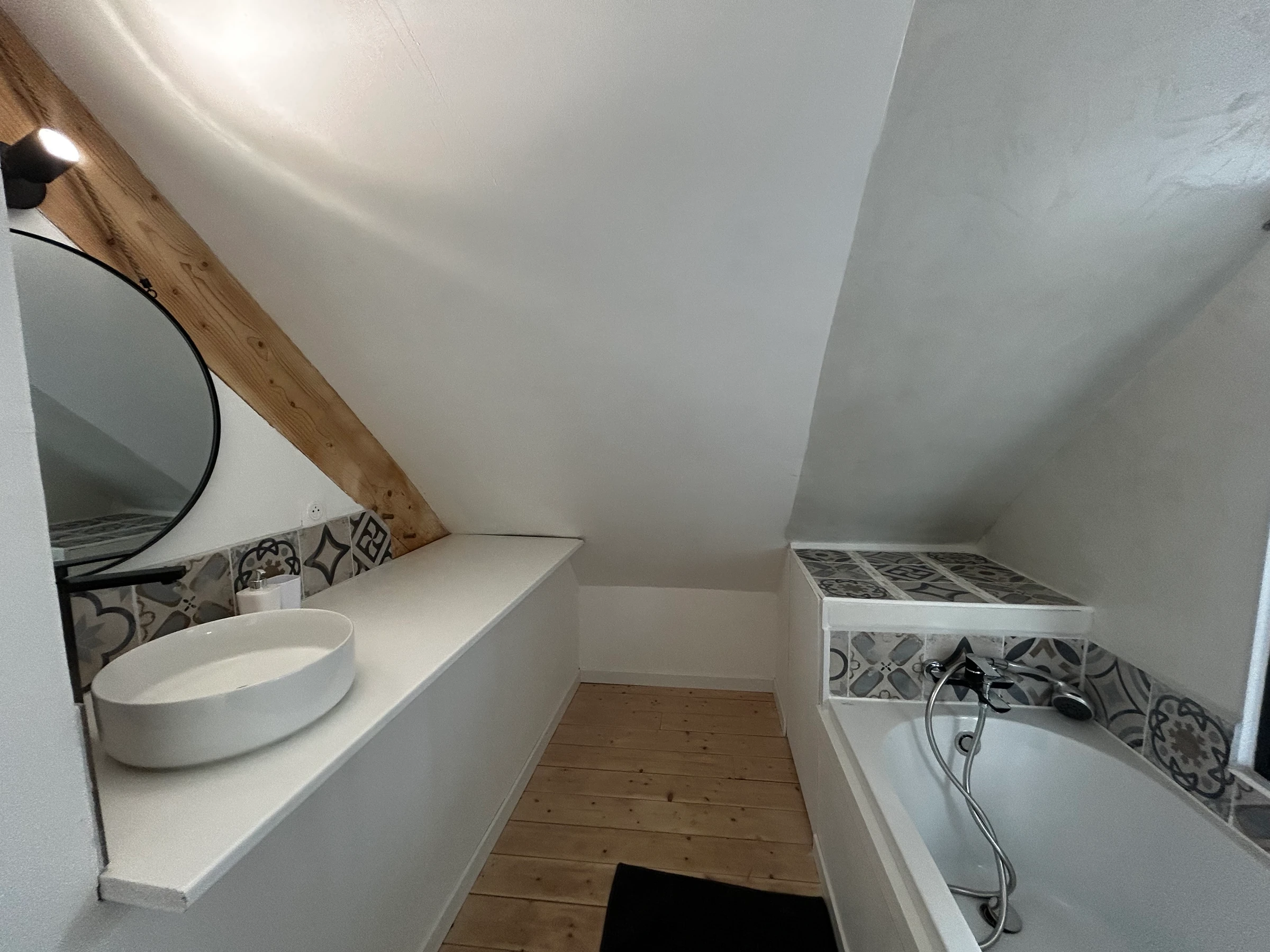 - A l'étage: Palier avec lave-linge et WC, 1 chambre avec 2 lits de 90x190, 1 chambre avec 1 lit de 160x200 attenant à une salle de bain