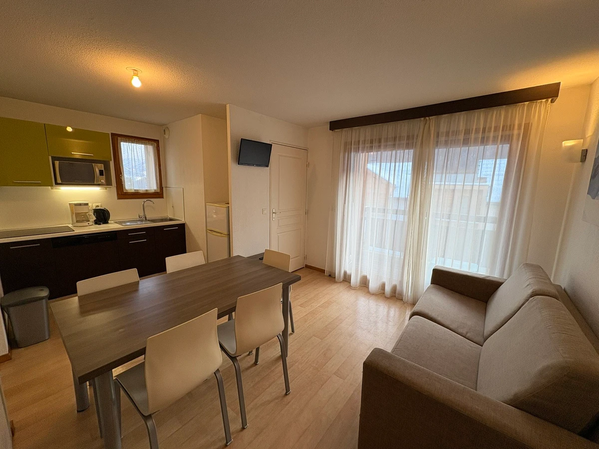 Cet appartement 3 pièces de 36 m², situé au 2 eme étage de la résidence avec ascenseur, vous offre tout le confort nécessaire pour un séjour inoubliable à la montagne. Vous profiterez d’un séjour lumineux donnant sur un balcon exposé plein sud, idéal pour savourer la vue imprenable sur les sommets. Vous y trouverez un canapé convertible et un coin cuisine bien équipé.