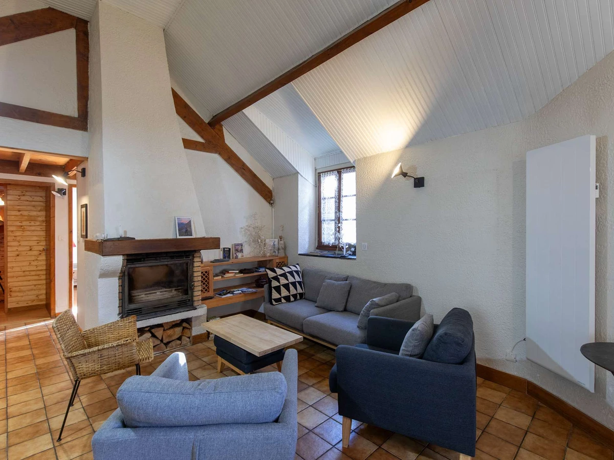Au 1er l'étage : Séjour avec canapé 2 places, fauteuils,cheminé (pas de TV).