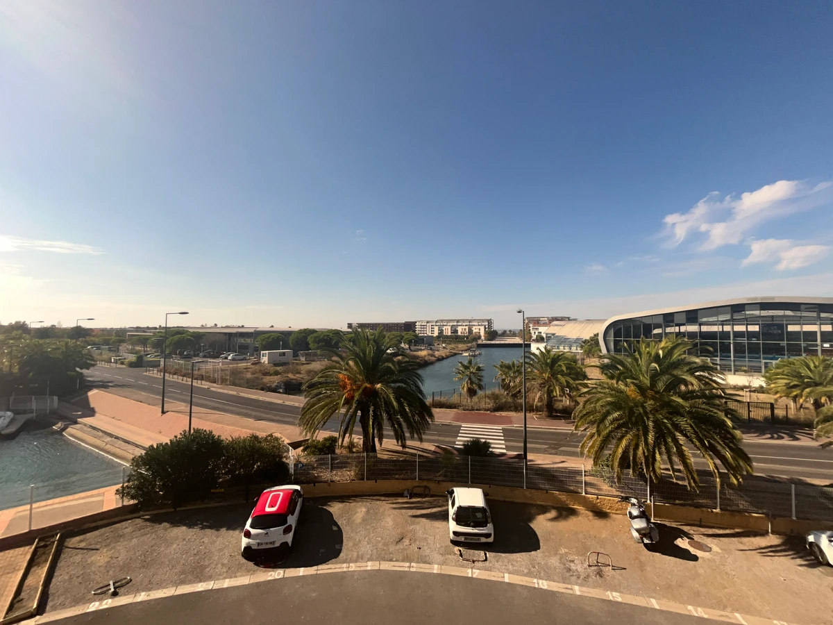 Location Vacances à Sète : Studio de 15 m2 + loggia intégrée de 5m² au 2ème étage (avec ascenseur) d'une résidence à 500m de la mer et de la plage et à proximité des commerces. Le séjour se compose d'un canapé-lit, d'une télévision et rangement, table et chaises. Dans la salle d'eau, vous trouverez une douche, un lavabo et les WC. La kitchenette est équipée de 2 plaques vitrocéramiques, frigo-congélateur, micro-onde, lave-linge et lave-vaisselle.