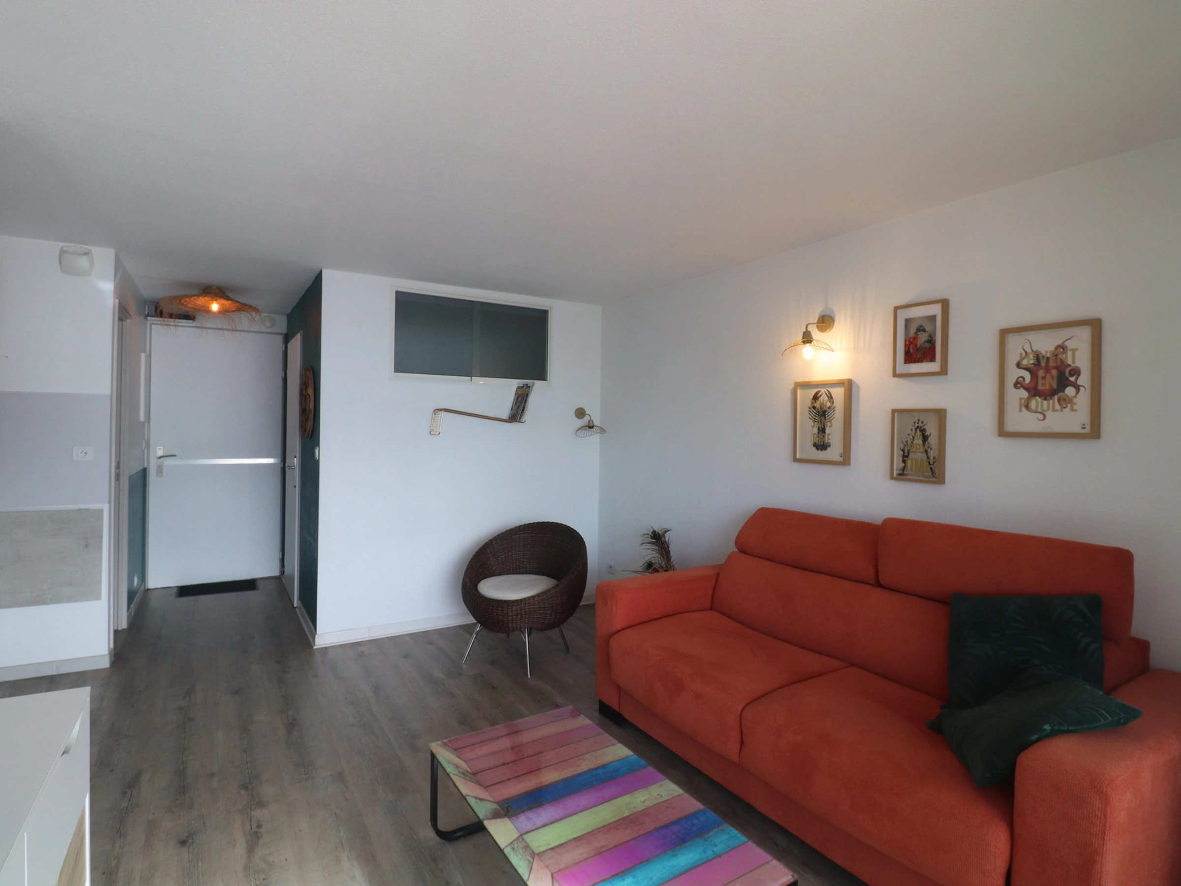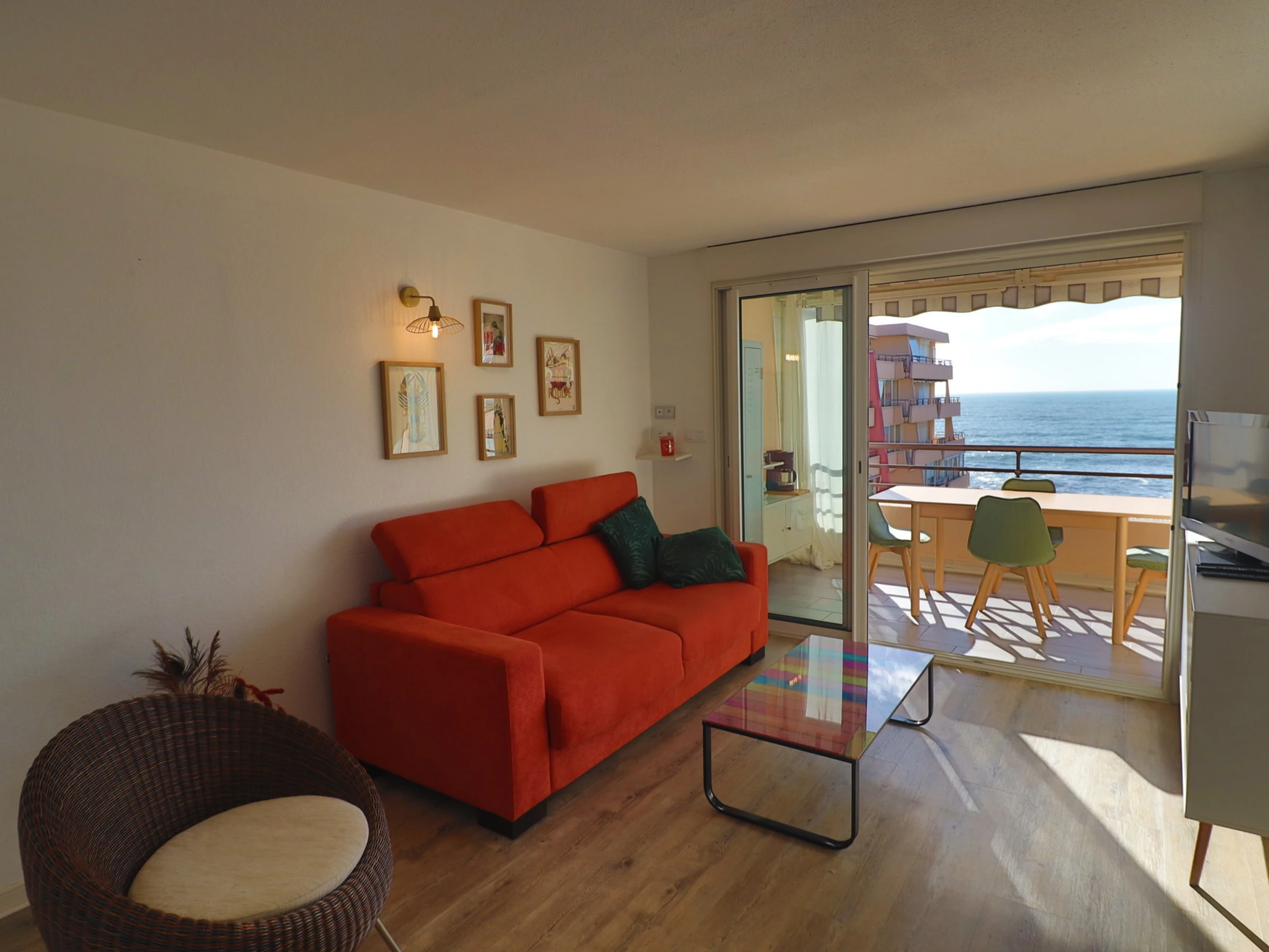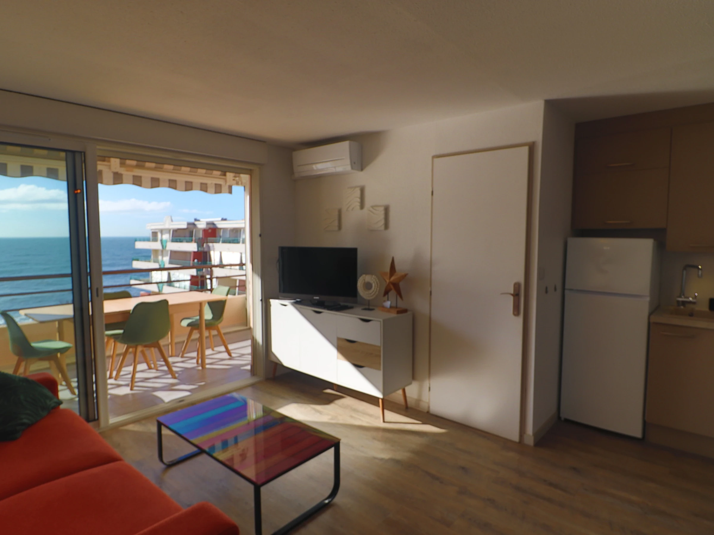 Au 4ème étage avec ascenseur, trés joli 2 pièces + cabine moderne et rénové avec goût avec vue frontale sur la mer, prévu pour 4 personnes