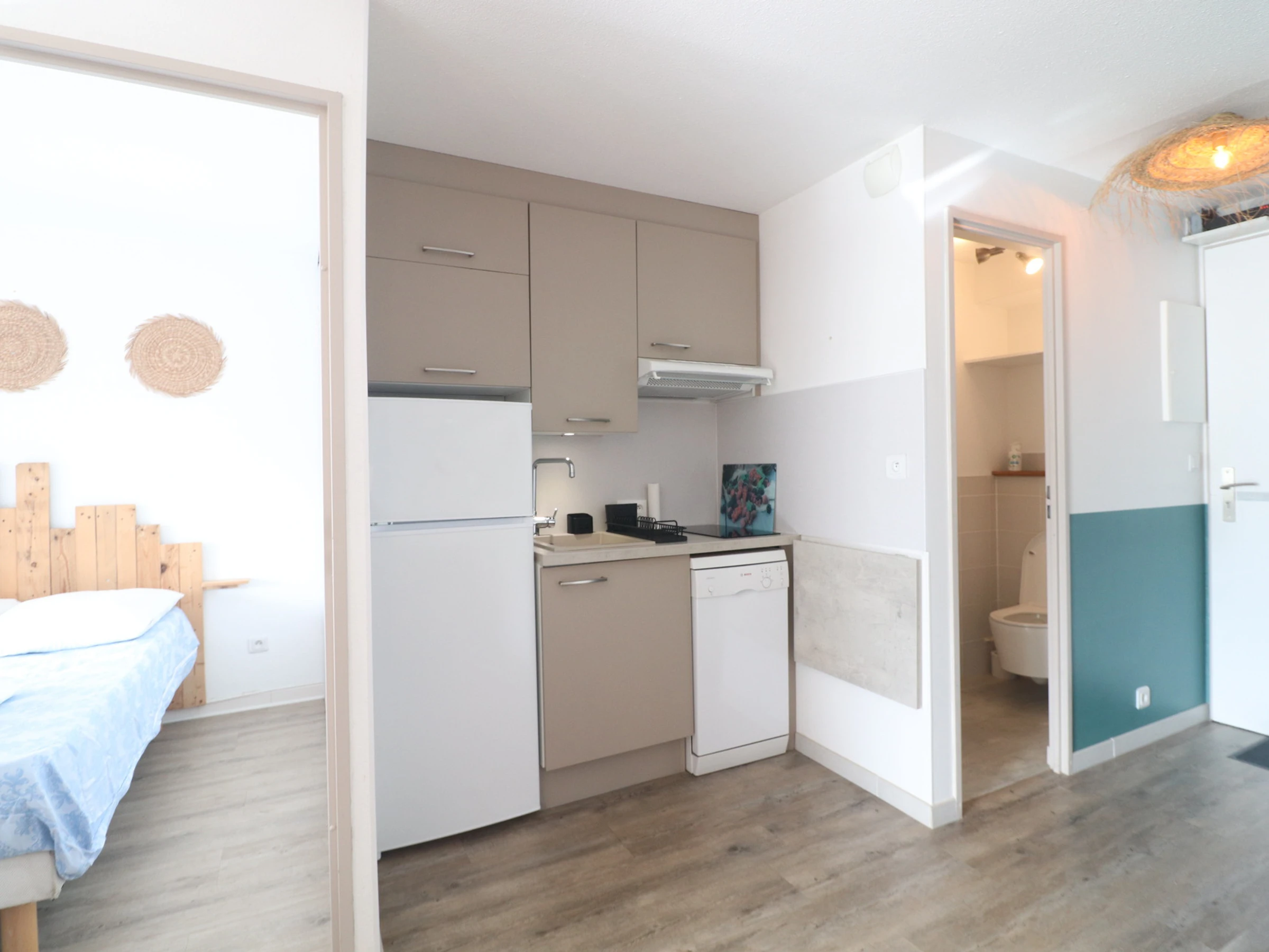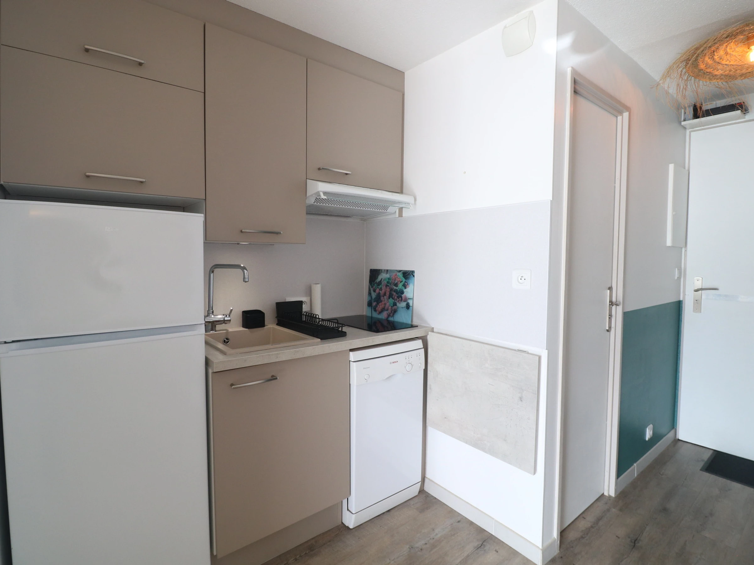 - coin cuisine équipé (combiné réfrigérateur/congélateur, lave-vaisselle, plaque de cuisson)