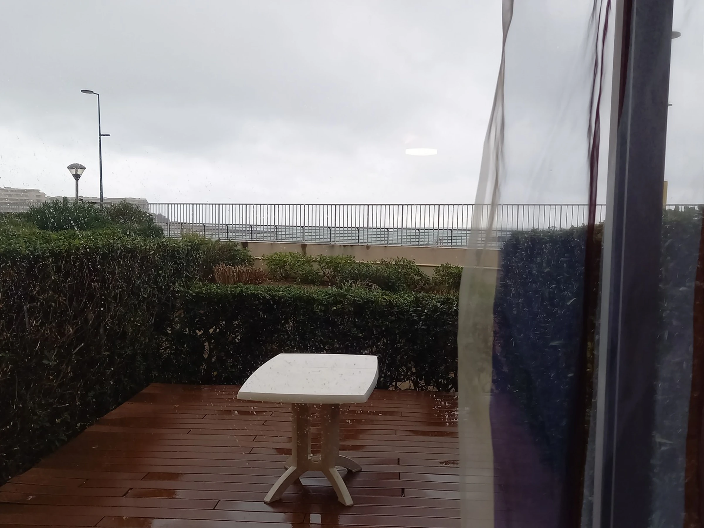 Une terrasse aménagée de 20m2, salon de jardin, vue mer et son jardinet avec accès direct à la plage du Lazaret par la résidence.