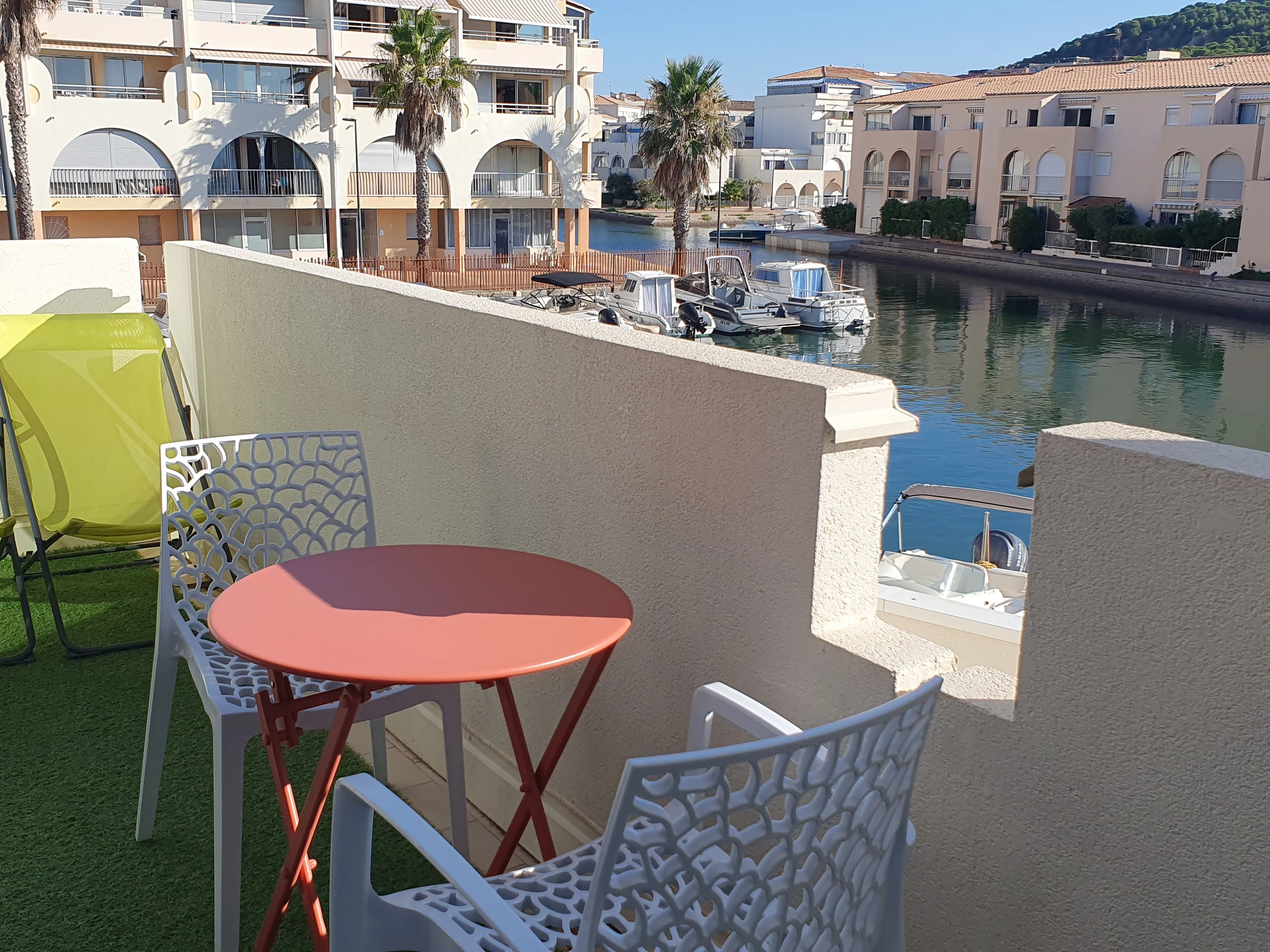 Location Vacances à Sète : Situé au 1er étage d’une résidence calme (sans ascenseur), ce joli studio-cabine de 20 m² climatisé, doté d’une grande véranda et d'un balcon offrant une belle vue sur le canal, est idéal pour des vacances reposantes à deux pas de la mer. Les plages et commerces se trouvent à seulement 100 mètres ! Composition du logement : Séjour lumineux comprenant un coin cuisine équipé : 2 plaques vitrocéramique, four, micro-ondes, réfrigérateur, congélateur, lave-linge, un canapé-lit 140 cm (2 personnes), TV écran plat, Coin cabine avec 2 lits superposés, parfait pour enfants ou amis, Salle d’eau avec douche, lavabo et WC. Un grande véranda offrant un agréable espace supplémentaire avec vue sur le canal. Une place de parking privée attribuée : n°112. Ce studio bien équipé, climatisé et très proche de la plage saura vous offrir un séjour pratique et confortable dans un cadre reposant au bord de l’eau. Animaux non admis. Arrivée tardive possible : 50€ (détails nous consulter.)