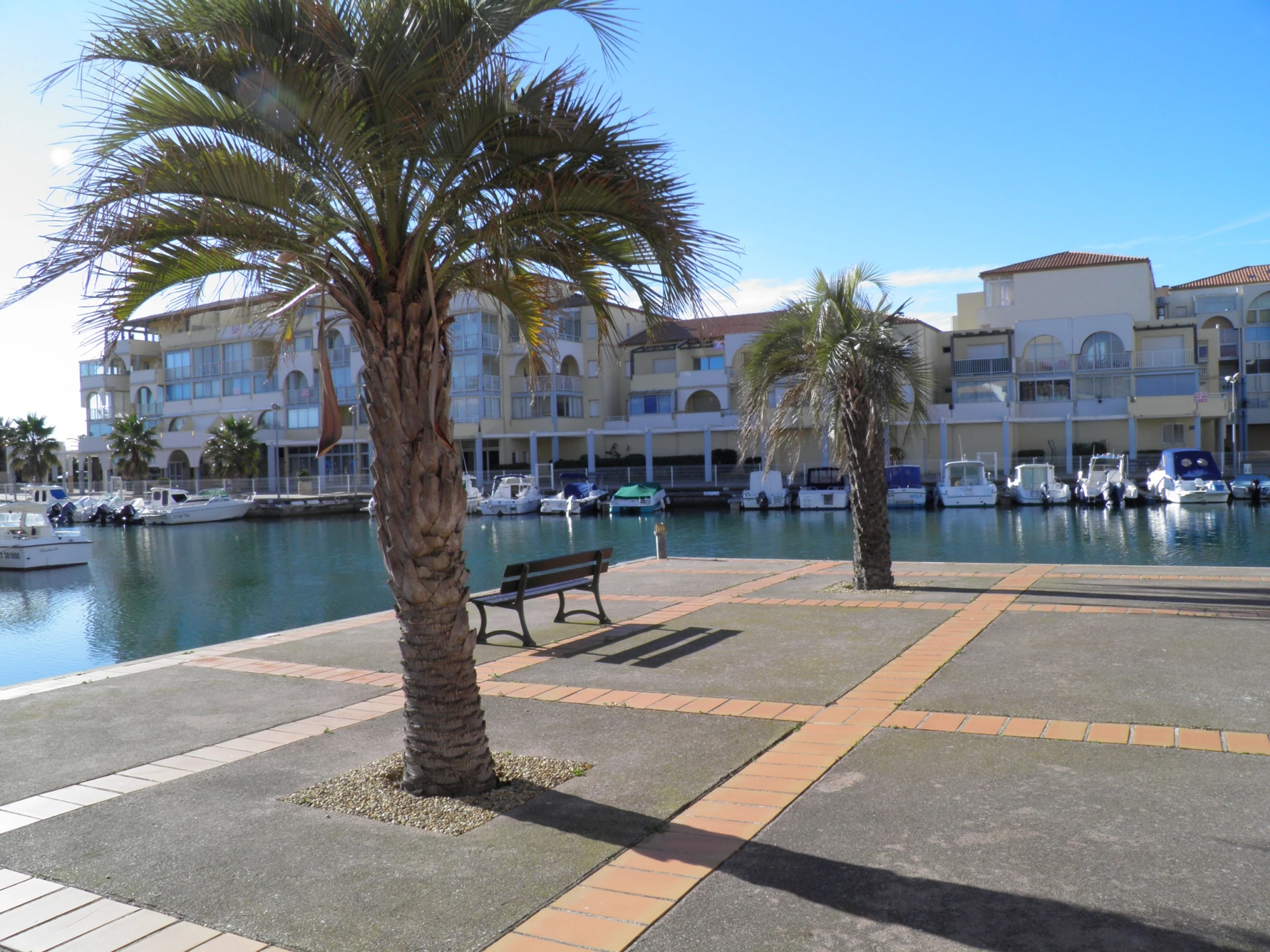 Location vacances à Sète : Joli 2 pièces de 31m² avec terrasse de 13m² avec store banne. Il est situé au 1er étage (sans ascenseur) et a une belle vue sur la marina. Les plages sont à 200m et les commerces sont à 100 m. Le séjour est composé d'un coin cuisine (avec plaques vitro, réfrigérateur, cafetière, four et micro-onde) et d'un coin salon avec canapé lit 2 places, table, 4 chaises, TV murale, 1 fauteuil, une chambre (avec lit 2 personnes et étagères), une salle d'eau avec lave linge, douche, WC séparés. Terrasse de 13 m² avec table, chaises de jardin. Place de parking n°87. WIFI gratuit inclus. Animaux non admis.
