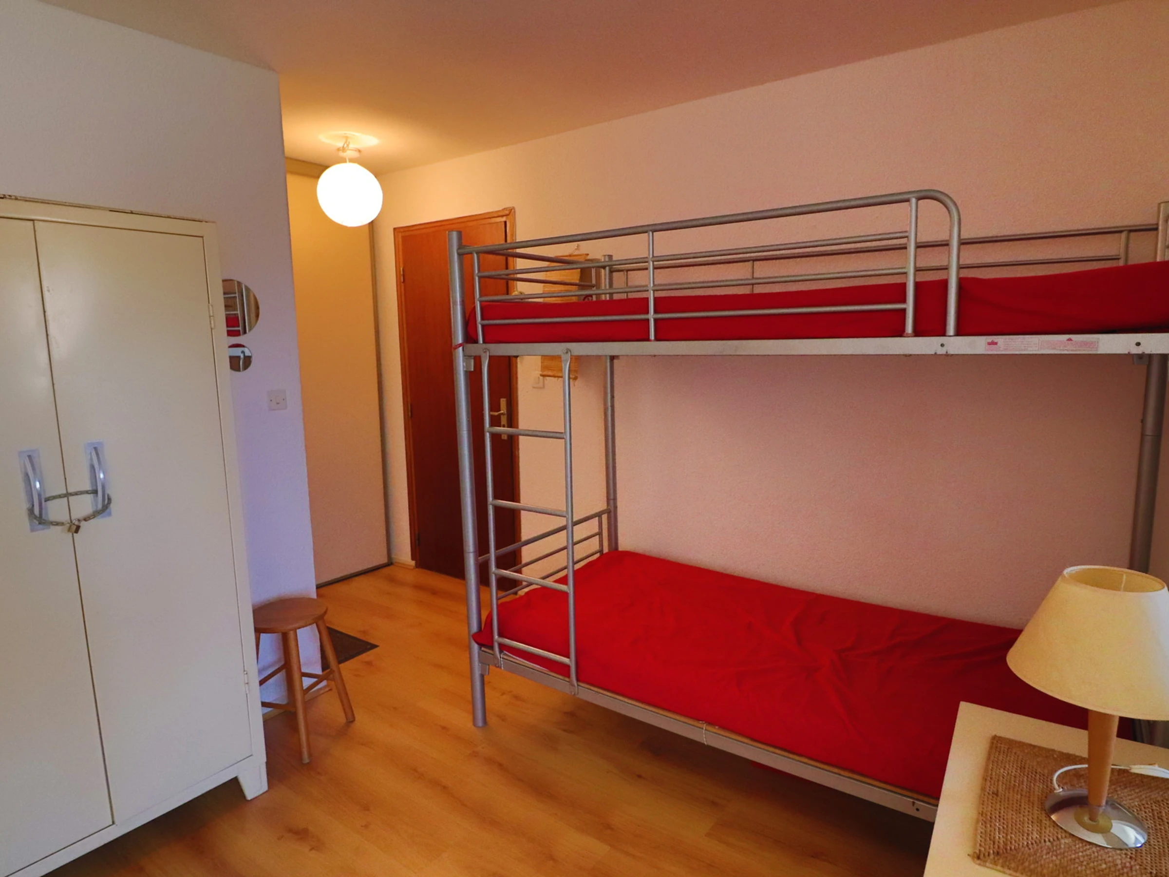 Un séjour avec 2 lits superposés et télévision.