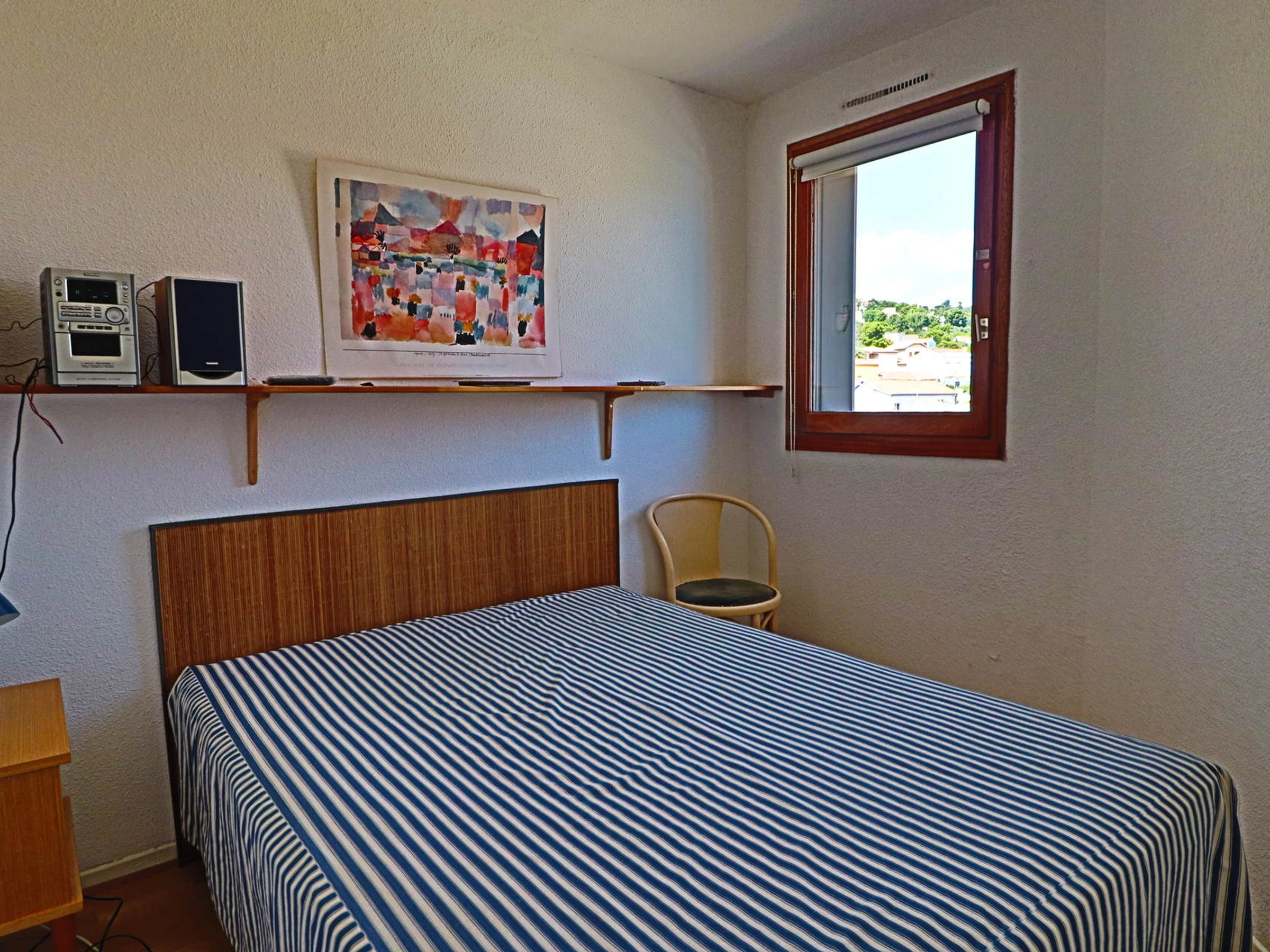Une chambre avec un lit double. Une salle d'eau avec wc.