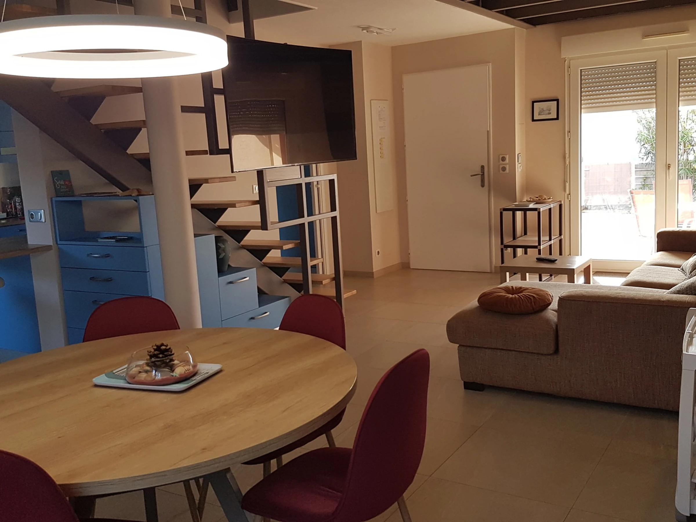 Ce logement est particulièrement bien conçu et équipé, lave-linge, sèche-linge, lave-vaisselle, climatisation, nombreux rangements et toilettes à chaque niveau. Au rez de chaussée vous trouverez un grand séjour salon avec télévision suspendue à écran panoramique, un coin salle à manger s'ouvrant sur la cuisine le tout agrémentée de d'une terrasse aménagée et d'une cour interieure permettant de profiter d'une exposition au soleil à l’extérieur tout au long de la journée !