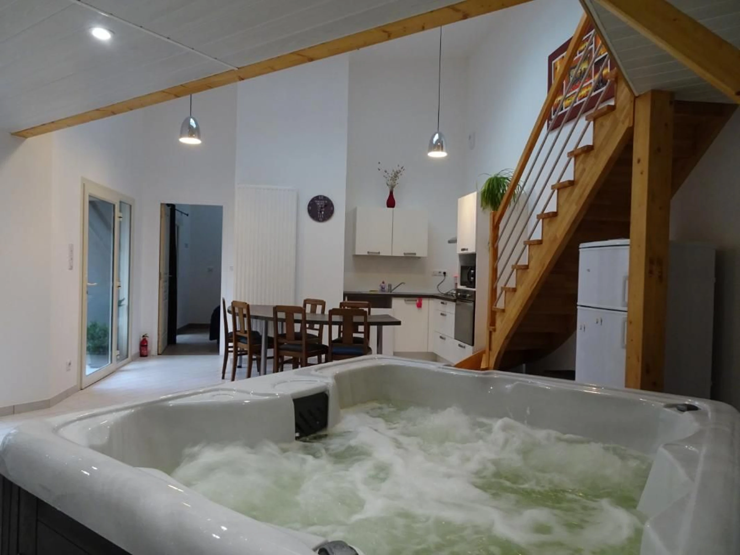 Dans une petite ville de caractère au coeur des Alpes Mancelles et à 5 mn de la base de loisirs de Sillé le Guillaume, nous vous accueillons dans notre gîte familial, idéal pour se ressourcer avec son grand jacuzzi et son équipement de détente (vélo d'appartement et vélo elliptique...). Grande cour avec parking et très belle vue sur la campagne. Terrasse privative, coin pelouse avec transats et mini parc animalier (biquettes, cochons d'Inde, lapins, poules, volière...). Jeux d'enfants (trampoline, ping-pong....). Alliant raffinement et confort, ce gîte de restauration contemporaine vous propose une cuisine toute équipée et salle à manger. 2 duplex de 2 chambres pour le couchage. Un duplex avec 1 lit 140 en RDC et sa mezzanine avec 2 lits 90, salle d'eau privative (WC + douche). Un autre duplex dont 1 chambre accessible aux handicapés avec lit 140 et sa mezzanine avec 2 lits 90, sa salle d'eau privative (WC + douche). Dans la partie commune: 1 WC supplémentaire. Espace salon en mezzanine avec canapé convertible 2 pers (couchages supplémentaires). Location de draps 8 euros par lit et 20 euros pour la location de linge de toilette. Chauffage compris. Forfait ménage: 30 euros. Wifi gratuit. Restaurants sur place. Anglais, Allemand parlé.