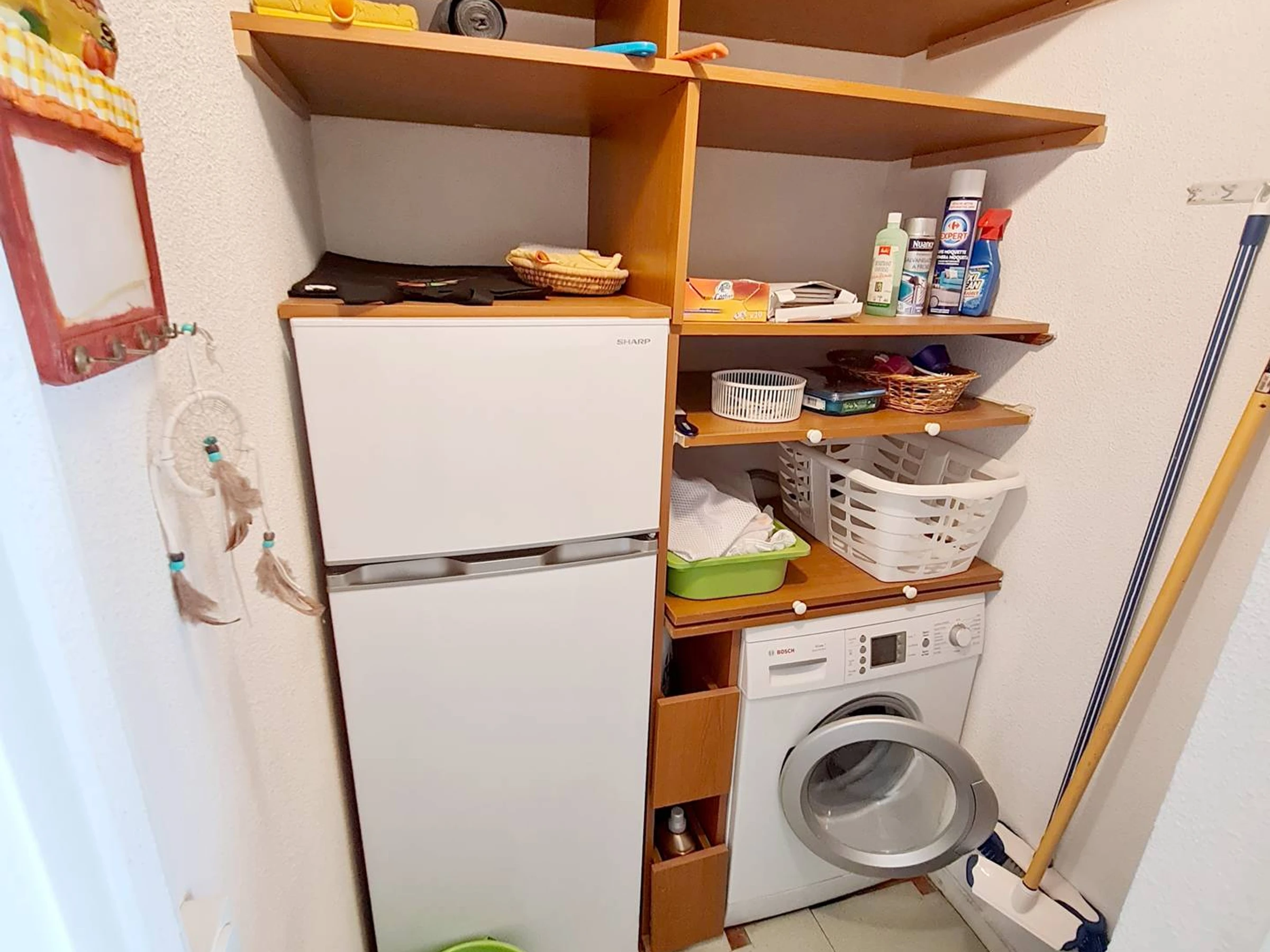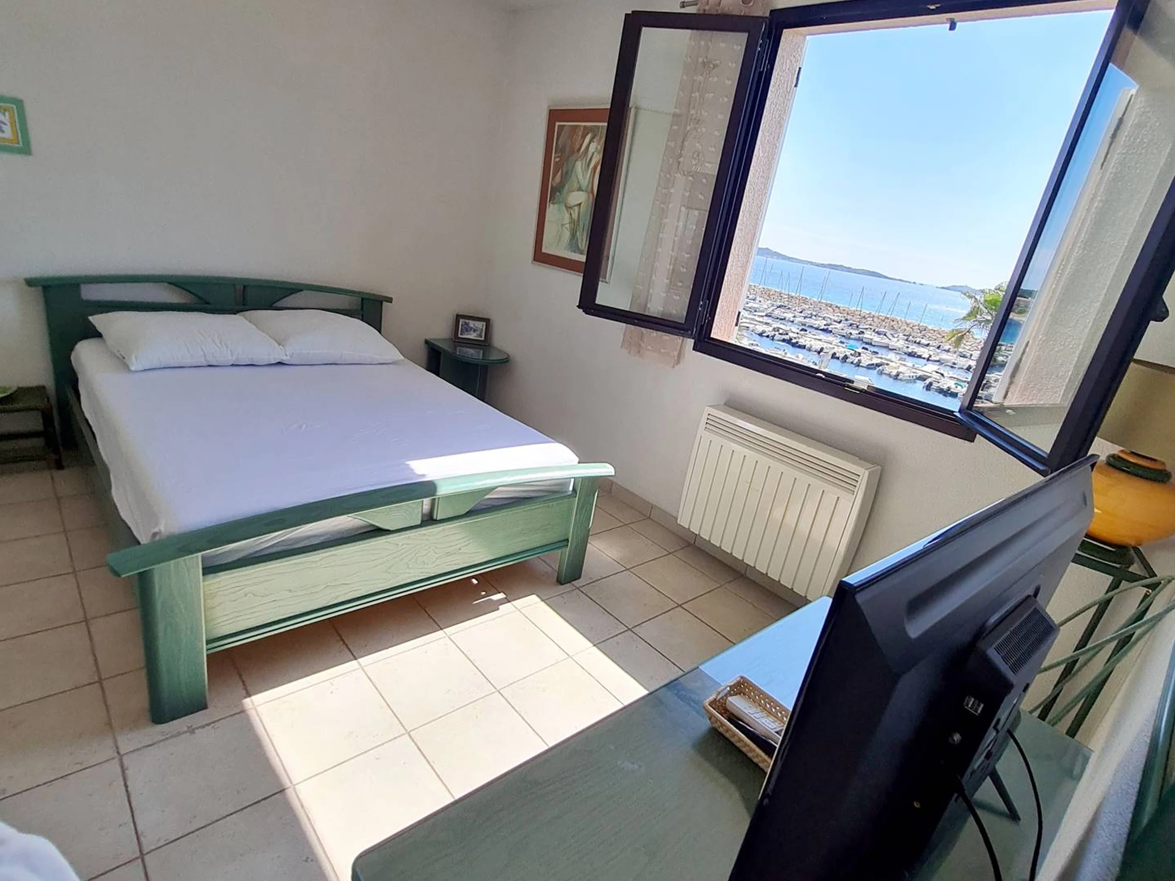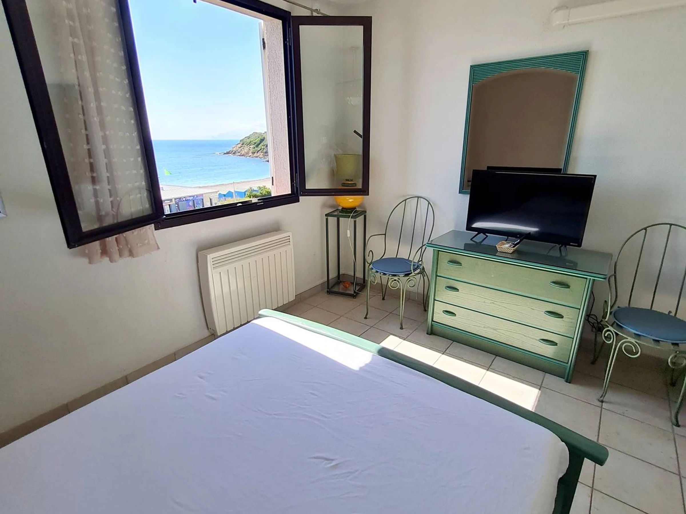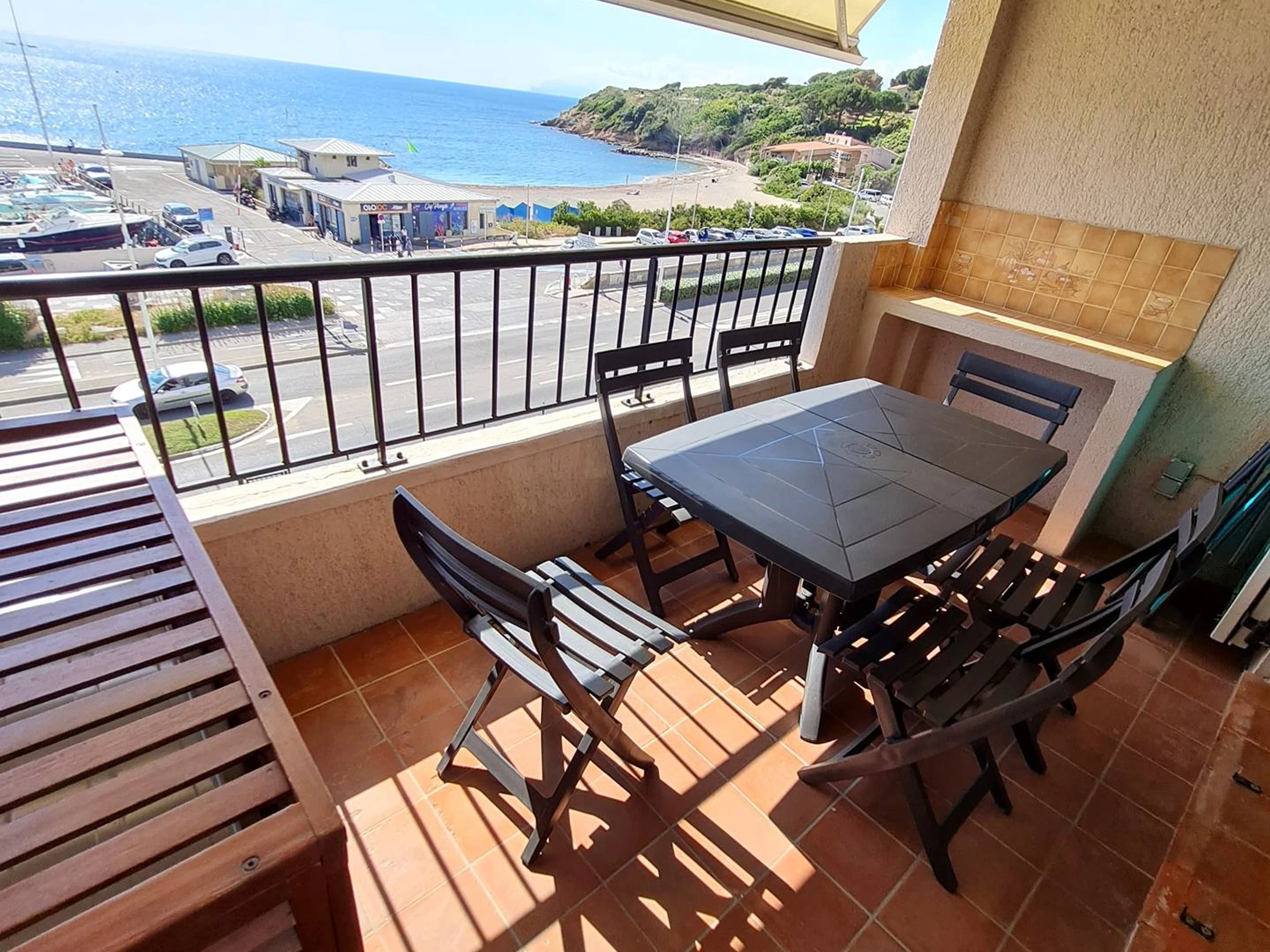 Loggia (8 m²) offrant une vue mer panoramique avec store banne, transats, table et chaises de jardin – Entrée avec cellier équipé d’une penderie / étagères, escabeau, aspirateur, table et fer à repasser - Cuisine ouverte sur le séjour (plaque de cuisson à induction 4 feux, hotte aspirante, four, micro-ondes, lave-vaisselle, cafetière Nespresso, cafetière à filtre, bouilloire, grille-pain) - Cellier avec réfrigérateur/congélateur, lave-linge et étagères de rangement - Pièce principale vue mer avec 1 canapé convertible neuf 2 places (en 140 x 190), 1 canapé fixe, espace repas et téléviseur - 1 chambre vue mer avec 1 lit 2 places (en 140 x 190), téléviseur, armoire dressing et commode - 1 chambre avec 1 lit 1 place (en 90 x 190), armoire, commode et bureau - Salle de bains avec baignoire, bidet, vasque simple et sèche-serviettes – 1 WC indépendant.