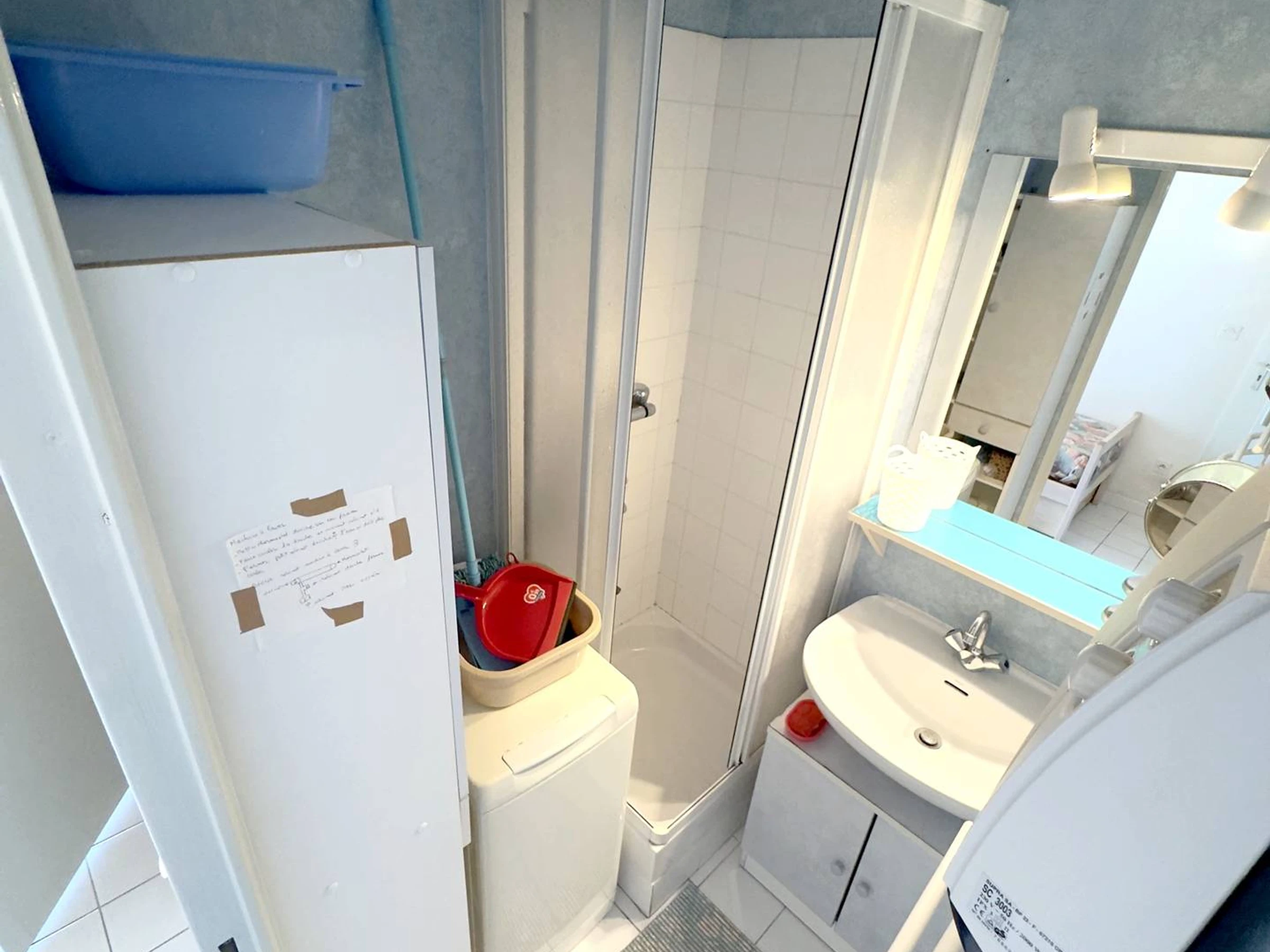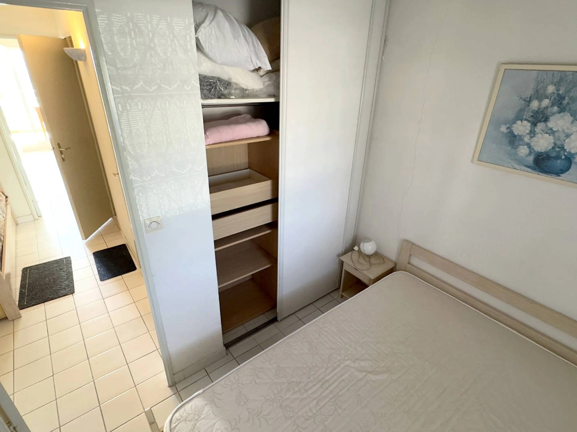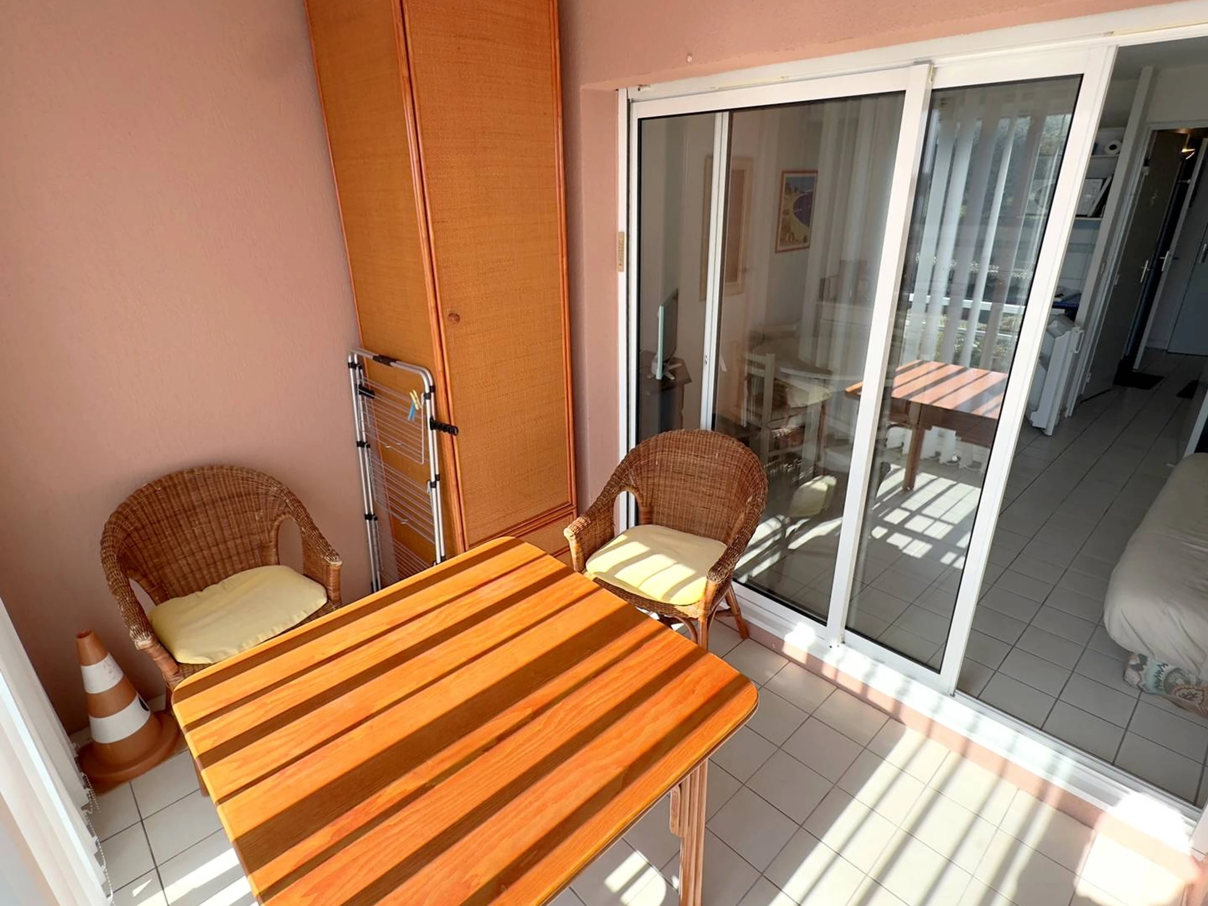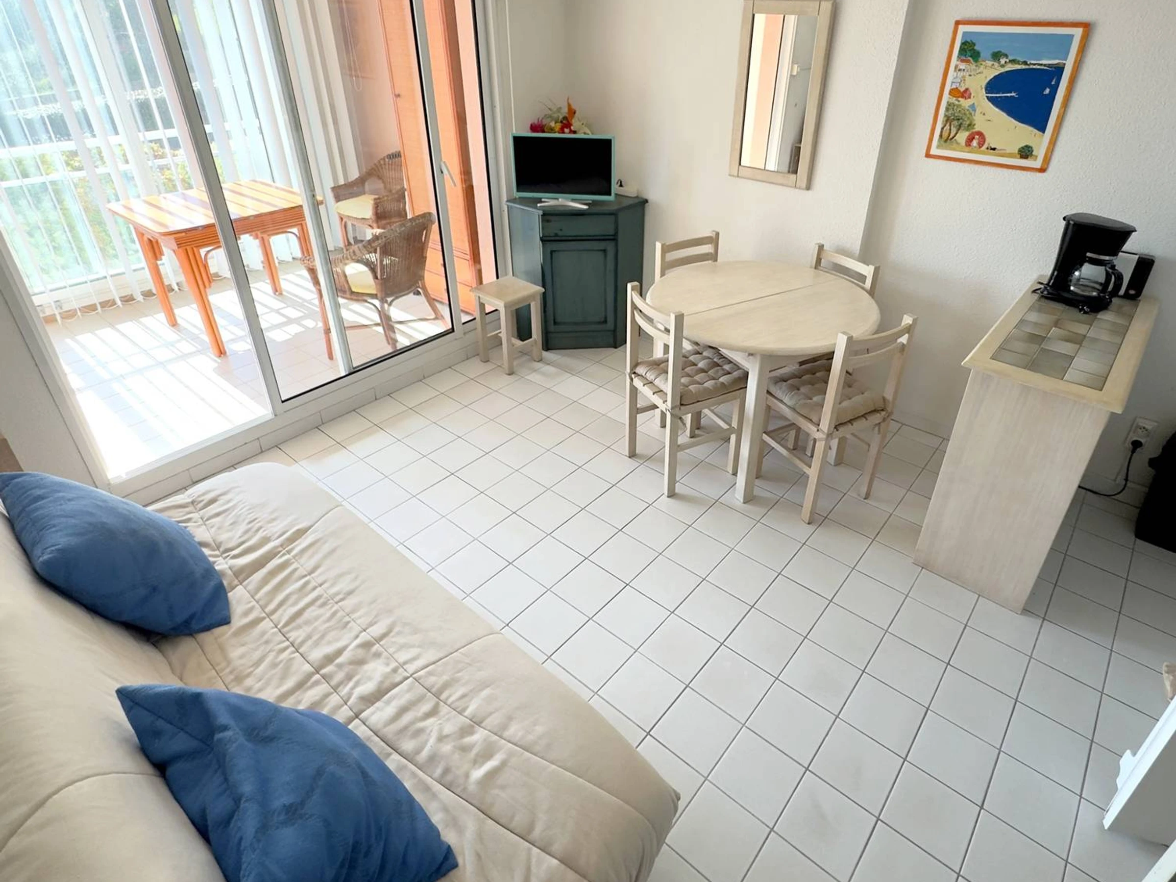 Loggia fermée par baies vitrées amovibles (10 m²) avec stores et table et chaises de jardin - Vue mer - Cuisine ouverte sur le séjour (plaque de cuisson 2 feux – petit frigo top - micro-ondes - cafetière à filtre – cafetière à dosette Senseo - bouilloire - grille-pain - aspirateur) - Pièce principale avec 1 canapé convertible 2 places (en 130), téléviseur et 1 ventilateur colonne - Chambre avec 1 lit 2 places (en 140) et placard / penderie - Coin nuit dans l'entrée avec 1 lit 1 place (en 90) - Salle d’eau avec douche (passage étroit) et lave-linge - WC indépendants.