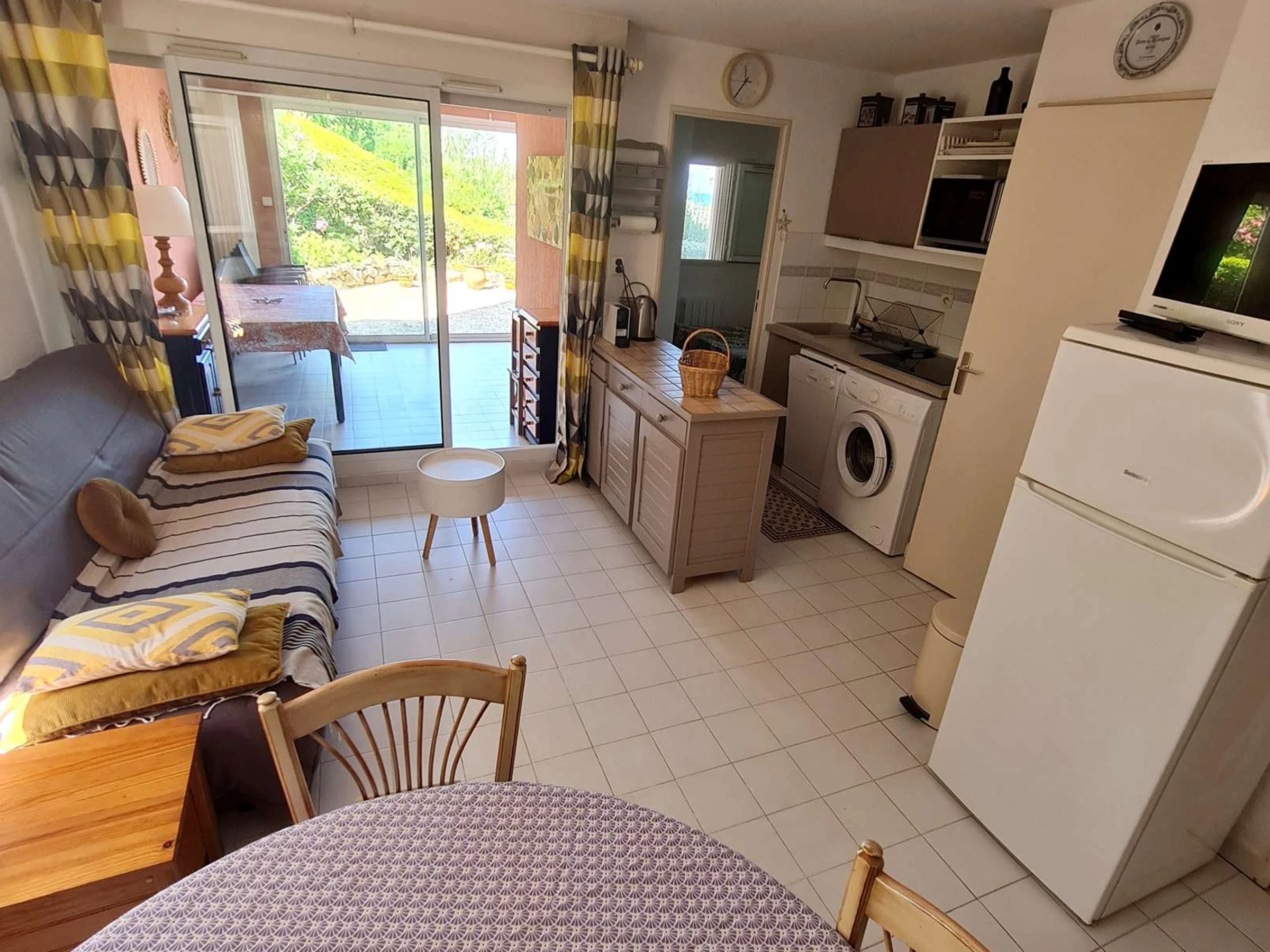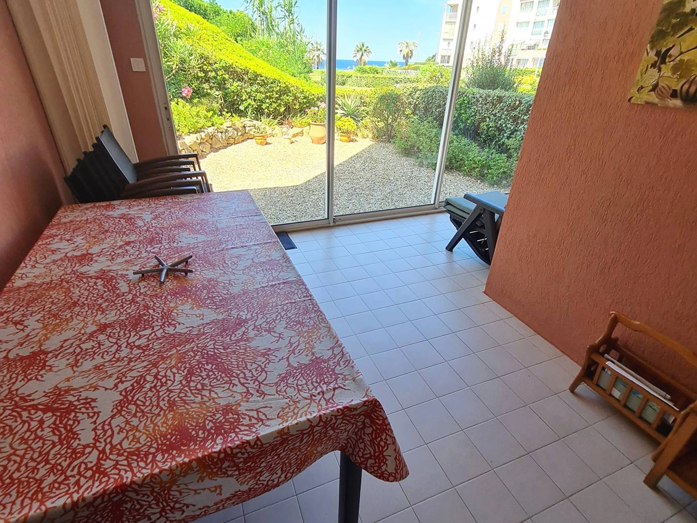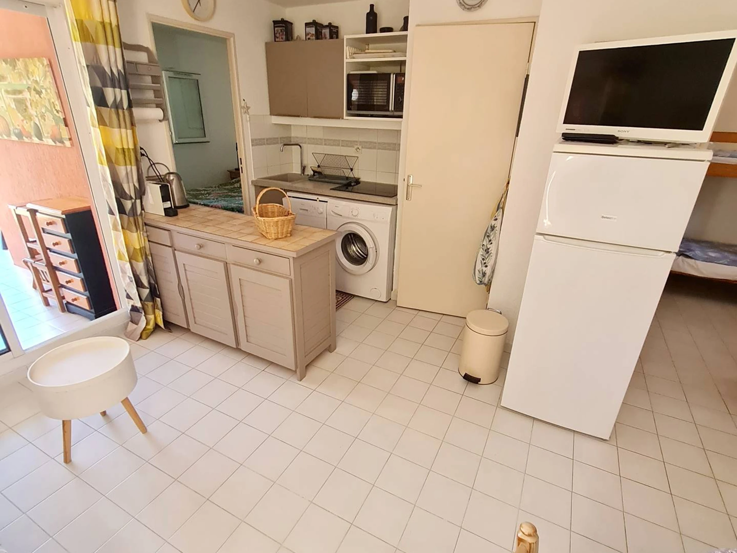 Jardin face à la mer - Grande loggia fermée par baies vitrées amovibles avec stores à lames, store banne extérieur, table et chaises, parasol et 2 transats - Cuisine équipée refaite à neuf (réfrigérateur/congélateur - lave-vaisselle - lave-linge - four combiné micro-ondes - plaque de cuisson à induction 3 feux - cafetière à capsules - grille-pain - bouilloire - aspirateur - table et fer à repasser) - Pièce principale avec 1 canapé convertible clic-clac 2 places (en 140) et téléviseur - 1 chambre vue mer avec 1 lit 2 places (en 140) vue mer, placard, moustiquaire et store - 1 chambre avec 2 lits superposés 1 place (en 90), placard, commode, moustiquaire et store - Salle d'eau avec douche - WC indépendant.