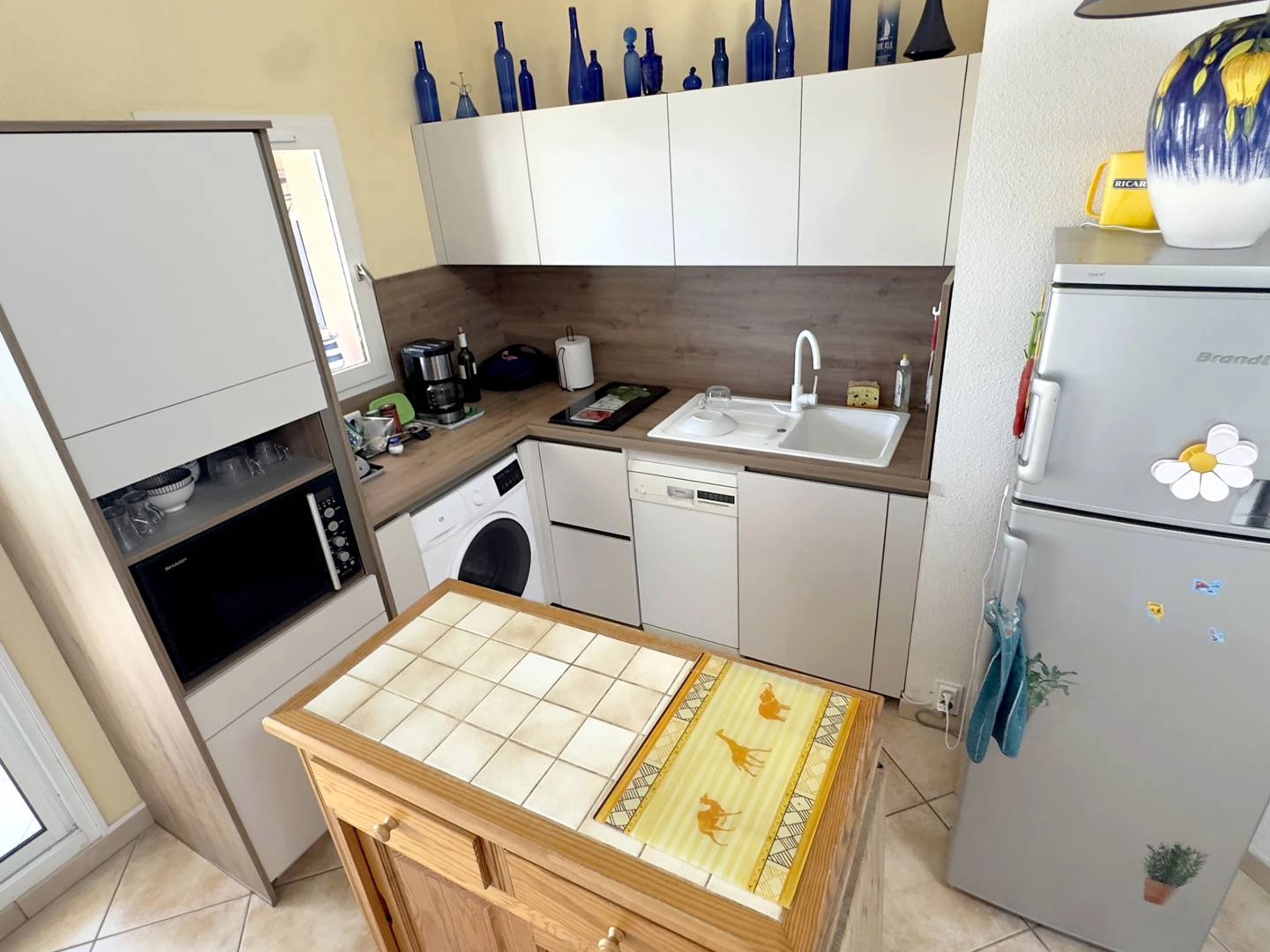 Terrasse fermée par baies vitrées amovibles offrant une magnifique vue mer avec rideaux occultants, meubles de rangement, table et chaises - Coin cuisine (réfrigérateur / congélateur - plaque de cuisson 2 feux - hotte aspirante - four - lave-vaisselle - lave-linge - cafetière à dosette - cafetière à filtre - table et fer à repasser - aspirateur) - Pièce principale avec 1 canapé convertible 2 places (en 140), téléviseur (Netflix intégré) et ventilateur Dyson - Chambre vue mer avec 1 lit 2 places (en 140) - Chambre avec 1 convertible 1 place (en 140) et 1 lit en hauteur 1 place (en 90) - Salle d'eau avec douche - WC indépendants.