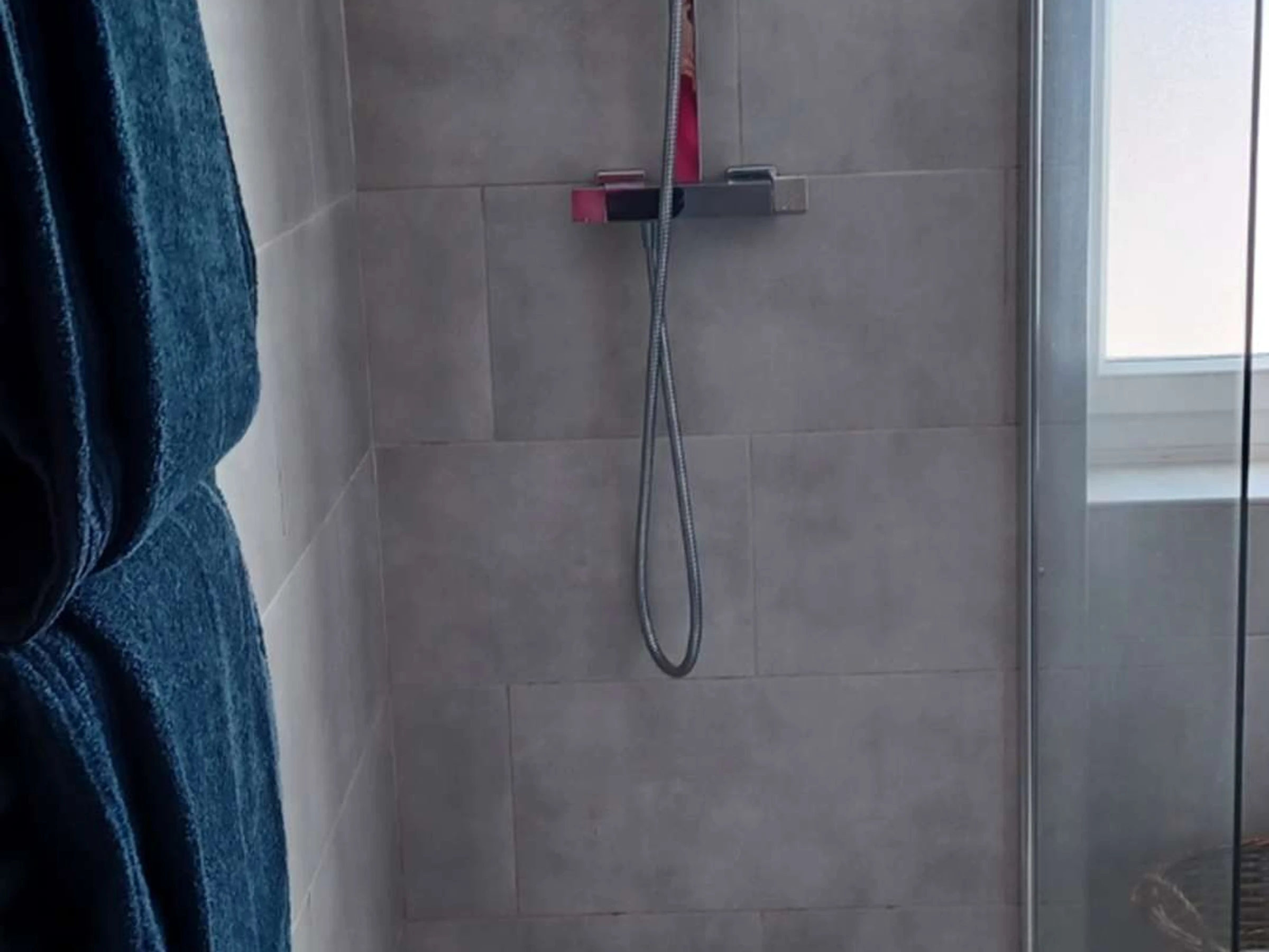 Salle d'eau : Douche, lavabo, sèche-serviette, sèche-cheveux
