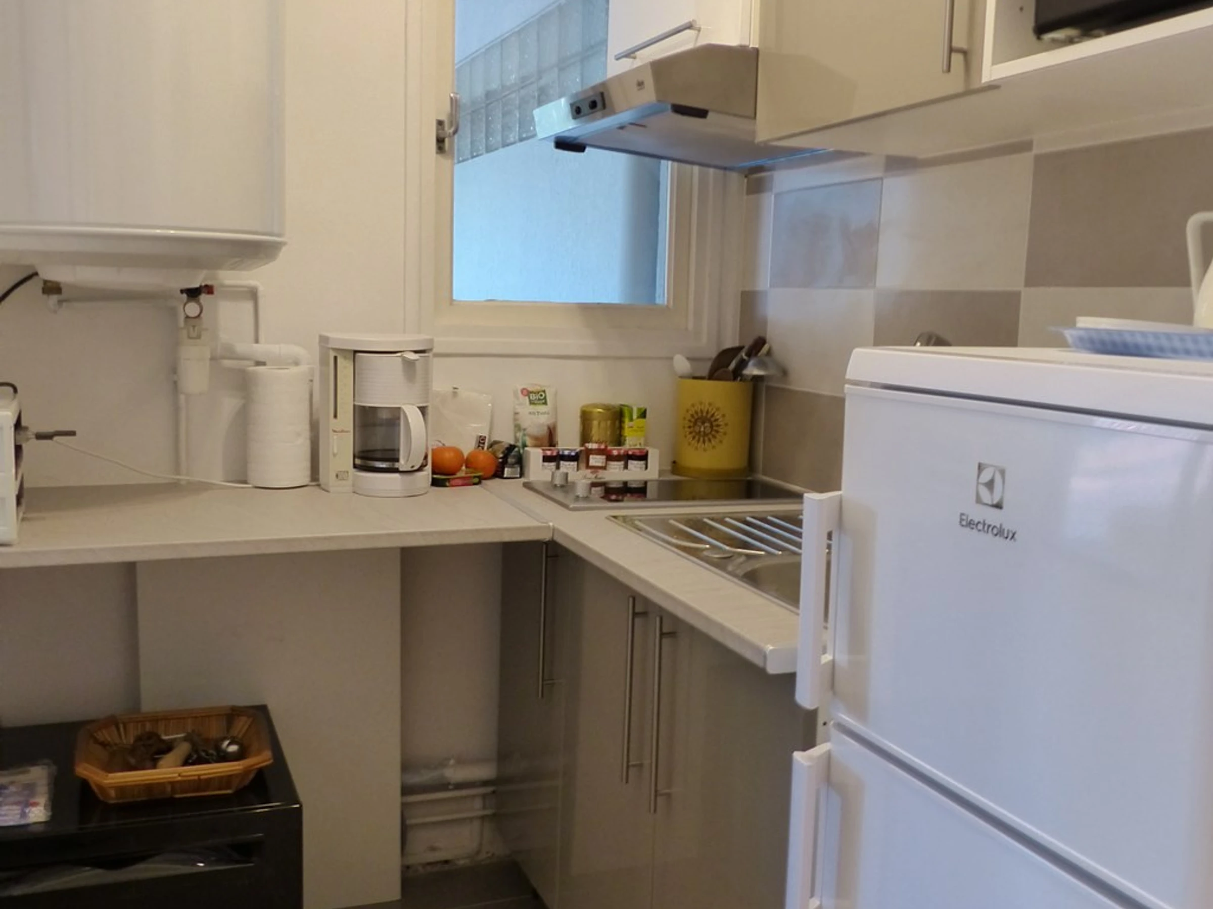 Entrée avec petit cellier. Pièce de séjour donnant sur une grande terrasse fermée en véranda faisant coin salon avec vue sur le port. Cuisine aménagée et équipée (1.72 x 1.99): plaque induction, réfrigérateur-congélateur, micro-ondes et petit lave-vaisselle. Chambre (2.93 x 2.89) avec placard: 2 lits en 90.