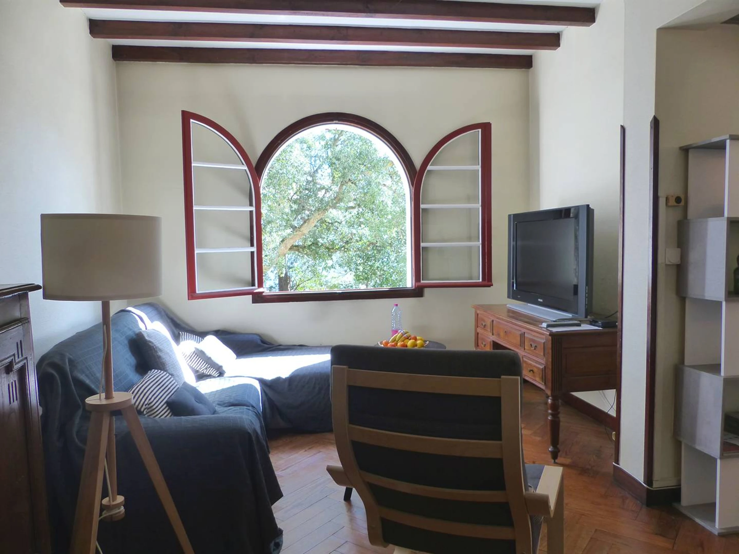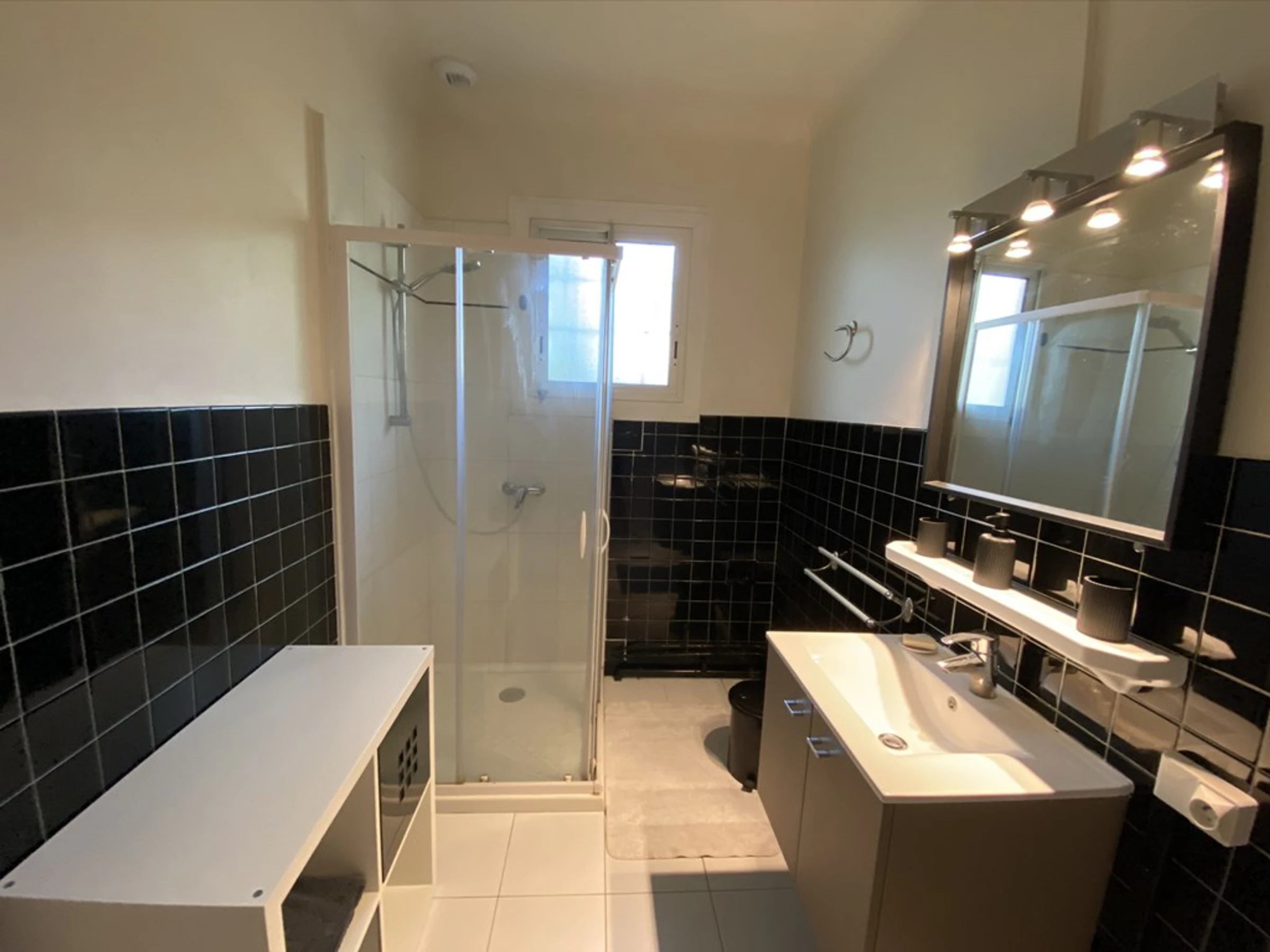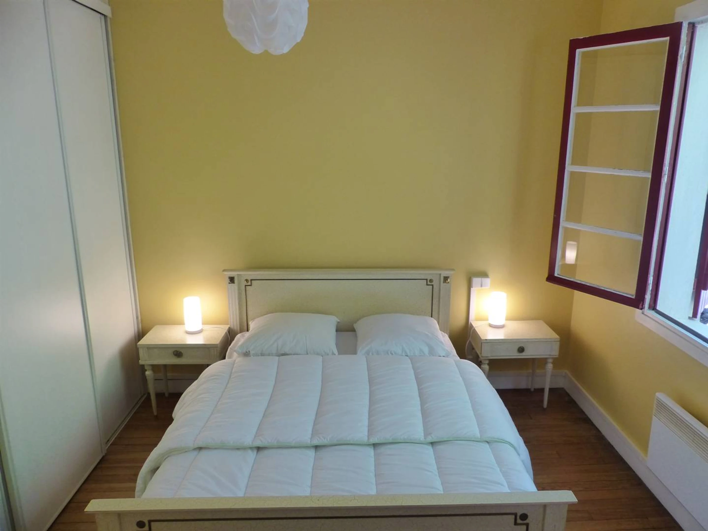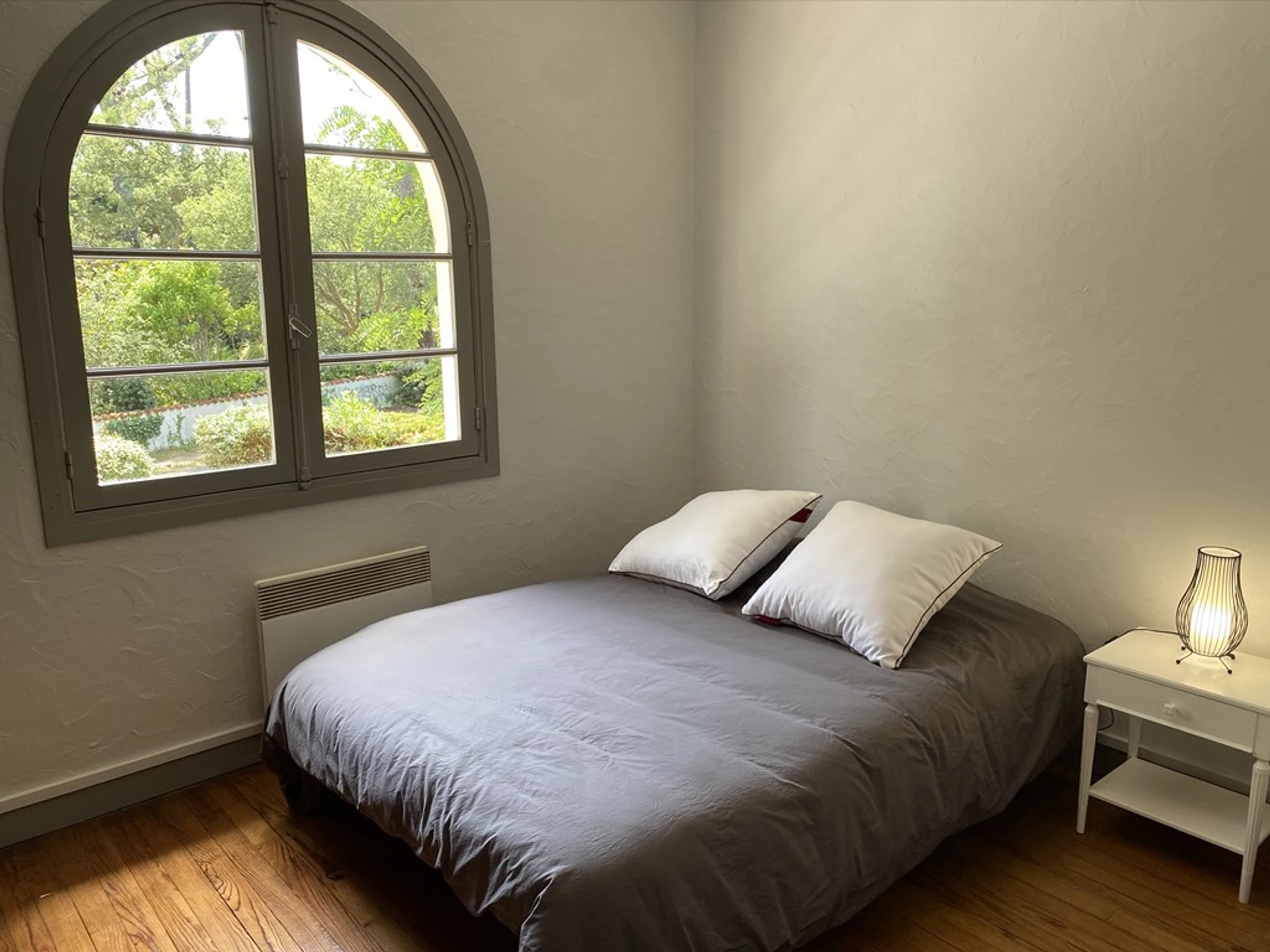 Chambre 1 (3.68x2.99) donnant sur façade: 1 lit en 140 et 1 lit en 90. Salle de douche (2.99x1.83): douche et vasque. Placards. WC séparé. Chambre 2 (3.02x3.02): 1 lit en 140 et placard. Possibilité de rentrer une voiture dans le jardin. Un grand local fermé au rez de jardin permet de stocker les vélos, les planches ou les sacs de golf.