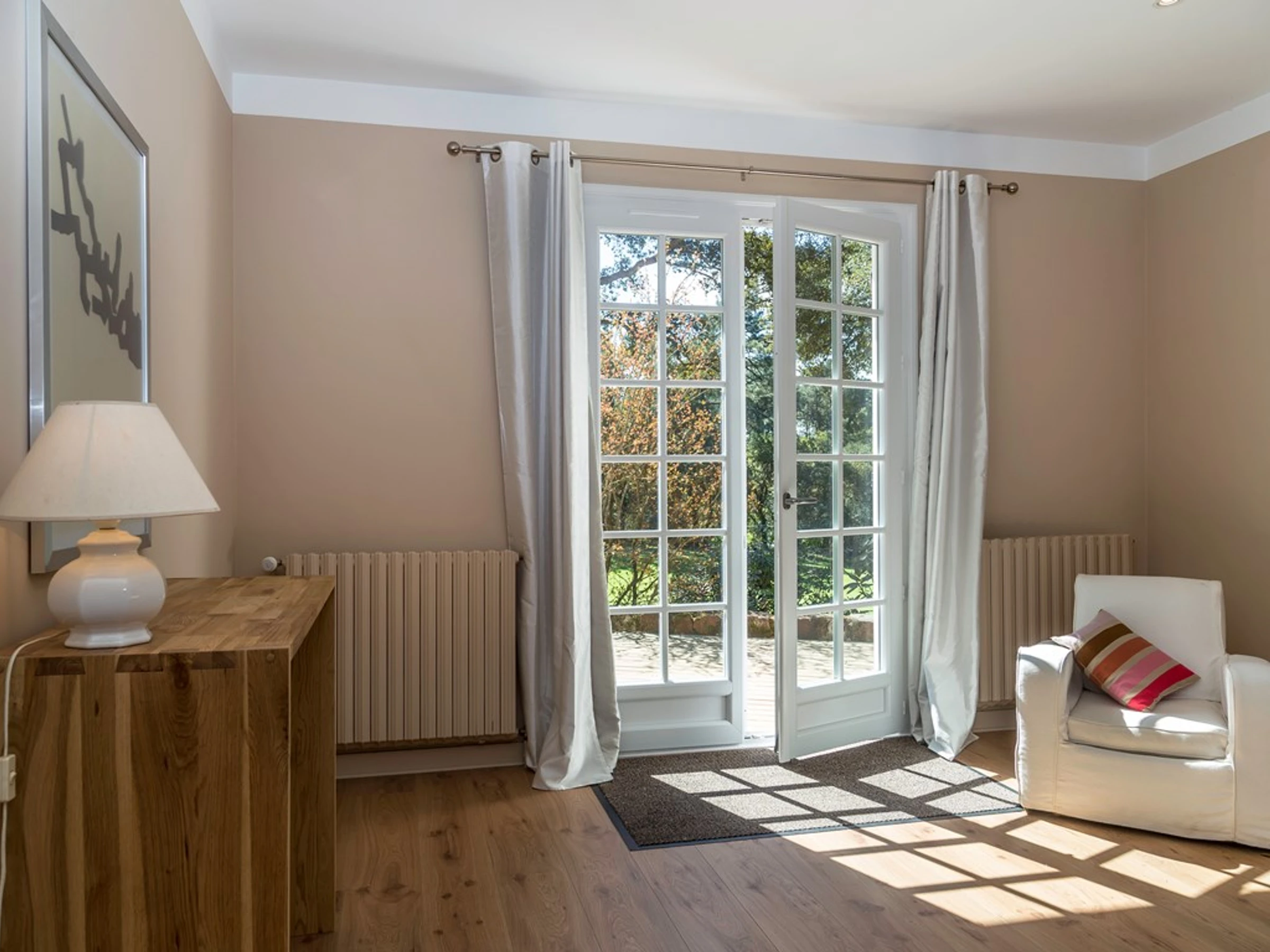 - La villa comprend trois chambres principales.
