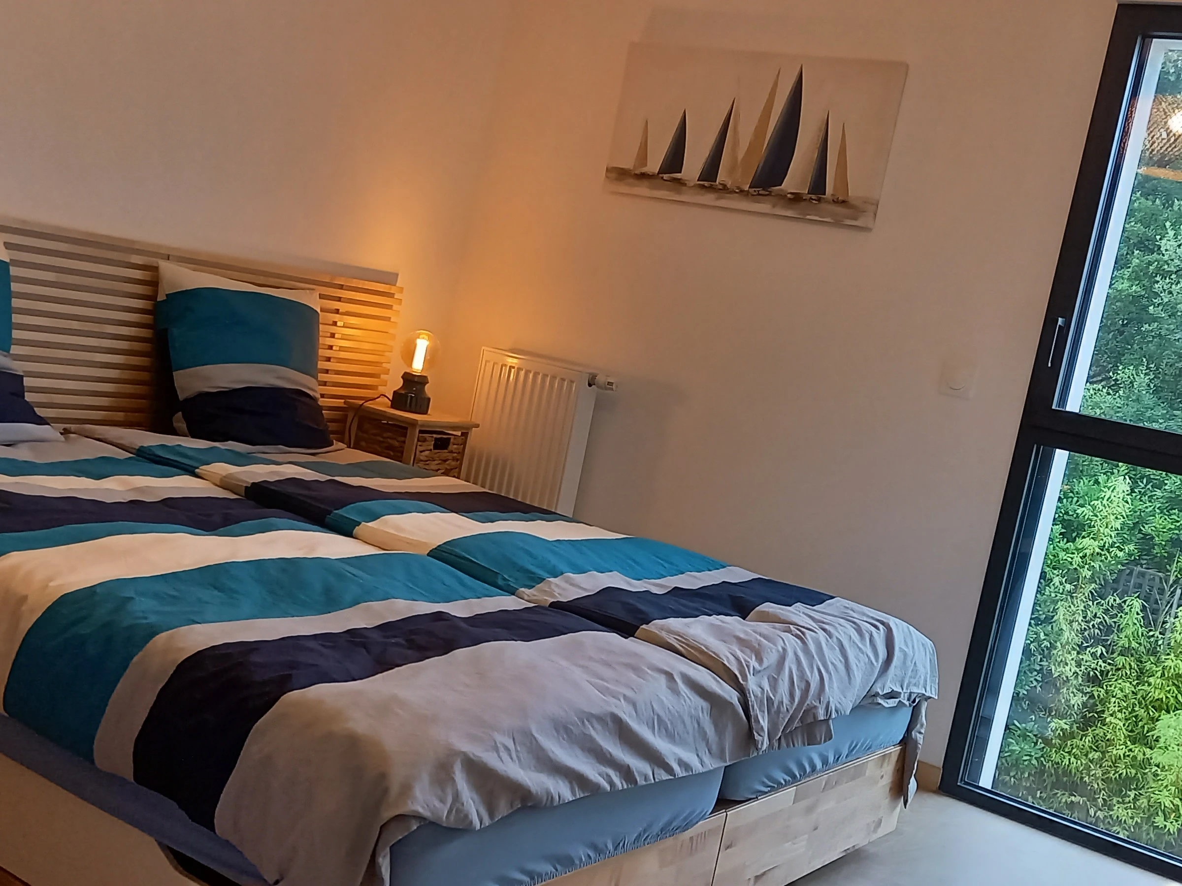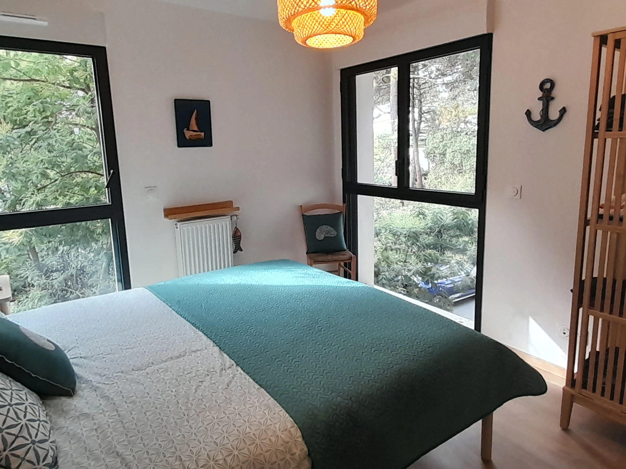 L'espace nuit se compose d'une chambre parentale cosy et lumineuse avec sa salle d'eau attenante, équipée d'un lit en 160 ainsi que d'une seconde chambre équipée de 2 lits en 90.