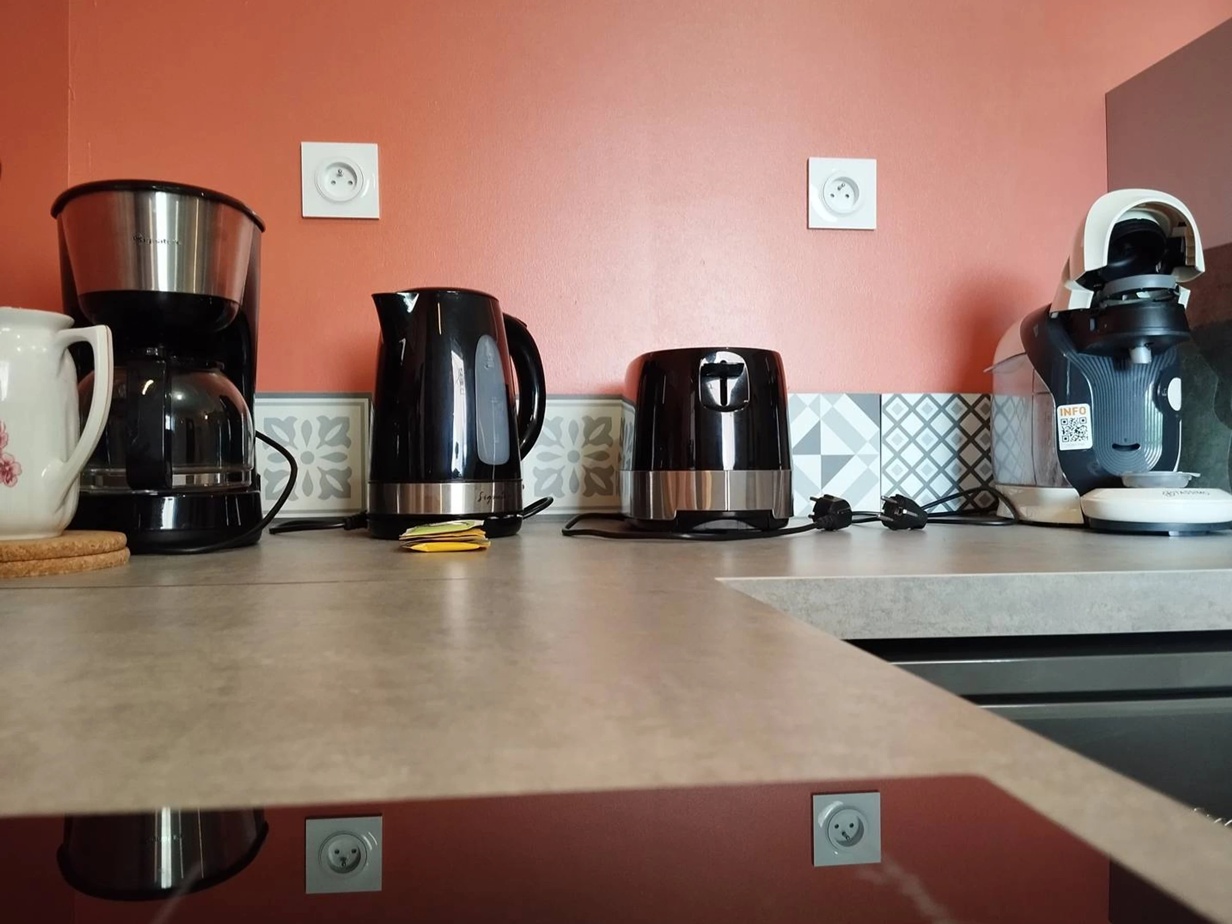 - cuisine équipée (four, lave-vaisselle, induction, cafetière filtre, bouilloire)