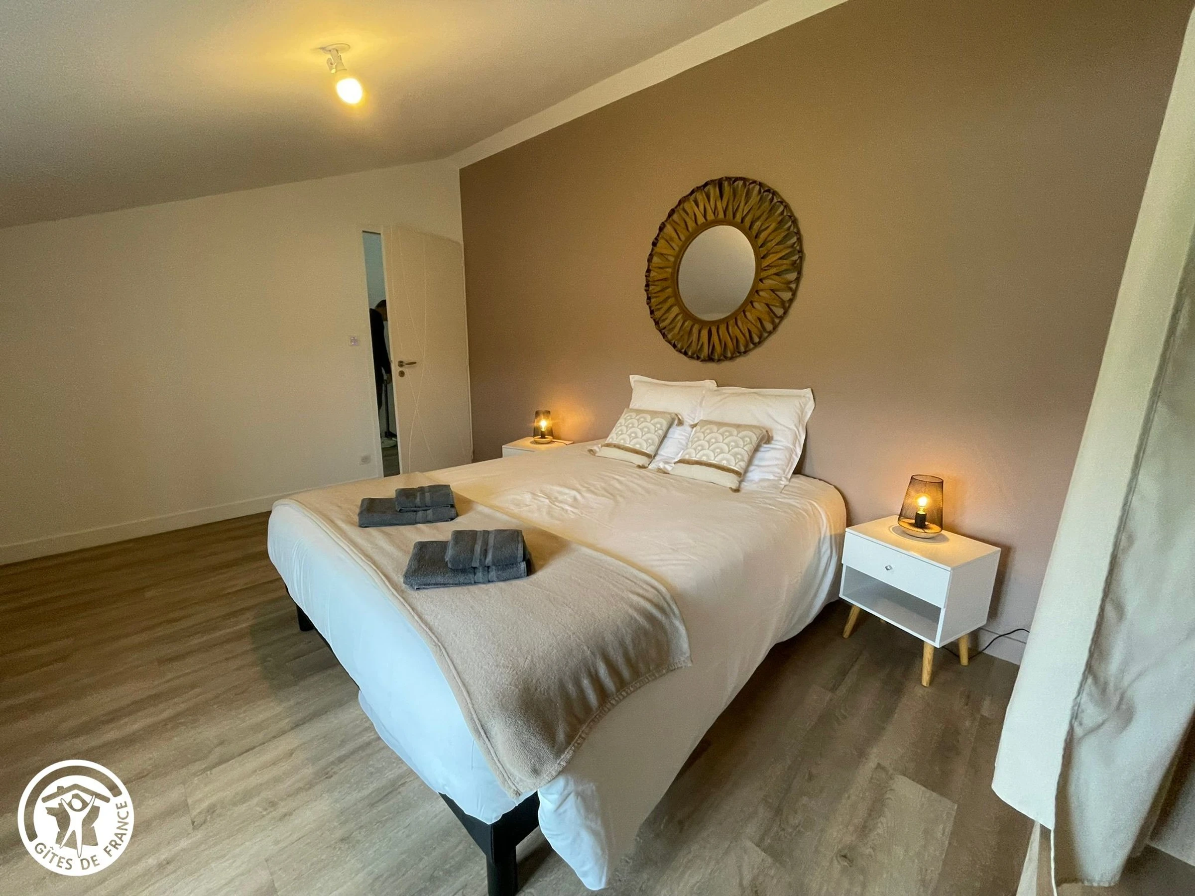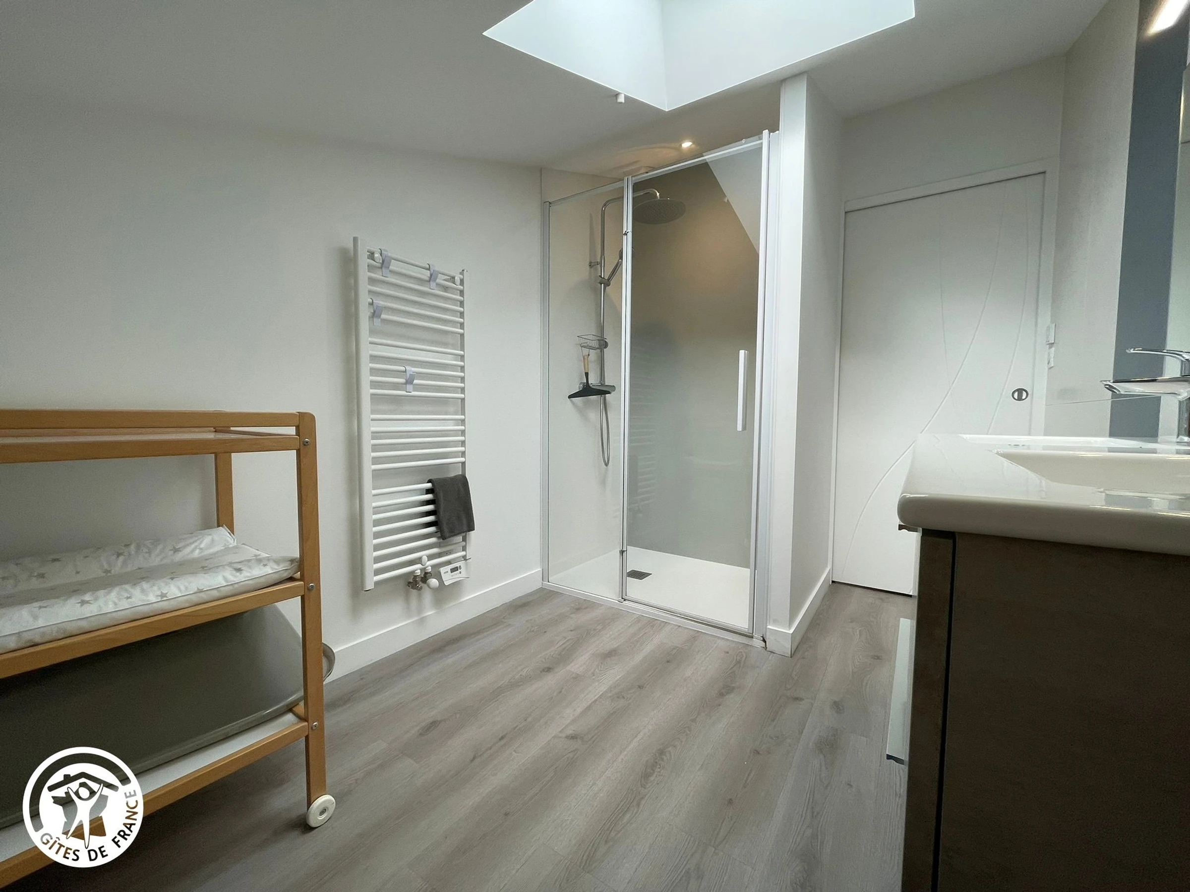 Séjournez dans le nord-ouest de la Vendée et découvrez la ville de Challans (7 km), et les plages de Saint-Jean-de-Monts, Saint-Gilles-Croix-de-Vie, Saint-Hilaire-de-Riez (15 km) ou Brétignolles sur Mer (23 km). Poursuivez votre visite du littoral en vous rendant à Noirmoutier par le passage du Gois (30 km), ou aux Sables d'Olonne (38 km), ville du Vendée Globe. Cette maison se compose, au rez-de-chaussée, d'un séjour/cuisine, d'un salon avec babyfoot, d'une chambre équipée d'un lit 160 avec salle d'eau/WC privative, d'un WC séparé et d'un cellier (lave-linge, sèche-linge, réfrigérateur supplémentaire). A l'étage mansardé, vous trouverez 4 chambres dont deux équipées de 3 lits 90 et 2 équipées d'un lit 160, deux salles d'eau (dont une équipée d'une table à langer et d'une baignoire bébé) et un WC séparé. Vous disposerez d'une terrasse privative (salon de jardin, barbecue, transats) et d'un terrain de 4000 m² commun avec piscine couverte (4 x 8m) et chauffée, accessible d'avril à octobre, jeux enfants, terrain de pétanque et table de ping-pong. Vous pourrez stationner plusieurs voitures sur place, et déposer vos vélos dans un local (non verrouillable).