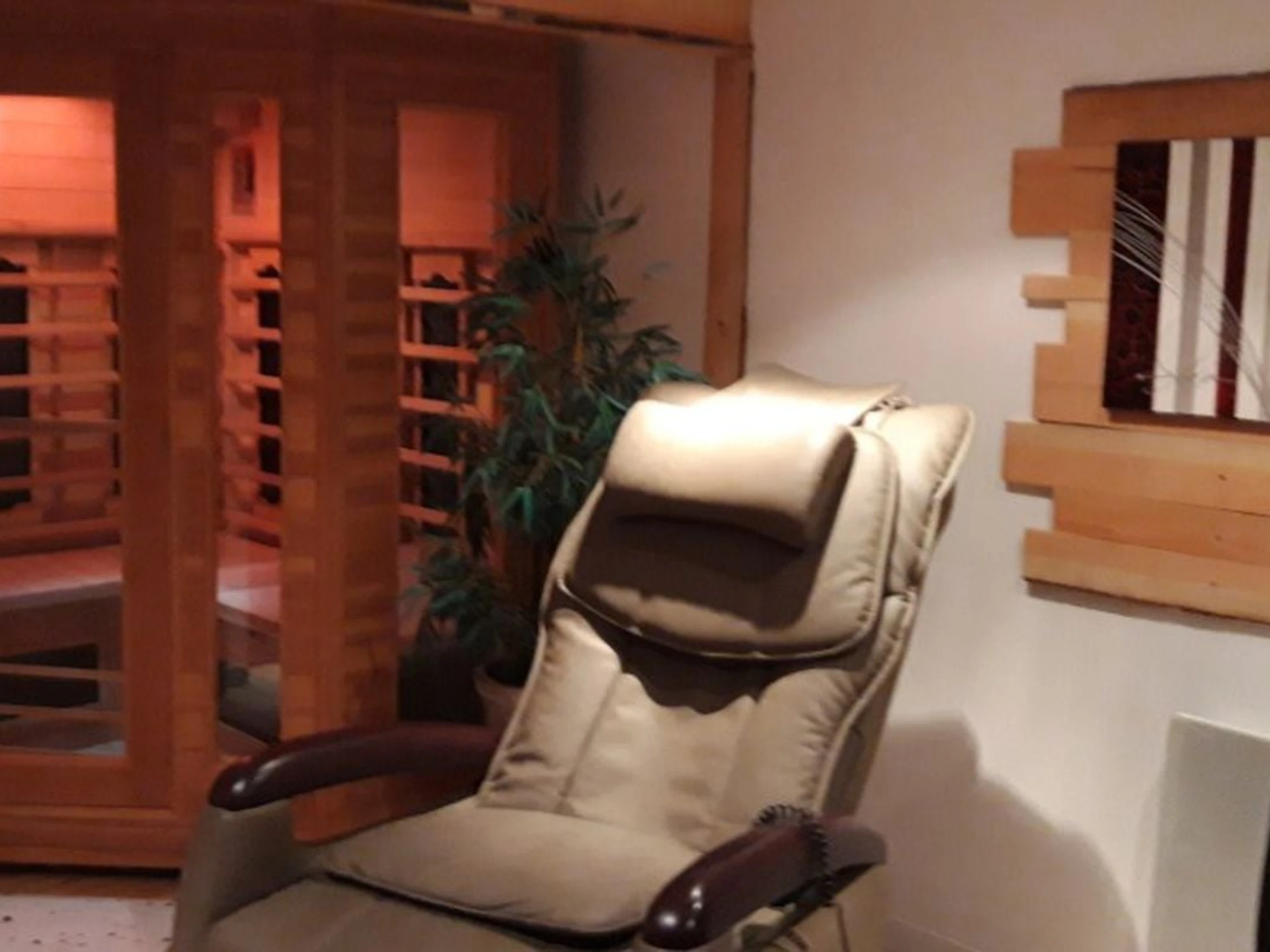 - Espace du00e9tente avec baignoire balnu00e9o, sauna et fauteuils massants.rnSur ru00e9servation