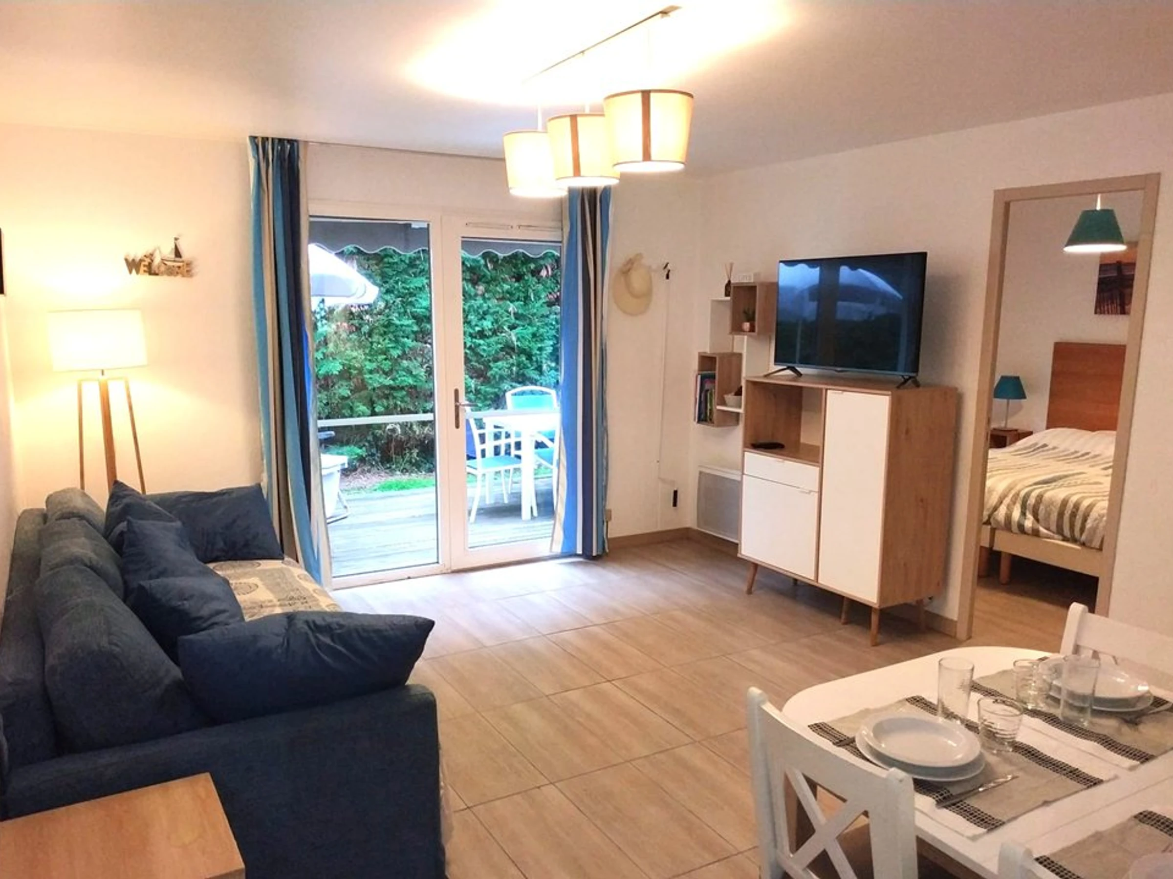 -1 séjour avec télévision (canapé convertible) et table à manger extensible jusqu'à 6 personnes