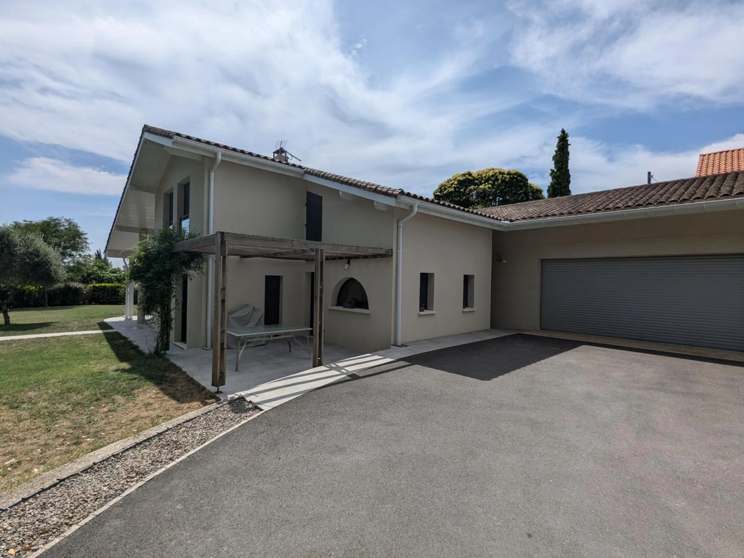 En extérieur : Terrasses couverte et découverte, car-port, jardin clos privatif de 1600 m² avec piscine privative de 4x8m (1.20m à 1.55m de profondeur), ouverte du 01/05 au 30/09, sécurisée par un volet roulant. Abri piscine avec WC et douche. Cuisine d'été avec réfrigérateur, évier, four à pizzas, barbecue argentin et plancha. Dans un quartier résidentiel, maison contemporaine, mariant élégance et modernité. Ce gîte dispose d'une piscine privative dans le jardin arboré entièrement clos, sans aucun vis-à-vis côté jardin.