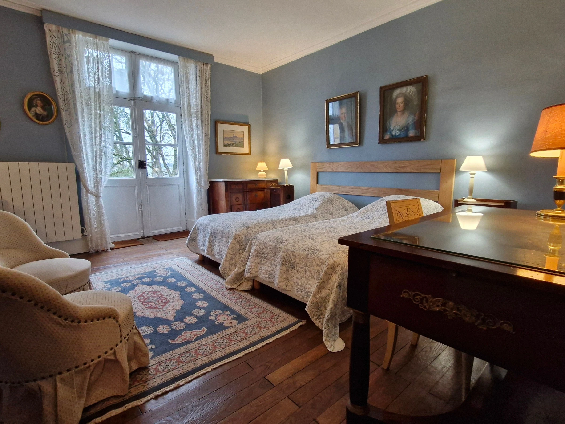 Maison de maître construite fin XVIIIème siècle dans un parc de 30000 m² non clos aux essences variées. Au RDC, cuisine et salle à manger, grand salon, 1 chambre avec 2 lit de 90 avec une salle de bain et WC, un WC indépendant. A l'étage vous trouverez 3 chambres avec 2 lits de 90 chacune, dont une avec une salle d'eau, 1 chambre avec un lit de 140 et une chambre avec 1 lit de 160, et une salle d'eau avec WC. Mobilier de style et décoration créent une ambiance très familiale. 1 lit bébé et 1 chaise haute à disposition. Maison mitoyenne à une location à l'année. Terrain de pétanque éclairé. Table de ping-pong. A proximité, le Poney-club et le centre équestre permettent une pratique à tous âges et niveaux. Immense forêt domaniale (parcours accrobranches à 4 km) et randonnées balisées sur place. Véloroute à 3 km. A 6 km de Nevers (Palais Ducal, cathédrale, faïencerie, Chasse Sainte-Bernadette). A 12 minutes du circuit de Nevers/Magny-Cours. Descente de la Loire en canoë ou bateau, avec commentaires guidés sur la faune et la flore spécifiques à ce fleuve. Nous sommes à l'écoute de nos hôtes et pouvons leur faire connaître les richesses qu'offre notre région tant sur le plan culturel que loisirs et vignobles. Possibilité séjours à thème. Parc avec très belles essences d'arbres parfois bi-centenaires. Qualification 'Bienvenue aux motards' 3 casques : vous trouverez tout l'équipement pour l'entretien des motos ainsi que des propositions d'itinéraires de balade, ...
