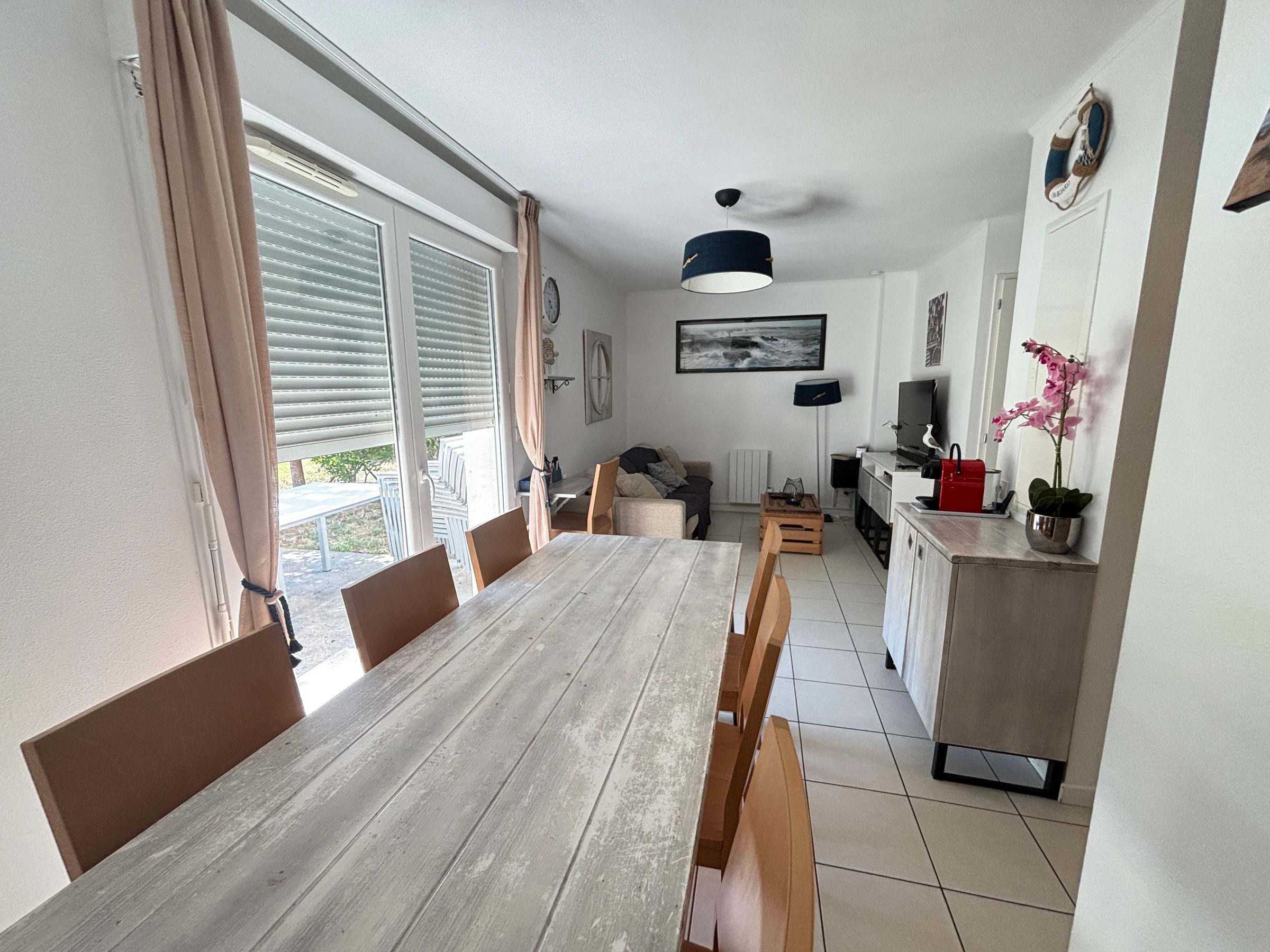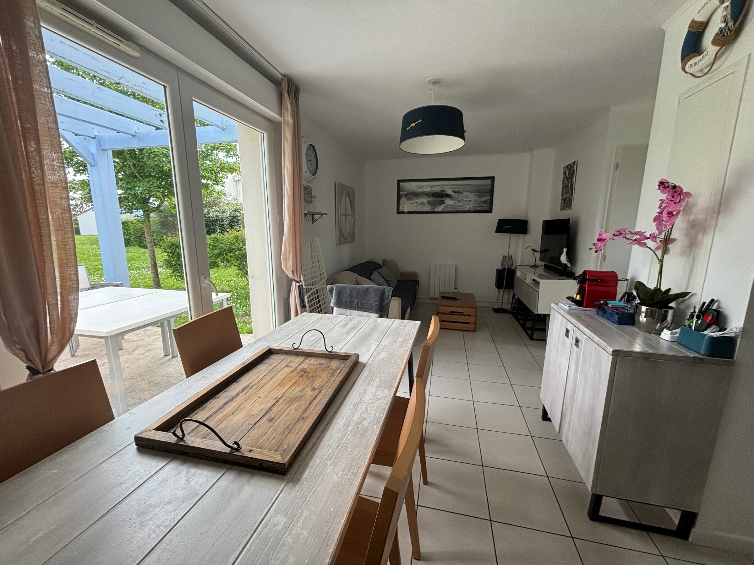 De type 4 dans un village de vacances, avec piscine collective, parcs, et près de toutes commodités. Cette maison comprend, au rez-de-chaussé, une entrée, un salon salle à manger avec une télévision, une cuisine équipée et aménagée d une plaque induction, d'un micro-ondes, d'un lave vaisselle, d'un réfrigérateur avec petite partie congélateur, d'un four, Vous aurez en rez de chaussée, une chambre avec un lit de 140x200 avec sa salle d'eau avec douche. Un water closed séparé. Un Lave linge dans le logement.