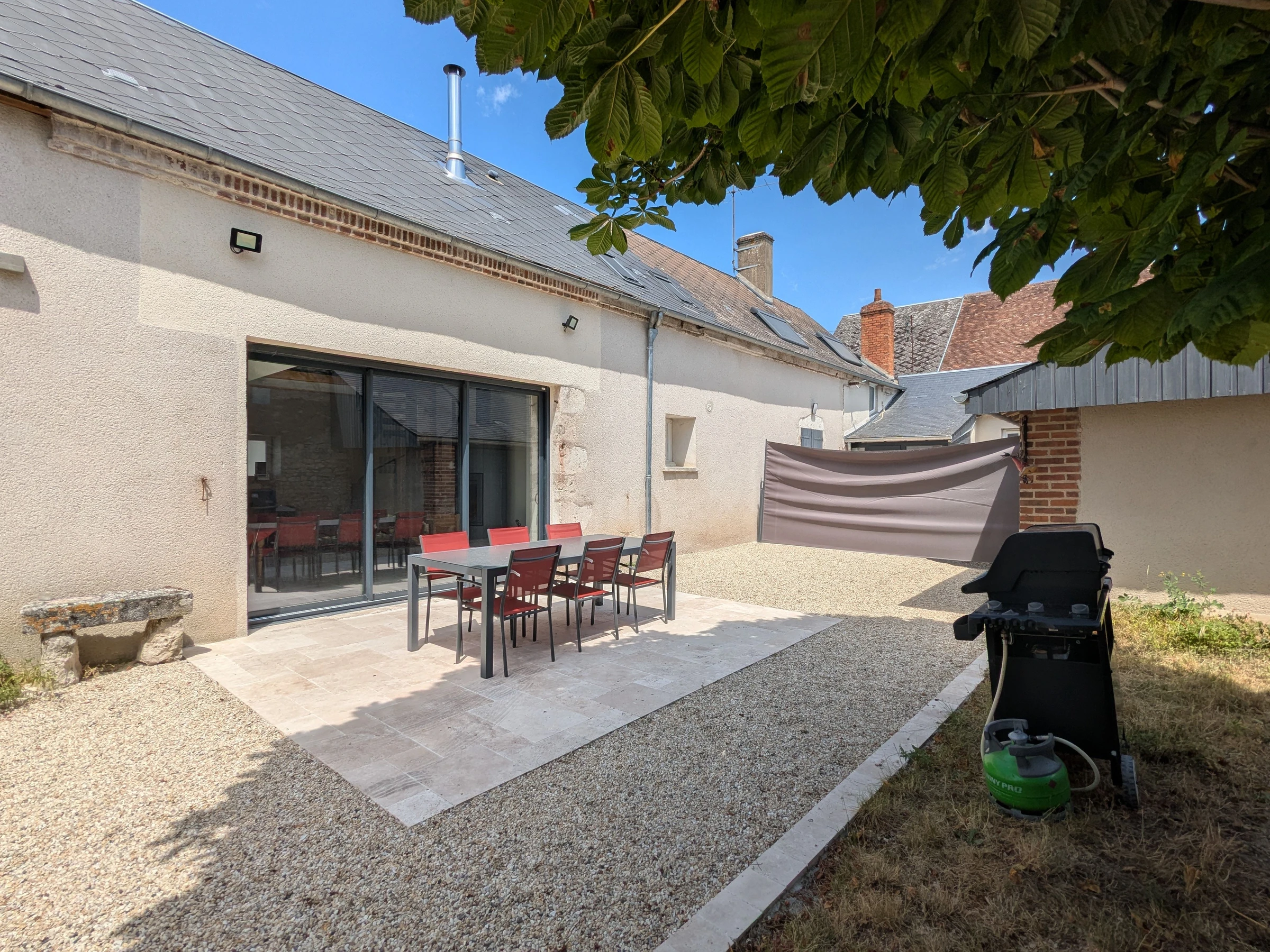 Jardin privatif (séparé du jardin du 2ème gîte par un paravent extérieur rétractable) avec terrasse, salon de jardin et barbecue au gaz.