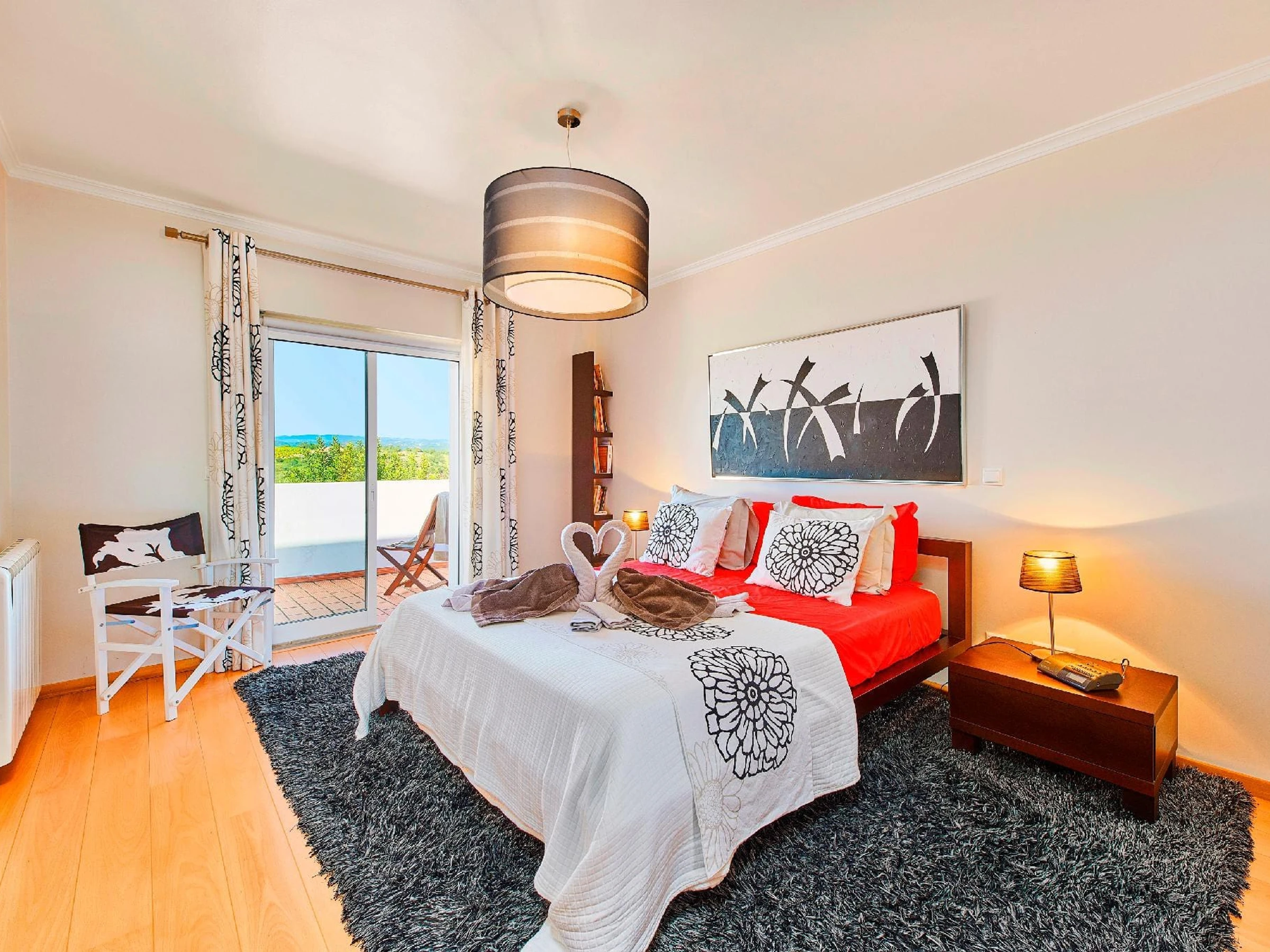PREMIER ÉTAGE - Les 4 chambres occupent l'intégralité du premier étage de la villa, avec 1 chambre principale king size disposant d'un dressing et d'une salle de douche attenante. L'accompagnent 2 chambres généreusement dimensionnées, 1 avec un lit king size et 1 chambre avec 2 lits simples, plus une 4ème chambre, idéale pour les enfants avec un lit simple qui dispose d'une option de lit supplémentaire escamotable. Suivez les escaliers jusqu'au deuxième étage et profitez des vues impressionnantes – parfait pour observer les étoiles la nuit.