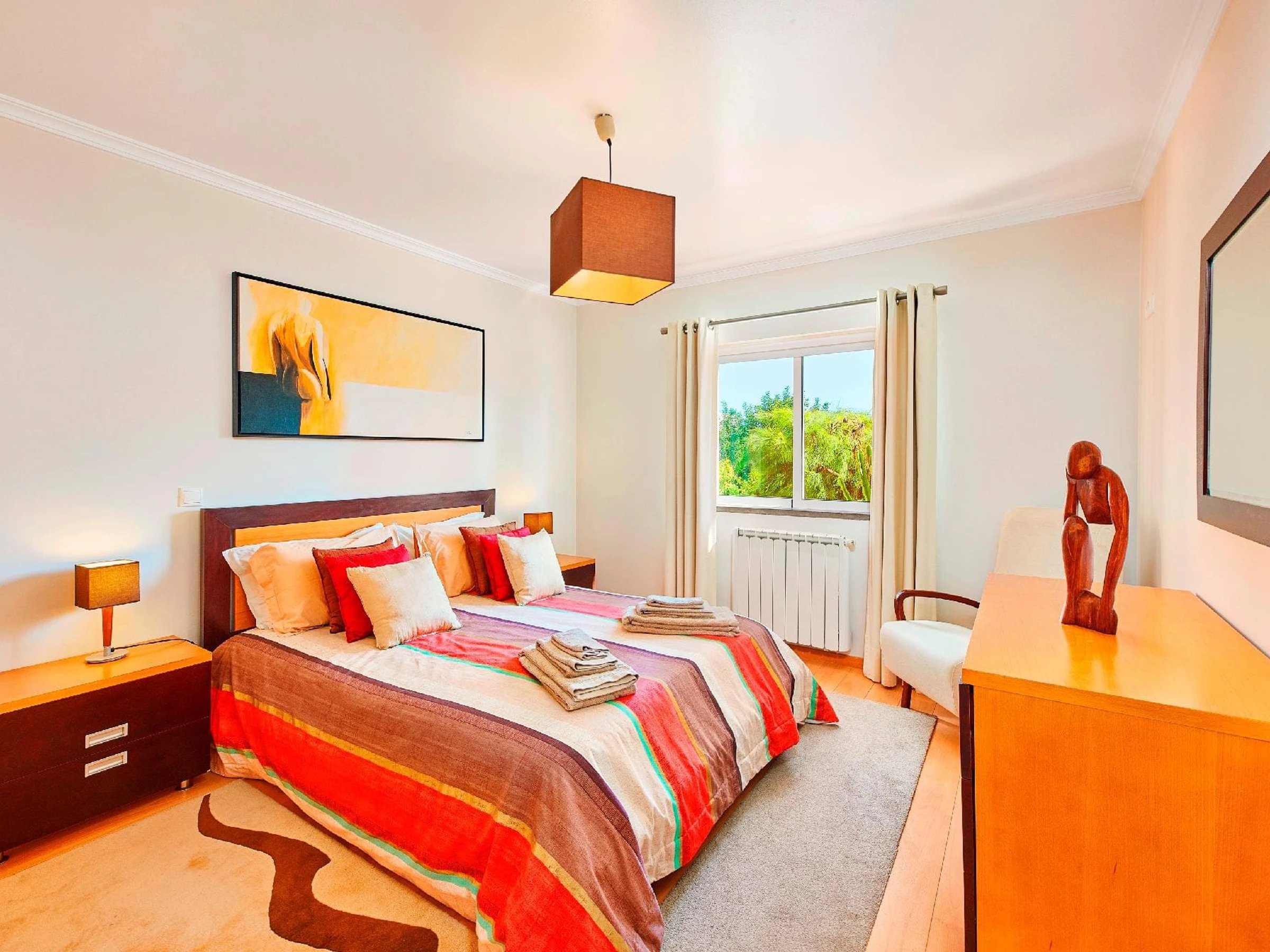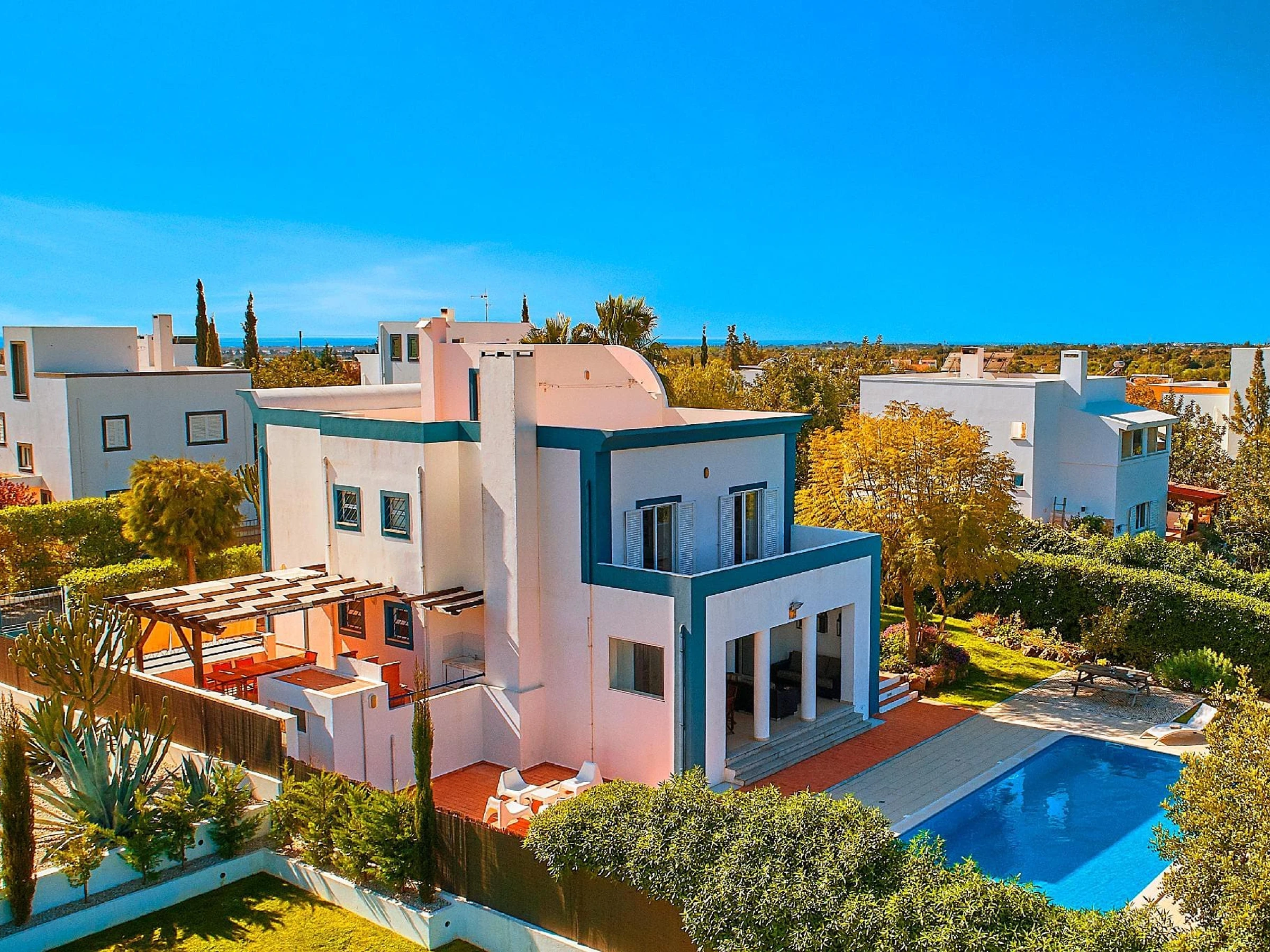 Une villa de vacances exquise joliment située dans un quartier résidentiel paisible, avec une attention méticuleuse aux détails. L'intérieur est orné de couleurs vives et de meubles élégants, tandis qu'à l'extérieur, la piscine scintillante et les transats, une terrasse de repas extérieure attrayante et un beau jardin herbeux offrent tous les ingrédients nécessaires pour profiter de la vie en plein air. Une promenade de 20 minutes vous mène aux restaurants, aux boutiques traditionnelles et au bateau vers les sables dorés et les eaux animées de l'île de la plage de Tavira.