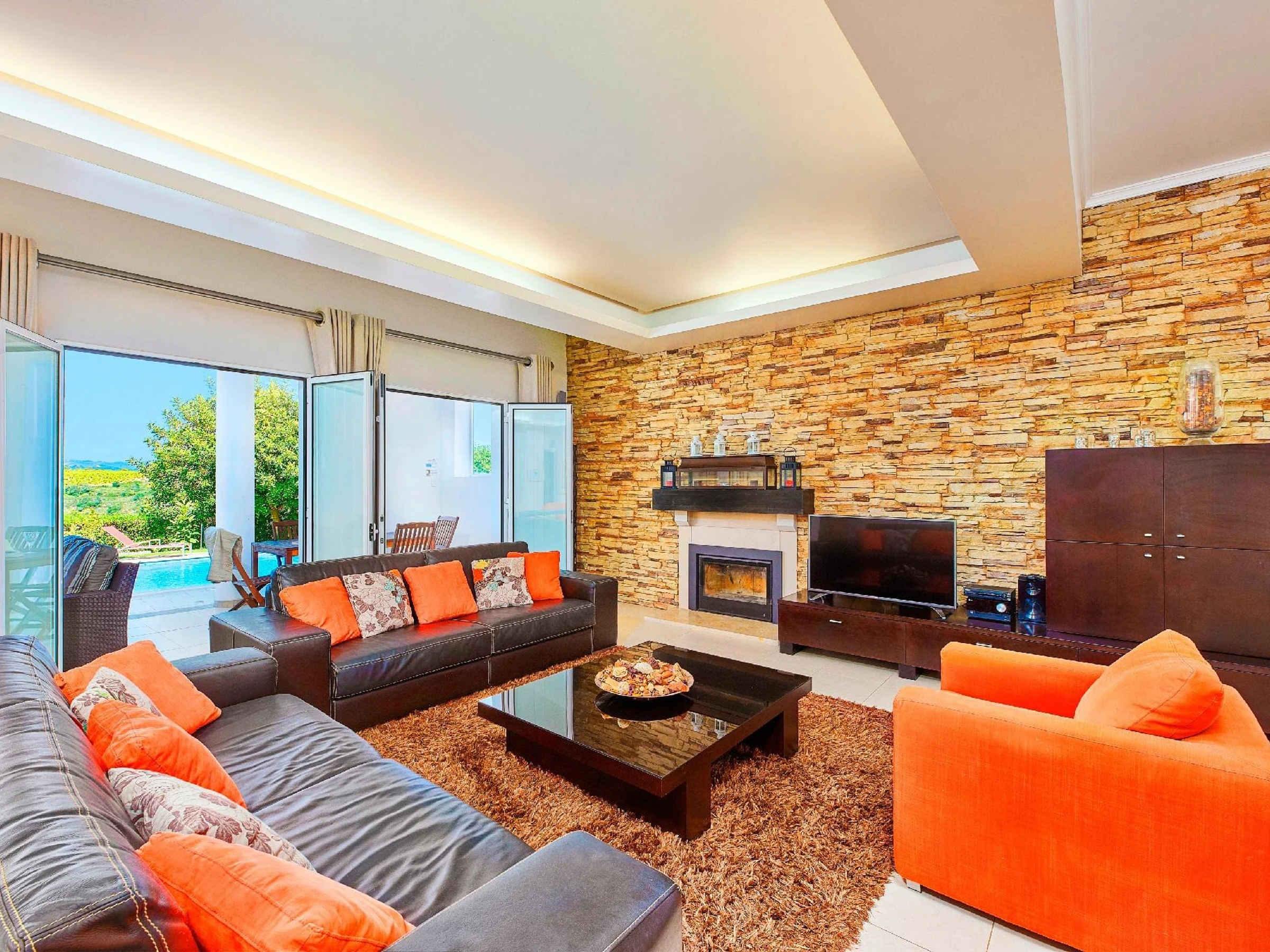 REZ-DE-CHAUSSÉE – En entrant dans la villa, vous êtes accueilli par le décor majestueux du salon avec son impressionnante paroi en pierre. La lumière du jour traverse les grandes fenêtres de la terrasse sur toute la longueur de la zone de séjour et mène à une terrasse ombragée avec des canapés confortables en rotin et une table à manger. Tournez le coin pour découvrir une deuxième opportunité de repas, avec un barbecue traditionnel en brique et une zone de préparation des aliments attenante, le tout niché sous un auvent attrayant offrant une superbe expérience de repas en plein air. Joliment placée à l'avant de la villa, une cuisine entièrement équipée se prête à une expérience de restauration à domicile exceptionnelle, avec un large éventail d'appareils et de gadgets ! La salle à manger attenante est élégante et arbore une table noire polie magnifique, joliment accessoirisée pour des occasions de repas plus formelles. Un WC/douche pour invités est également commodément situé au rez-de-chaussée.
