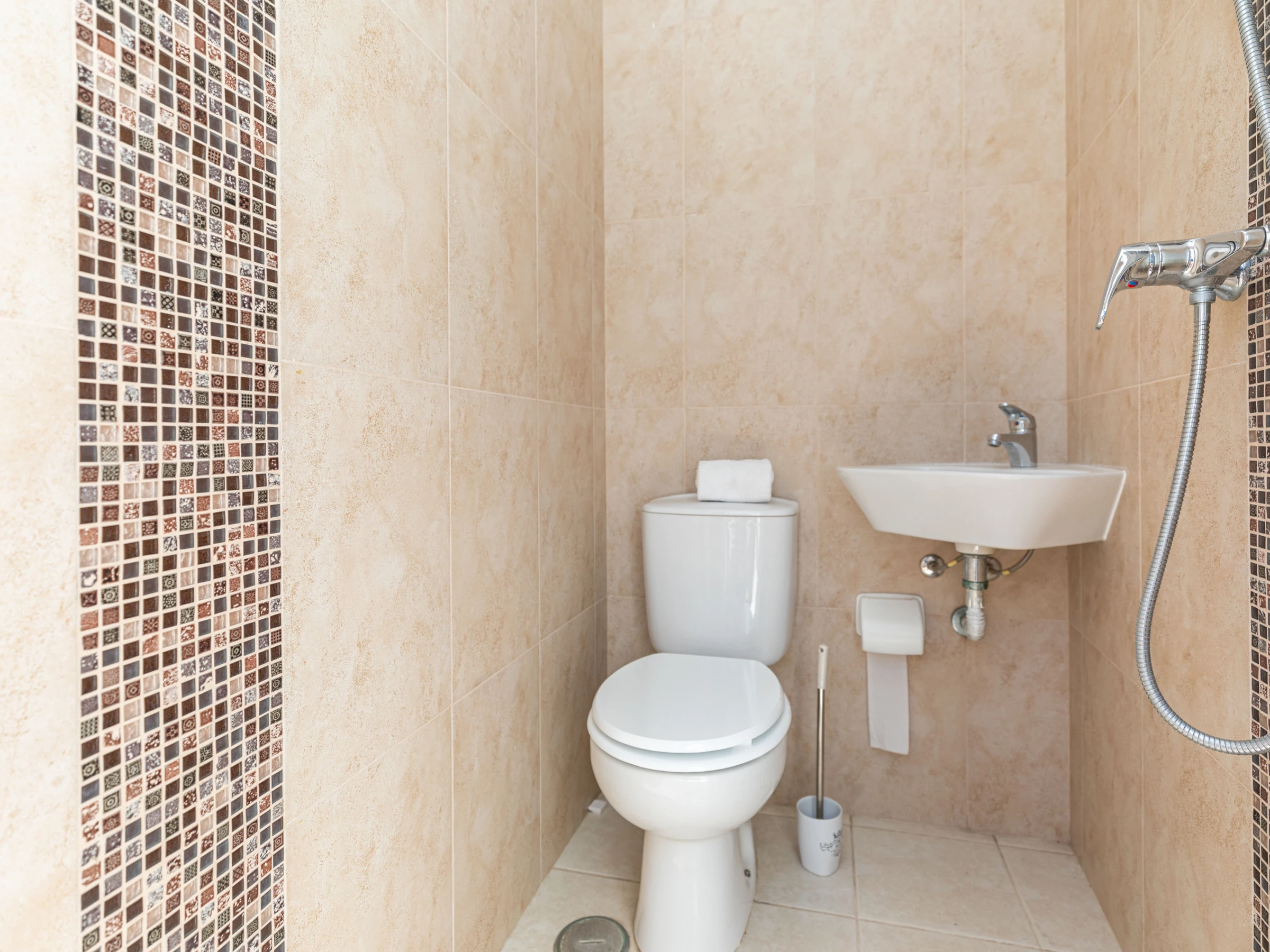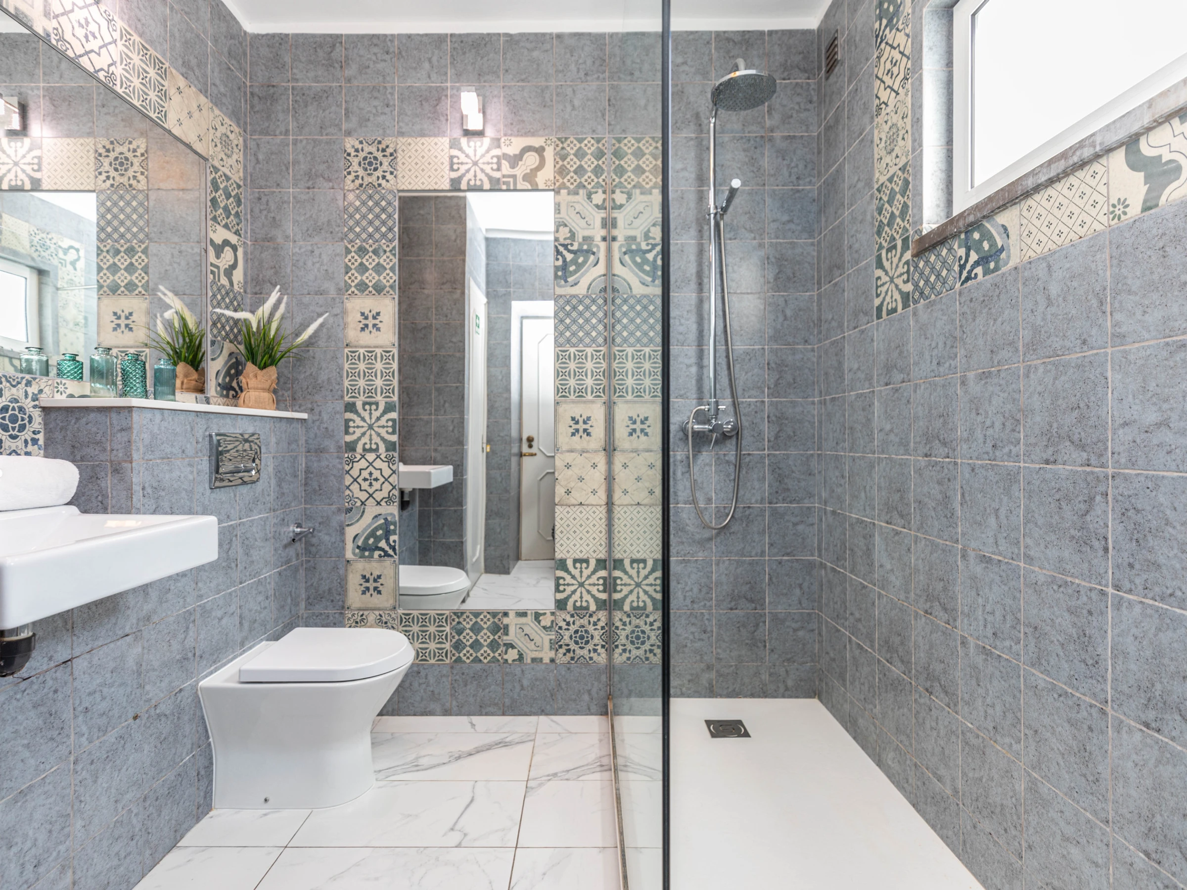 1) Salles de bains - La salle de douche principale est située à l'intérieur du logement principal. Il y a 2 autres salles de douche situées dans des pièces couvertes, avec un accès à l'extérieur de l'appartement, via les terrasses.