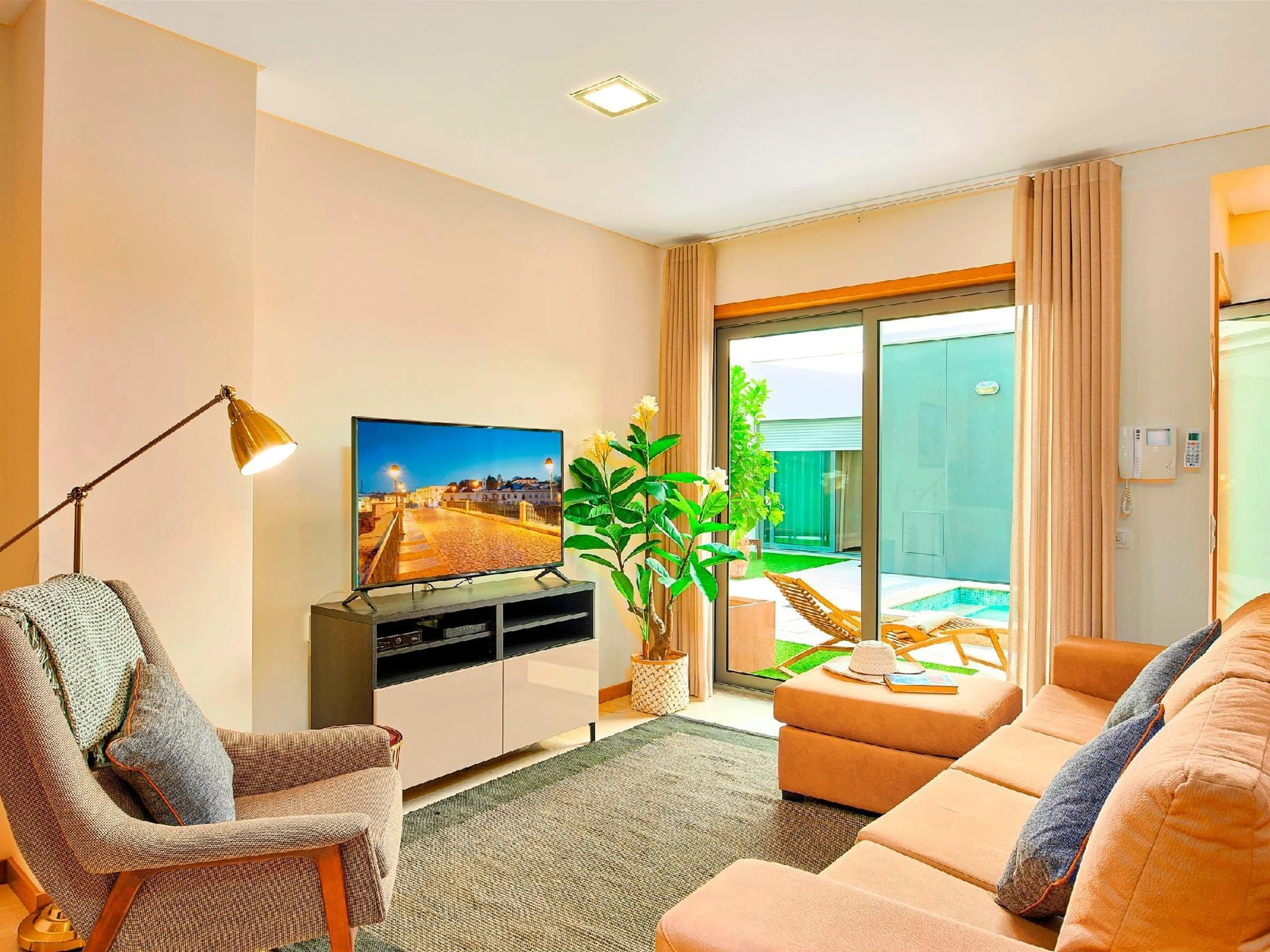 2 Chambres (Avec Salle de Bain Attenante) - Hébergement contemporain, bien aménagé et spacieux, à distance de marche de tous les services et attractions de Tavira, réputée comme la ville côtière la plus charmante de l'Algarve. Des caractéristiques impressionnantes comprennent des sols en marbre poli et en parquet, une cuisine entièrement équipée, des installations avec salle de bain attenante et une terrasse privée. À l'extérieur, une jolie cour ornée de bougainvilliers attrayants et d'agrumes parfumés entoure une piscine de nage rafraîchissante, idéale pour les chaudes journées d'été.