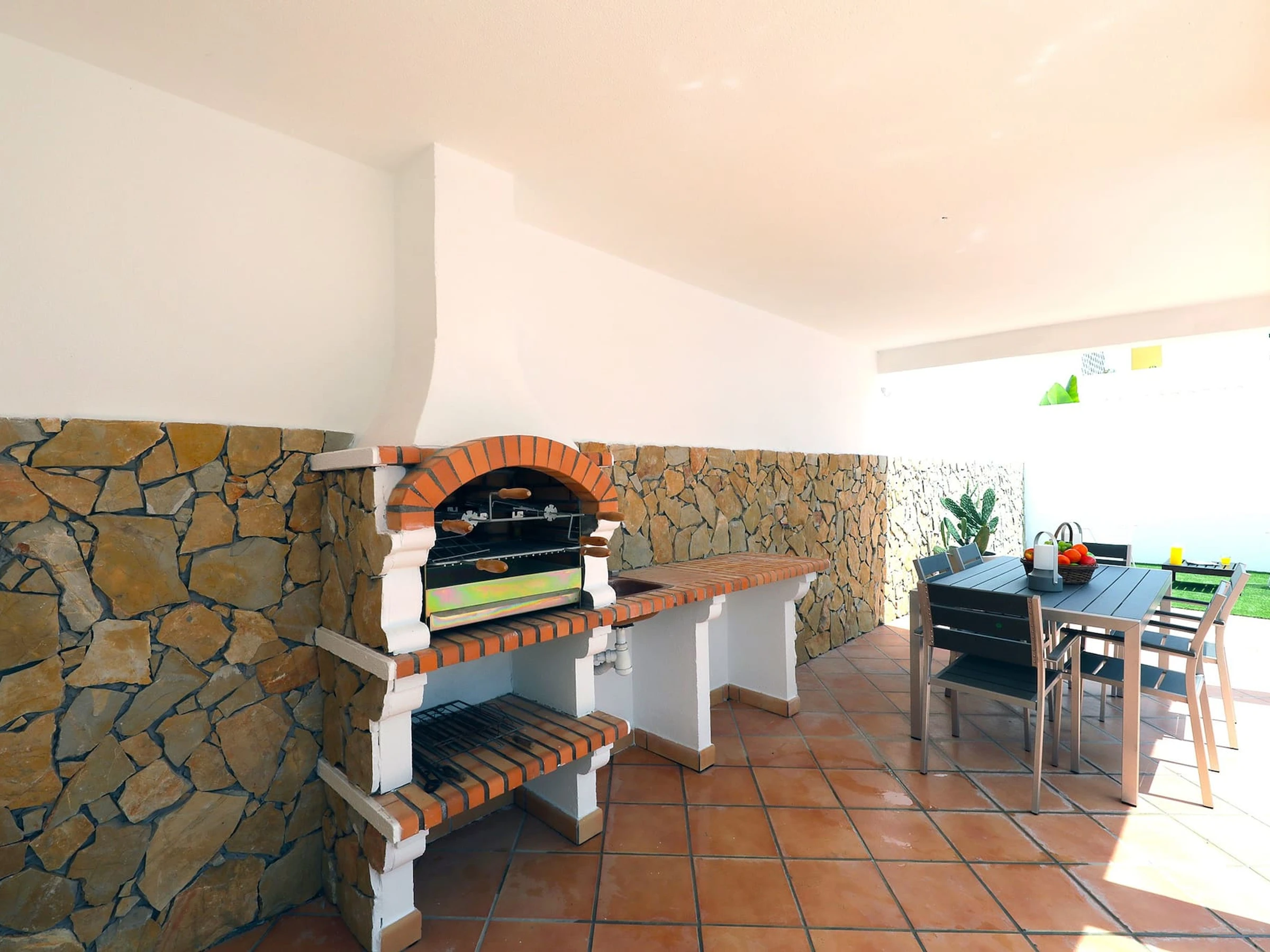 À l'extérieur, Casa Cava offre des installations fantastiques pour votre plaisir. Prenez un rafraîchissement dans la piscine scintillante de 8m x 4m, entourée d'une terrasse élégante et d'un jardin qui offre un environnement sécurisé pour les enfants. La zone de repas ombragée avec une table et des chaises est parfaite pour savourer des repas sous le soleil chaud. Une zone enherbée vous invite à vous détendre, tandis que des chaises confortables offrent un endroit idyllique pour lire et se détendre. Et lorsque les soirées deviennent douces, l'espace barbecue traditionnel est prêt à servir de délicieux mets grillés.