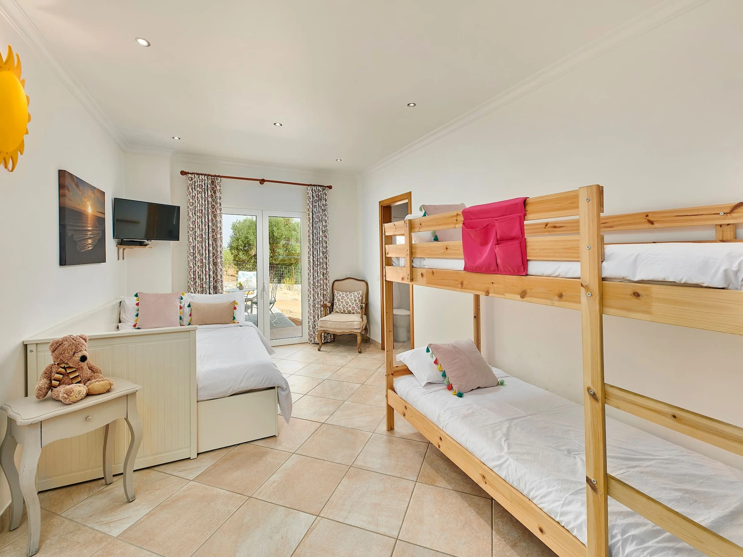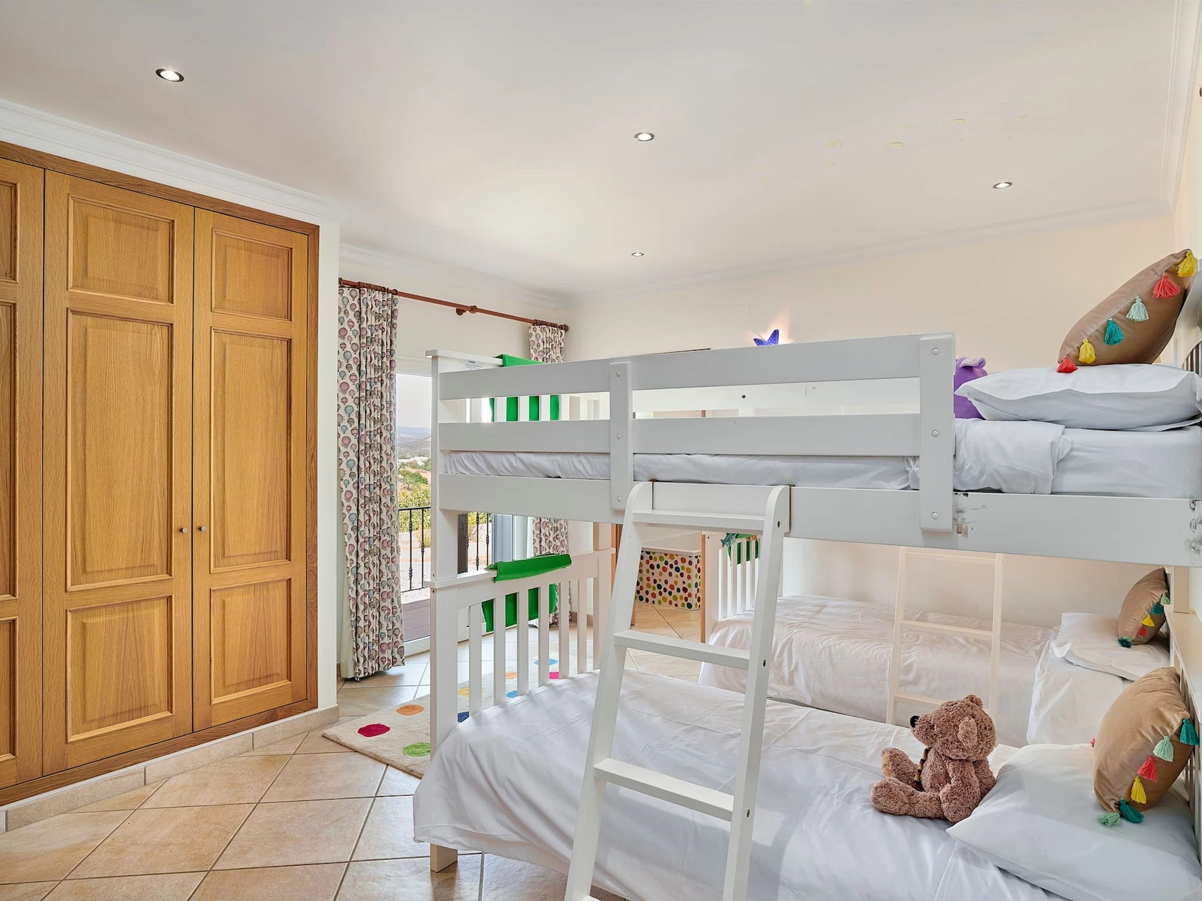 Prenez le couloir depuis le salon vers le Secteur Est où vous êtes accueilli par 4 chambres bien pensées. 2 purement pour les couples avec des lits king size et des salles de douche attenantes fabuleuses, et 2 chambres merveilleuses spécifiquement conçues pour les enfants, avec des lits superposés et des salles de bains multicolores et originales.