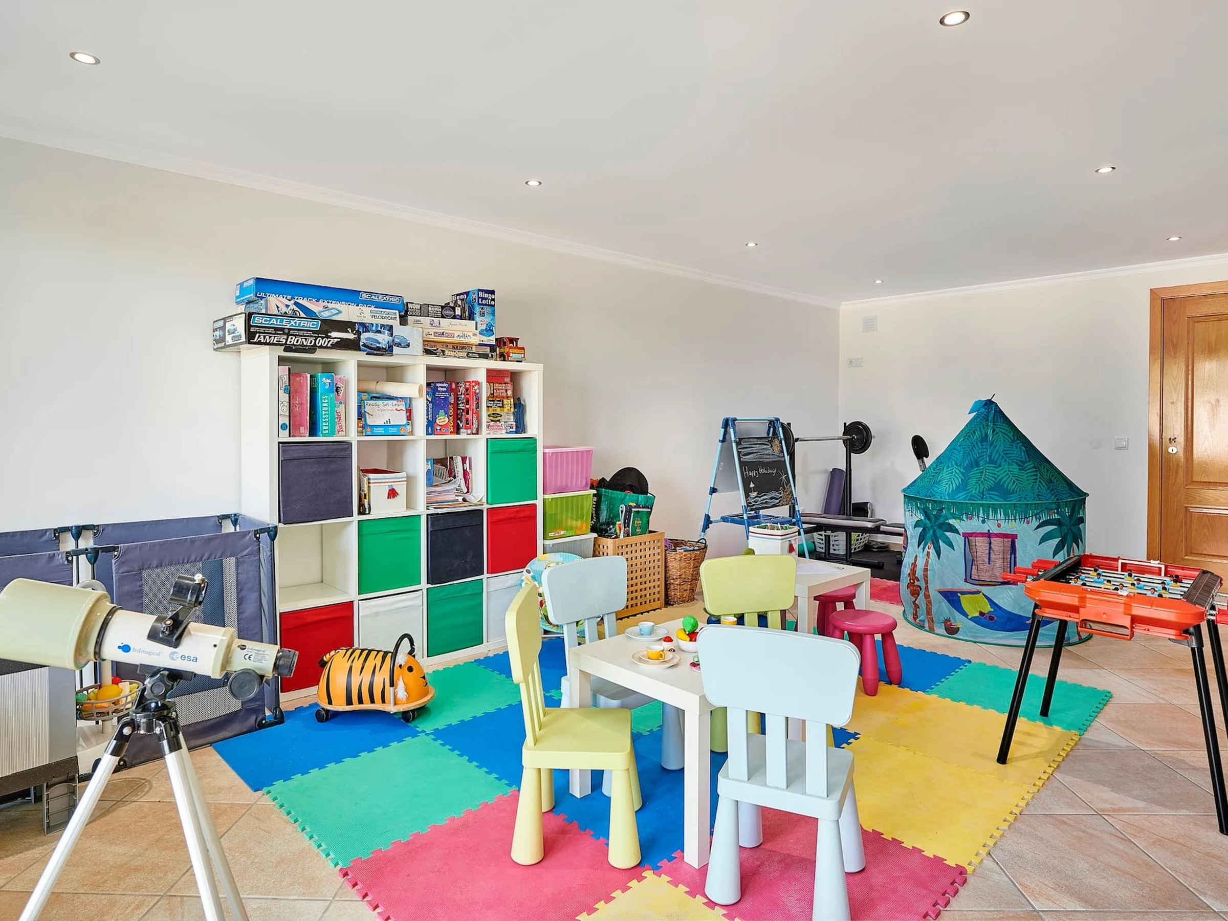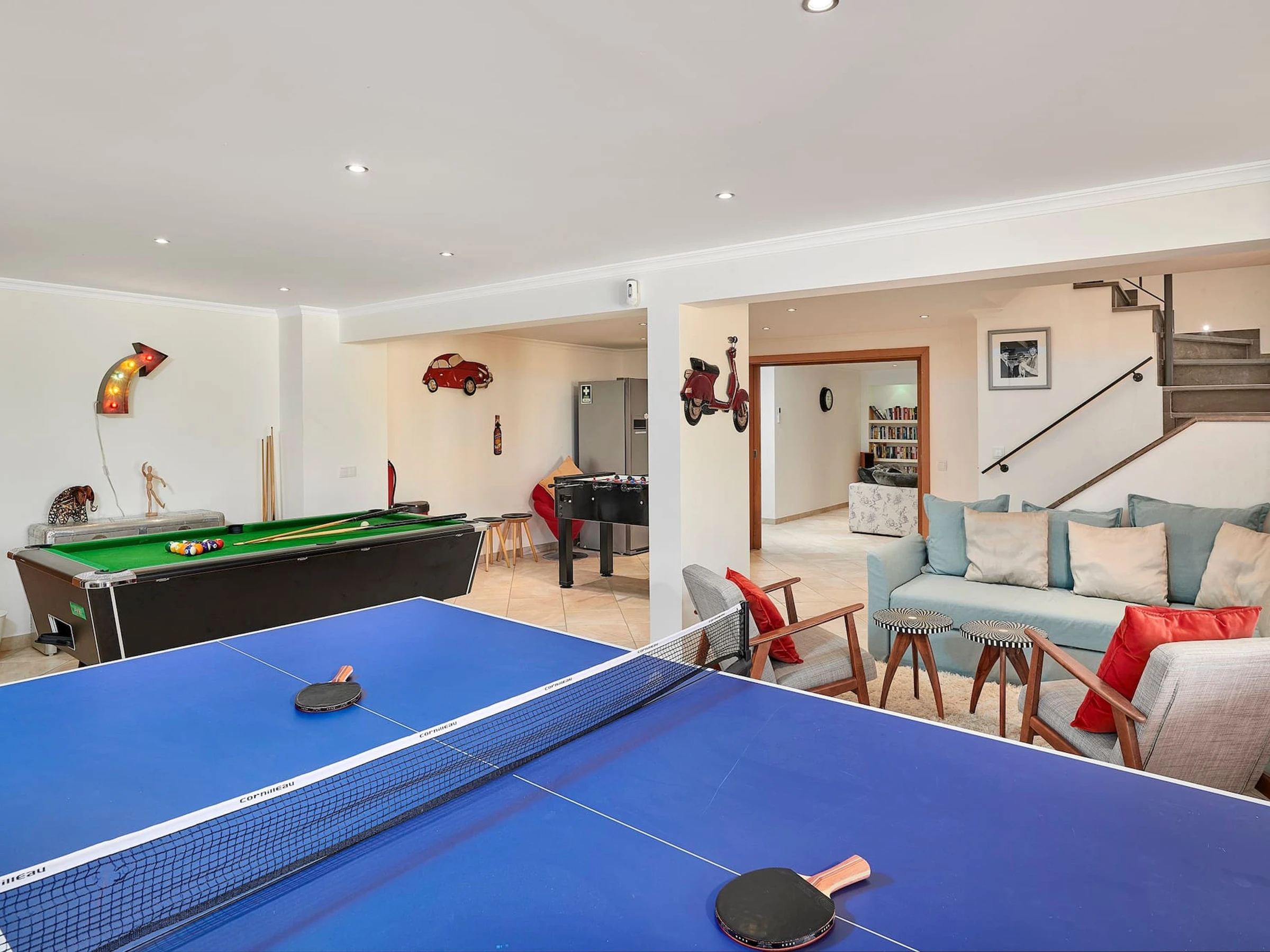 En descendant du rez-de-chaussée, une multitude de surprises vous attendent ! 2 chambres familiales supplémentaires sont proposées, comprenant 1 lit king size plus un lit simple et un lit double plus un lit simple, chacune avec ses propres installations privatives. En accompagnement, vous ne manquerez pas d'être impressionné par l'incroyable gamme d'installations supplémentaires. Ici, les enfants se régaleront dans la salle de cinéma avec un écran géant de 80 pouces, un son surround, une Playstation 4 et un lecteur DVD. Les plus jeunes enfants se délecteront ensuite dans l'aire de jeux adjacente avec une profusion de jouets, de jeux et de choses pour les divertir vraiment !