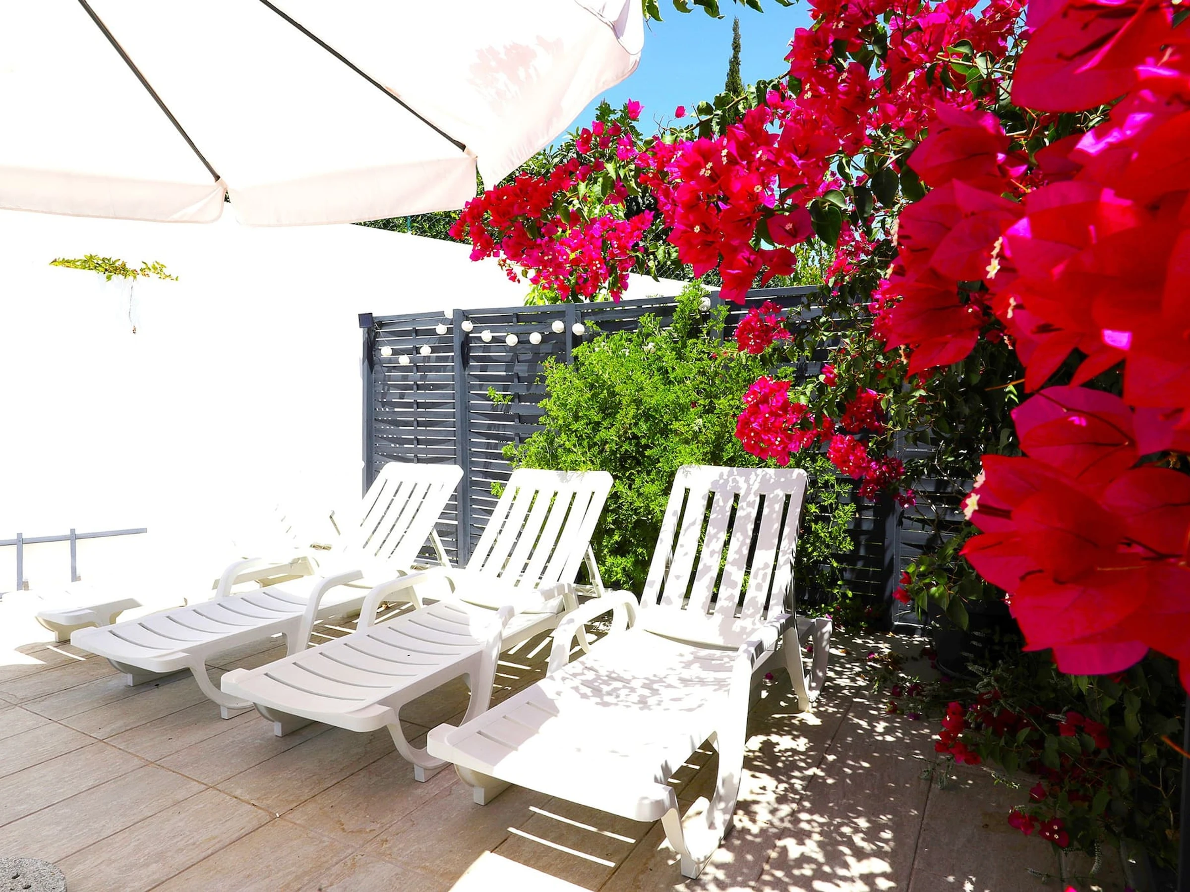 Sortez pour découvrir une superbe sélection d'équipements extérieurs. La piscine bleue attrayante, mesurant 10m x 5,5m, invite à la baignade et aux jeux de détente. Des transats sont dispersés sur les terrasses environnantes pour les amateurs de soleil, et à proximité, l'espace jardin, bordé de buissons verts luxuriants et de bougainvilliers vibrants, crée un espace sécurisé et délicieux pour les enfants. Les adultes et les enfants apprécieront tout ce que cet espace extérieur a à offrir. La conception de la villa offre suffisamment d'ombre, ce qui la rend idéale pour des repas en plein air. Choisissez entre une petite table de petit-déjeuner où vous pouvez dîner près de la piscine ou la grande table de salle à manger, adjacente au barbecue traditionnel au charbon de bois, parfaite pour les soirées d'été paisibles. Piscine chauffée disponible moyennant des frais supplémentaires par réservation – veuillez nous contacter pour plus de détails.