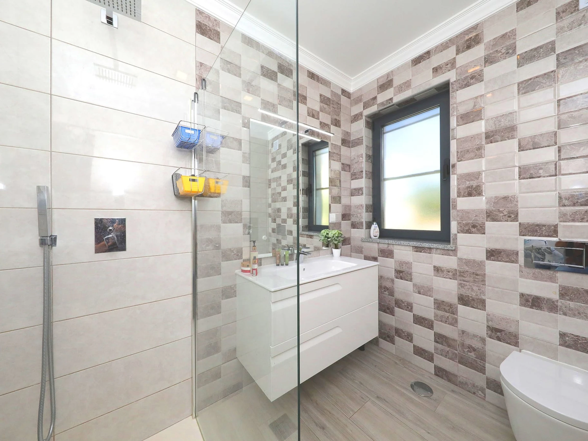 Montez les escaliers pour découvrir trois chambres magnifiquement aménagées, chacune disposant de ses propres installations de douche. Deux de ces chambres, situées à l'avant de la maison, offrent des lits king-size et des balcons privés avec des vues pittoresques sur la ville et la mer au-delà. Commencez votre journée en vous prélassant dans le soleil du matin sur ces balcons, meublés de charmantes tables et chaises de bistrot. À l'arrière de la maison, vous trouverez une chambre avec deux lits, également dotée de sa propre salle de douche, offrant de la flexibilité pour vos besoins d'hébergement.