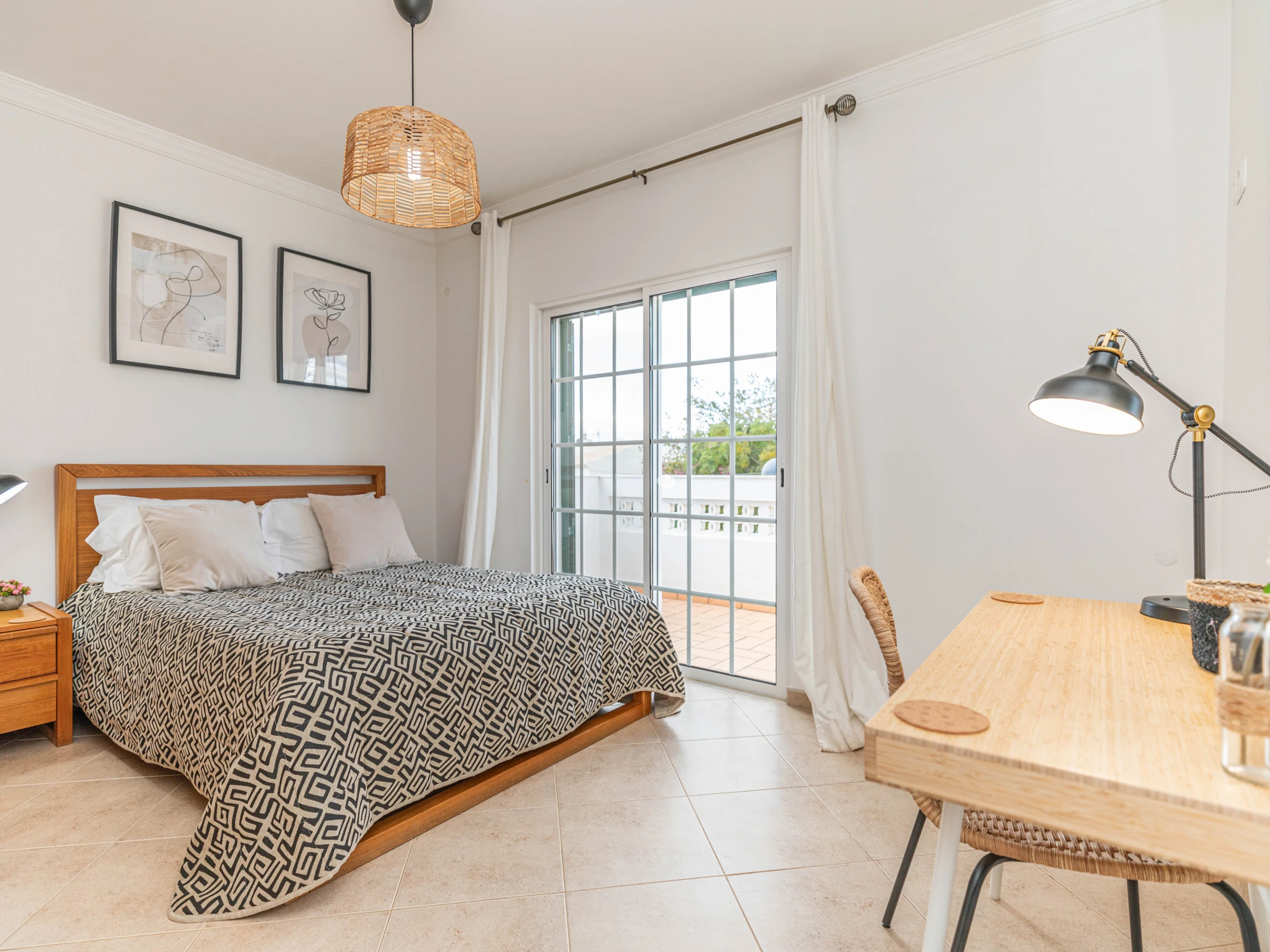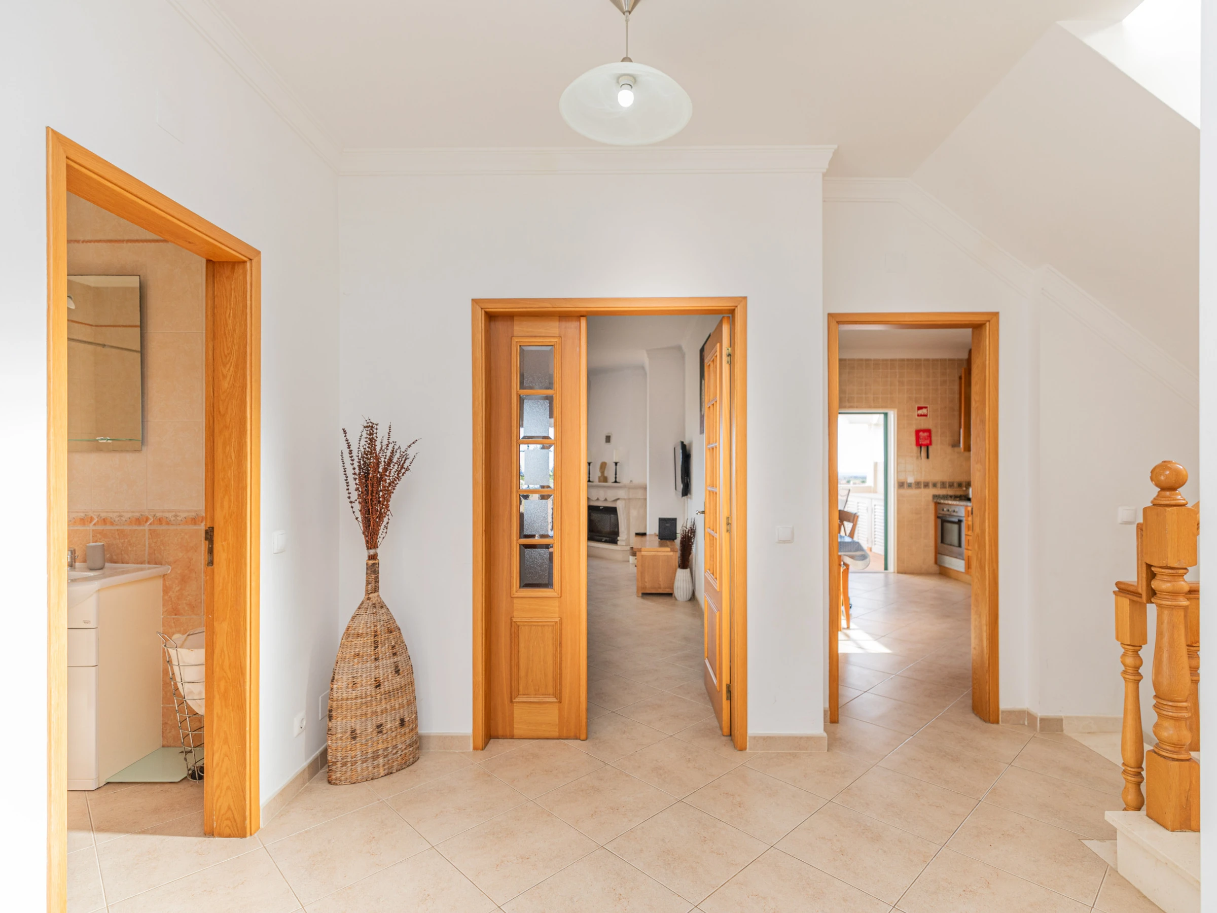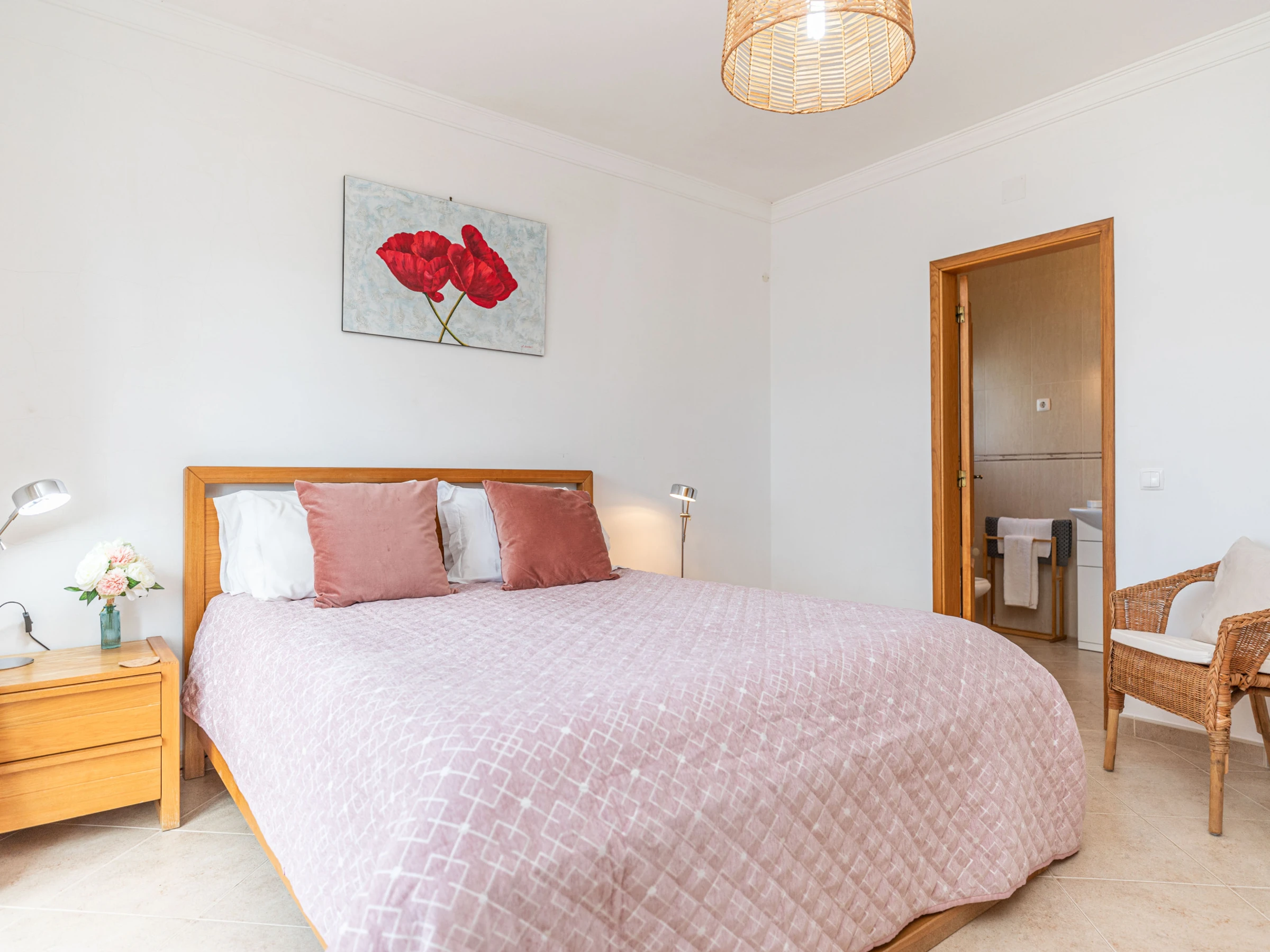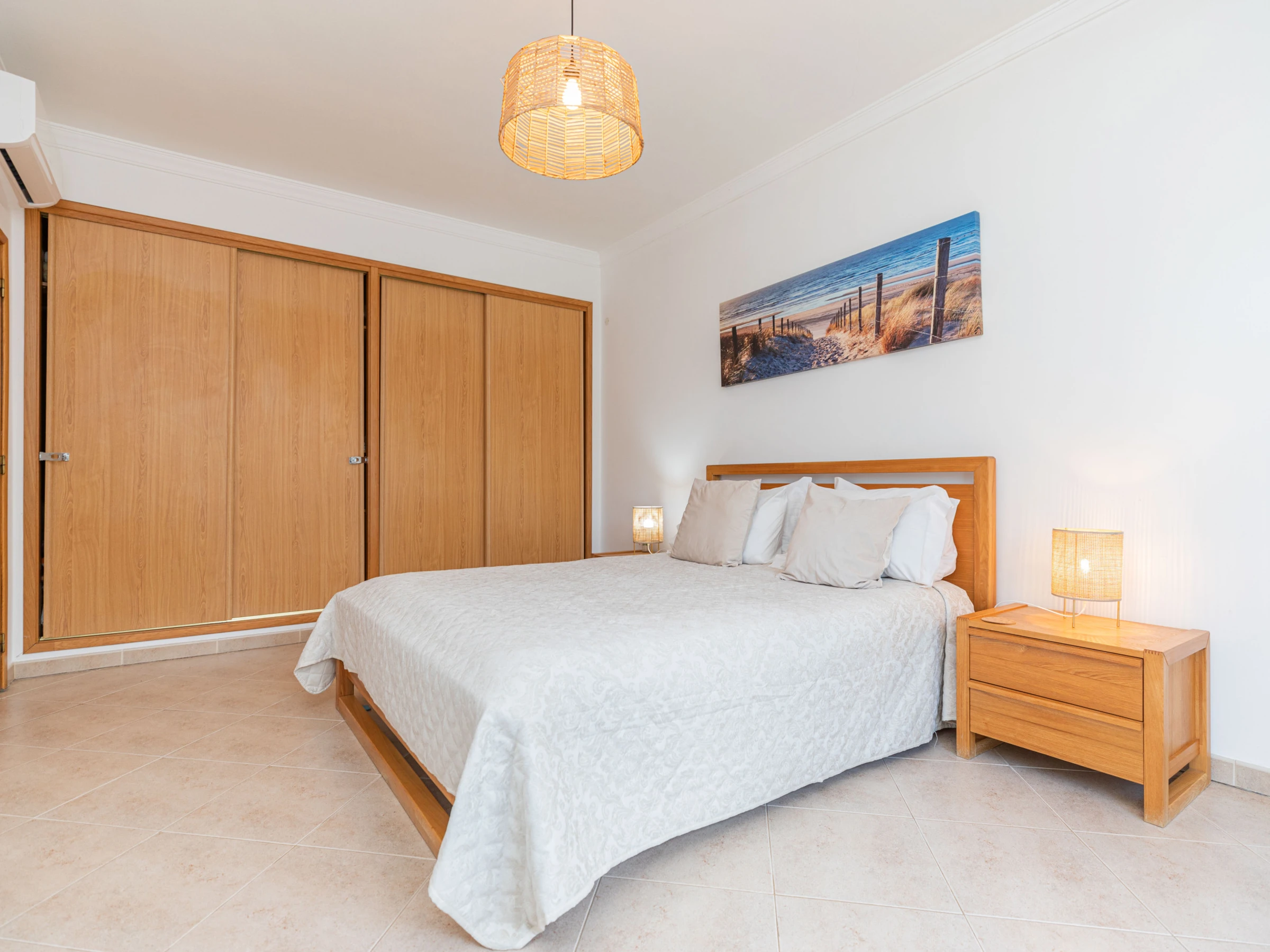 PREMIER ÉTAGE – Pour ceux qui préfèrent dormir au premier étage, la villa offre le choix d'une chambre principale avec une salle de douche attenante, ainsi que deux chambres doubles supplémentaires, toutes équipées de placards intégrés. Les chambres doubles partagent une salle de bain, garantissant commodité et confort.