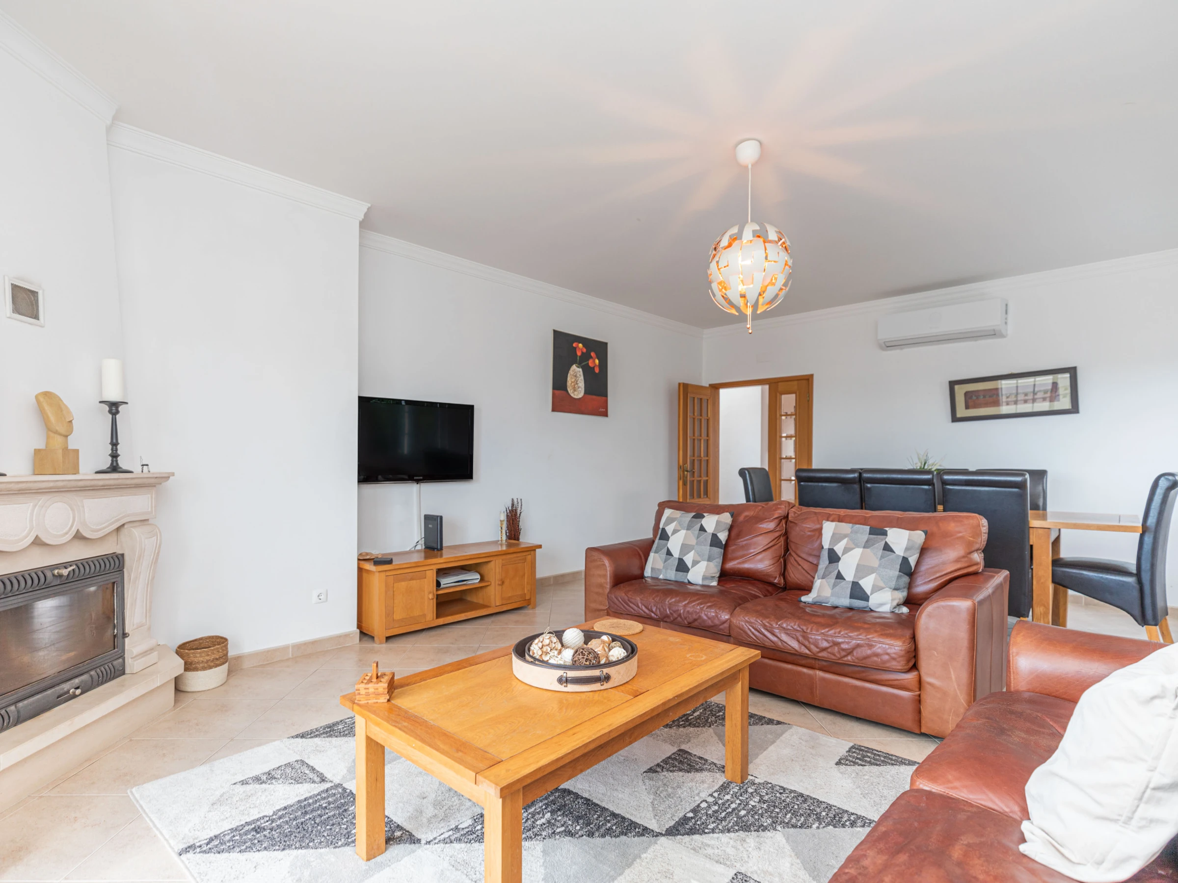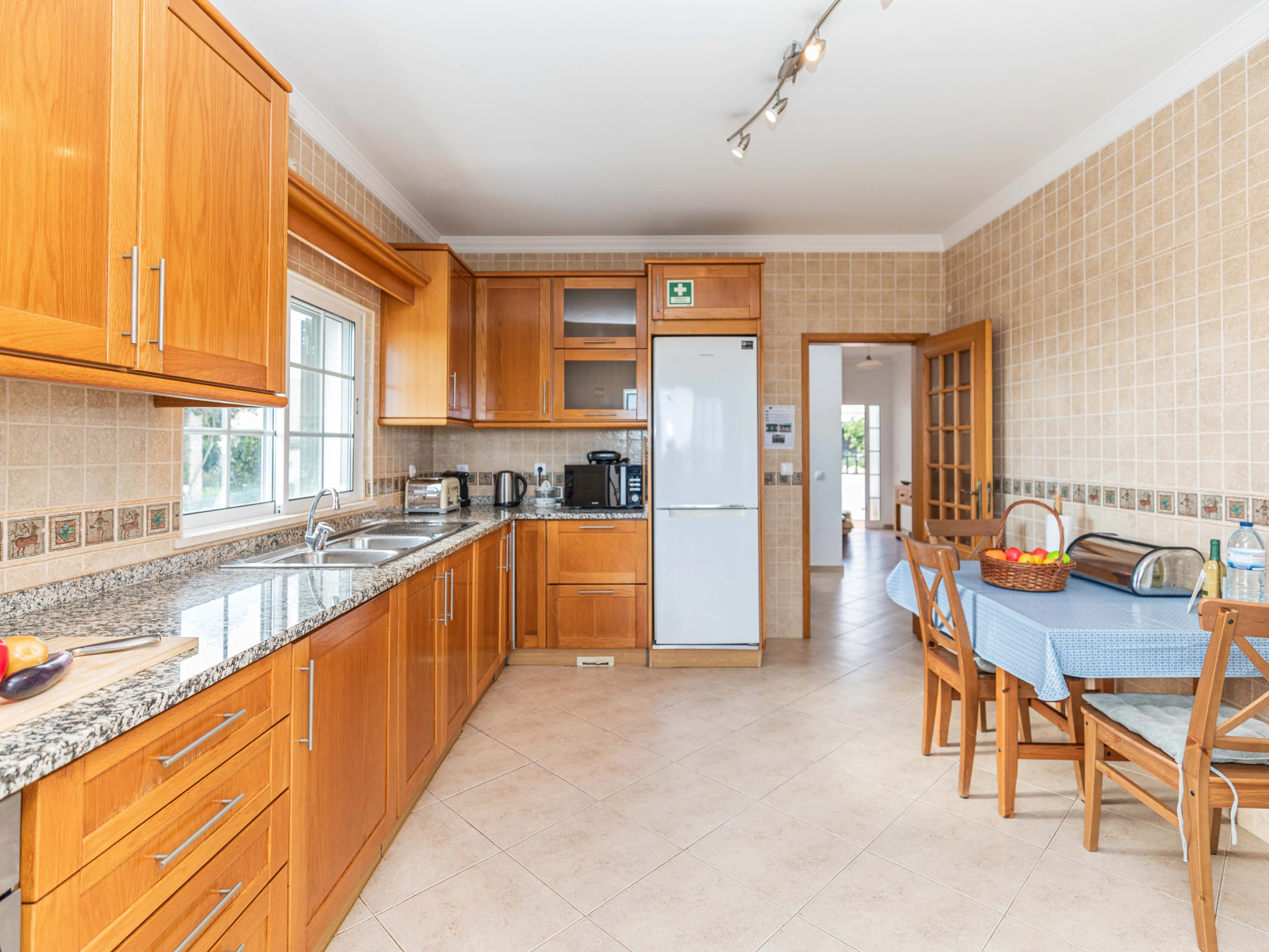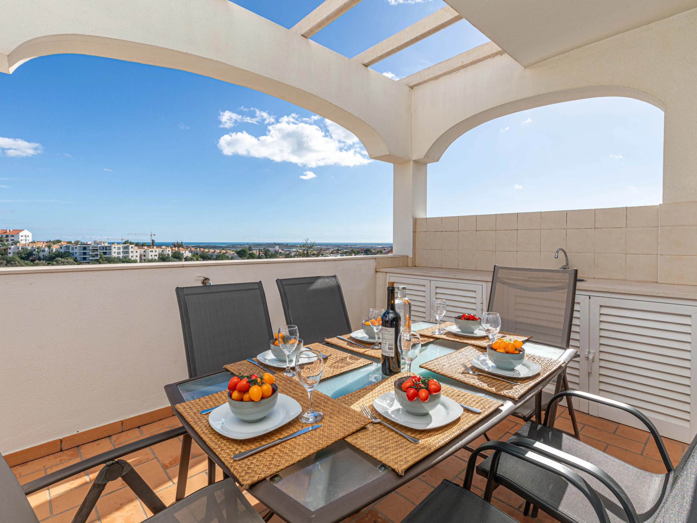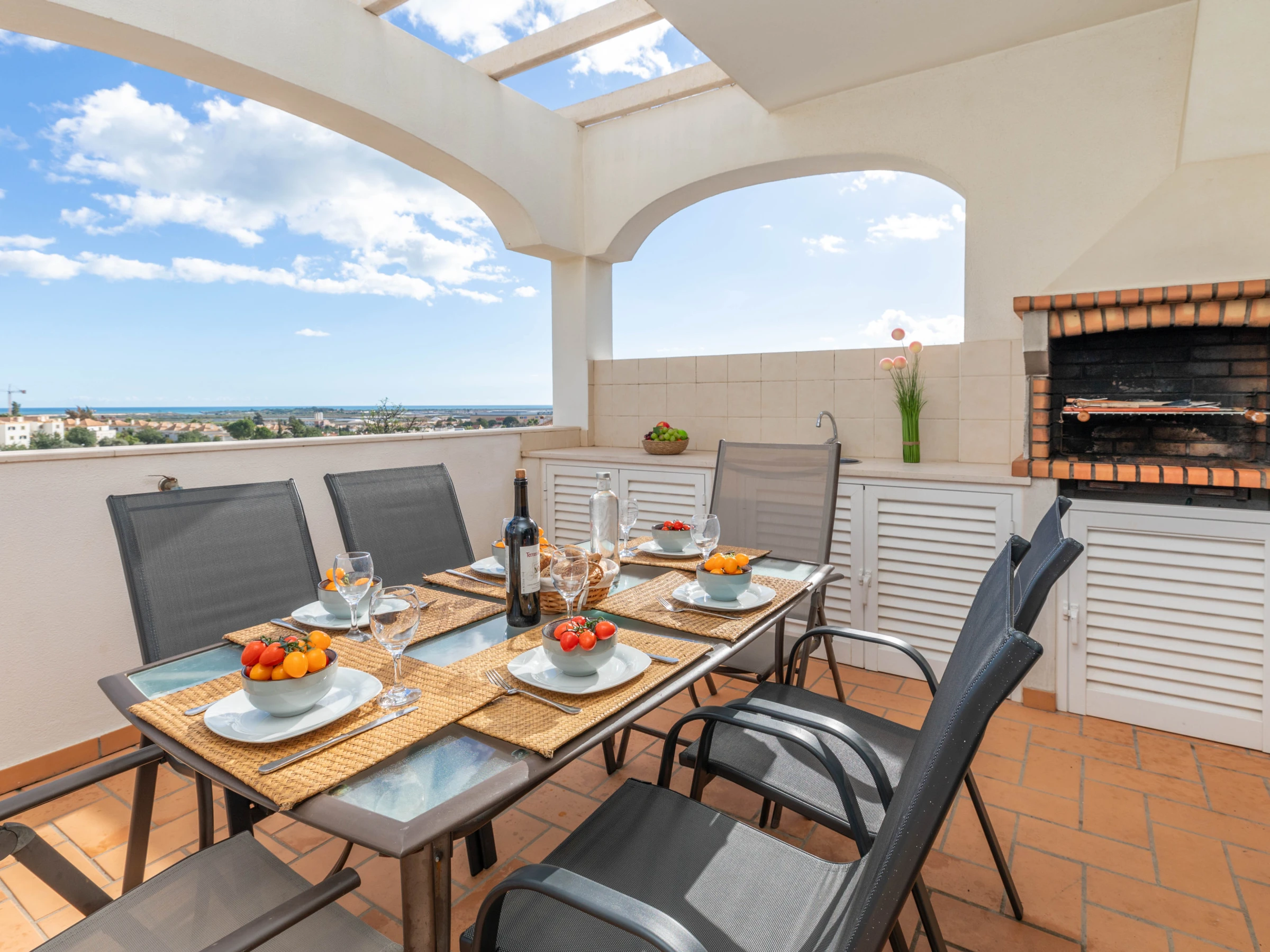 REZ-DE-CHAUSSÉE – En entrant par l'entrée privée et sécurisée, un large couloir vous accueille chaleureusement, avec des pièces s'ouvrant de part et d'autre. Idéalement placée pour ceux qui préfèrent les hébergements de plain-pied, une chambre avec deux lits se trouve à gauche, tandis qu'une chambre double vous attend à droite. En avançant, vous découvrirez le salon et la salle à manger lumineux et aérés, offrant un havre de paix et des vues captivantes. Ici, vous pouvez vous détendre ou profiter d'une expérience gastronomique sophistiquée autour de la grande table en bois accompagnée de chaises assorties. Adjacent au salon et à la salle à manger, la cuisine entièrement équipée donne harmonieusement sur une terrasse de restauration extérieure en hauteur, ombragée et judicieusement positionnée à côté d'un barbecue traditionnel et d'un balcon de préparation culinaire. Cet espace est parfait pour des déjeuners décontractés et pour embrasser les vues merveilleuses s'étendant sur les toits de Tavira, s'étendant majestueusement vers la mer.