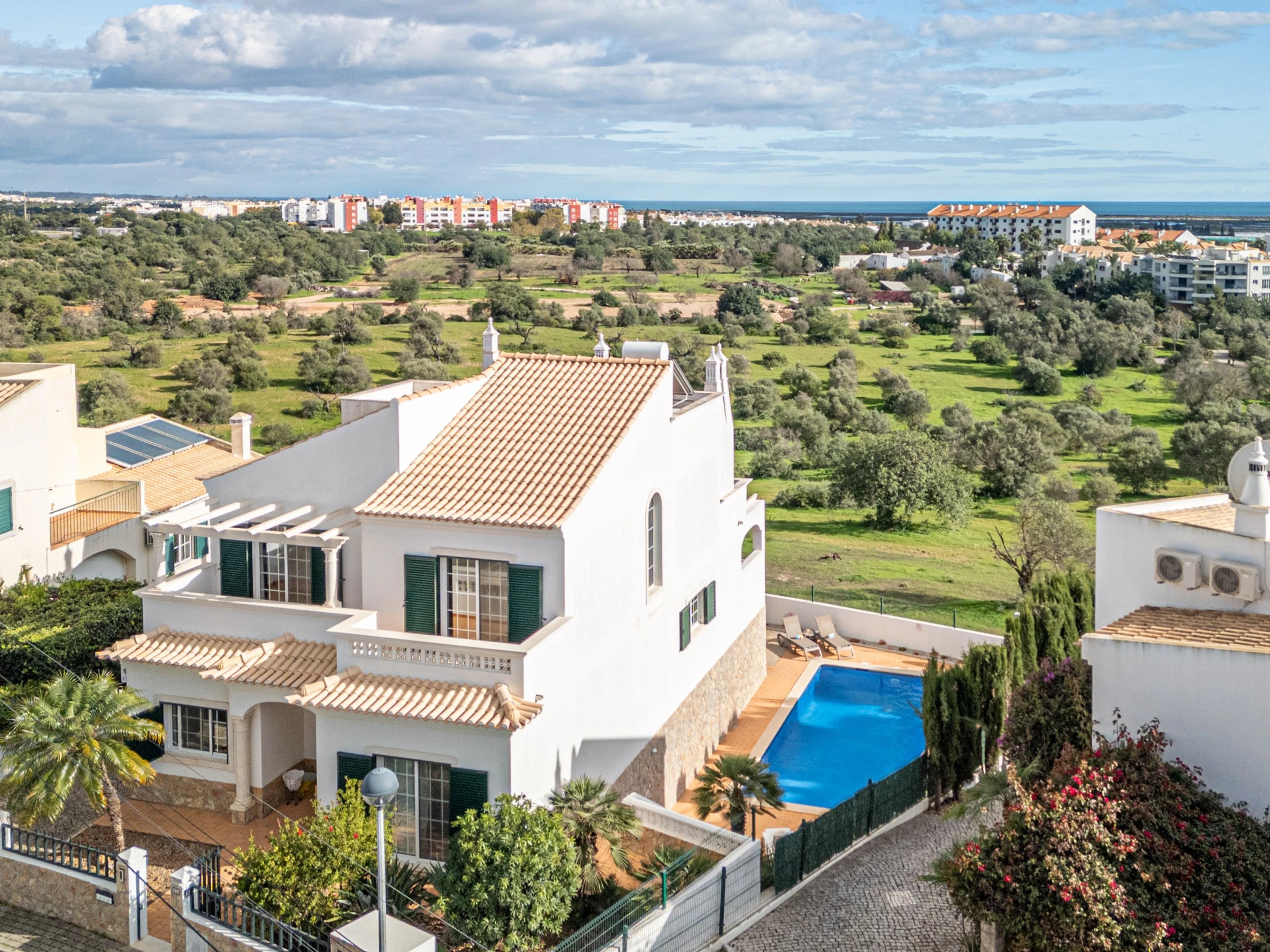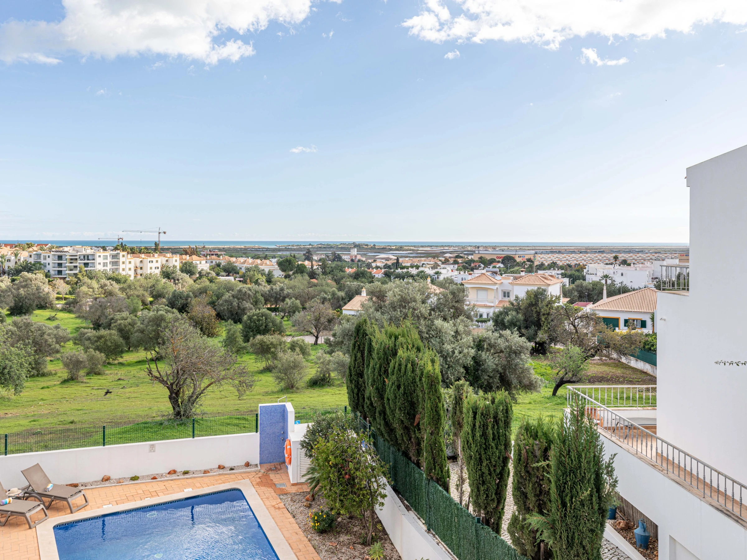 Une villa de vacances familiale spacieuse située dans un quartier résidentiel paisible en périphérie de la ville de Tavira. Perchée sur une colline avec une vue panoramique impressionnante, l'intérieur de la villa est simplement et élégamment meublé, avec des pièces spacieuses complétées par des installations extérieures agréables, comprenant un espace repas en plein air, une piscine bordée de haies et des transats. À 20 minutes de marche, vous pouvez atteindre des restaurants, des boutiques pittoresques et le bateau vers l'Île de la Plage de Tavira, réputée pour ses sables dorés et ses eaux vibrantes.